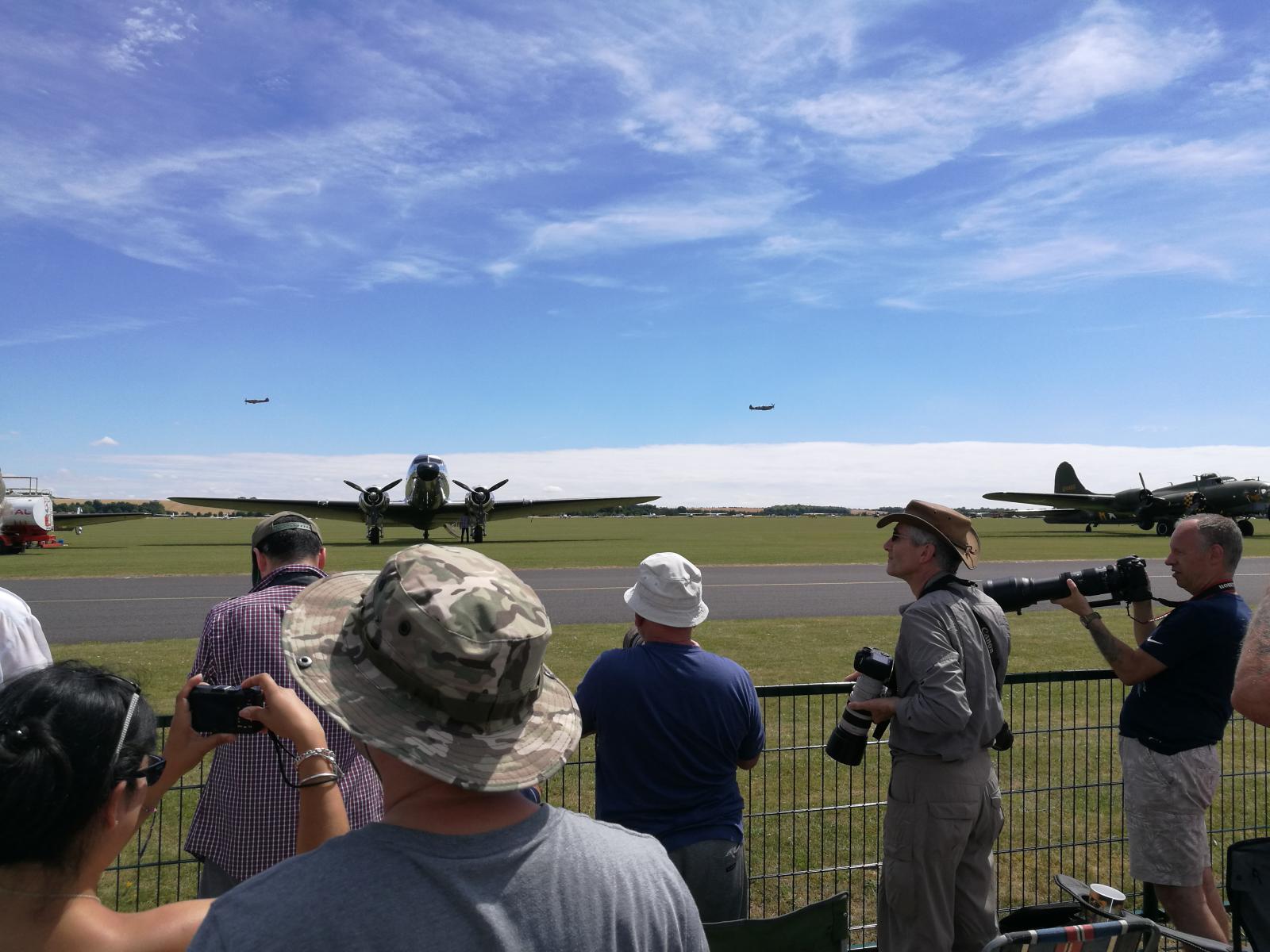Vil du oppleve ekte flynostalgi, så ta en tur til Duxford Airshow i næheten av Cambridge. Ikke mindre enn 9 Spitfires på vingene samtidig, sammen med bl.a. Mustanger, Messerschmidt, Thunderbolt og B17 Flygende Festning. Masser av godlyd og deilig eksos. En Mustang gikk i åkeren, men det gikk bra med flygeren.