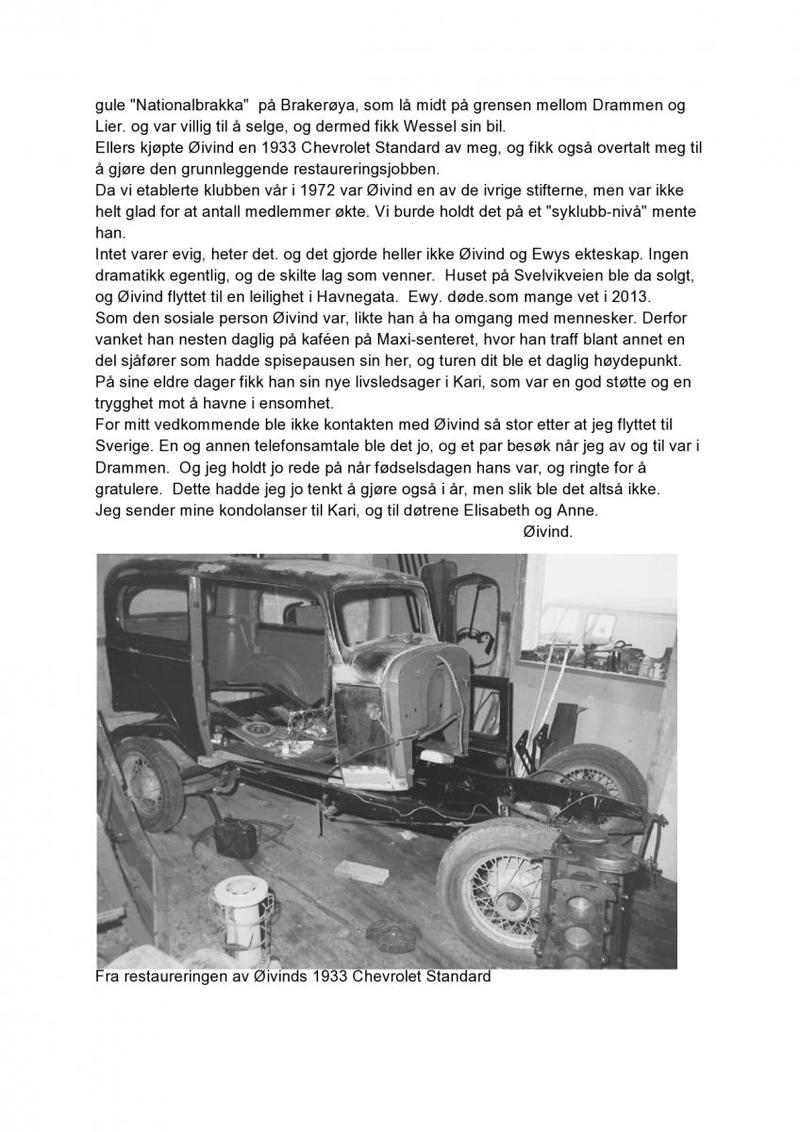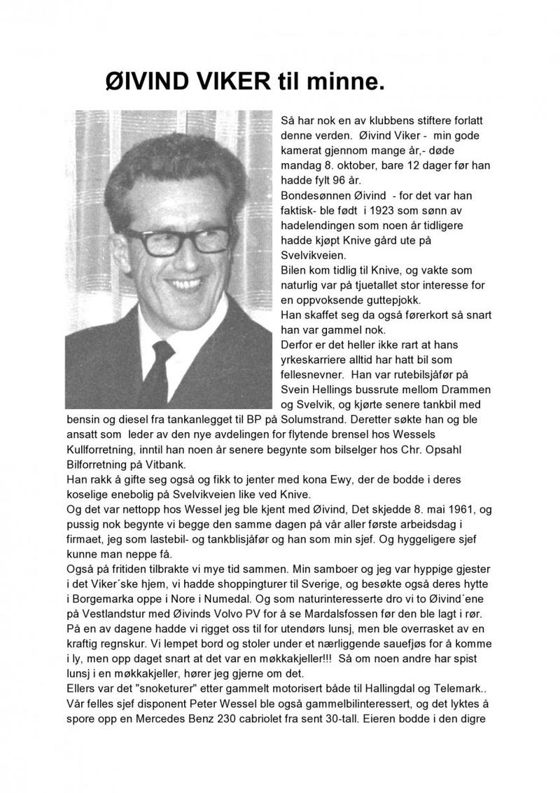 En av klubbens stiftere Øivind Viker har gått bort. Øivind var en humørspreder av de sjeldne, totalt blottet for selvhøytidlighet. Han manglet to uker på å bli 96 år gammel. Her avbildet ved sin 1933 Chevrolet som ble restaurert på "saga" på Fretheim.