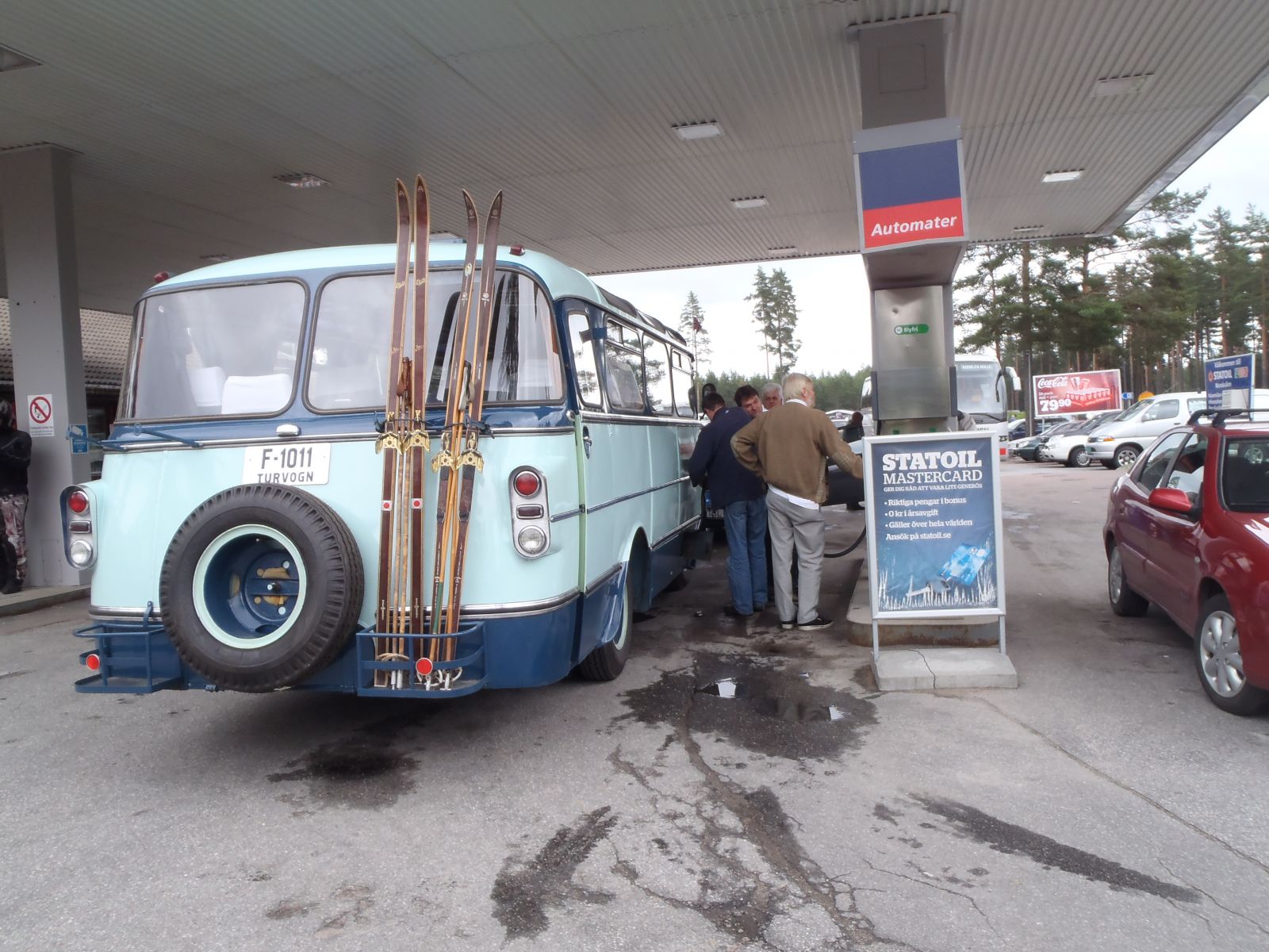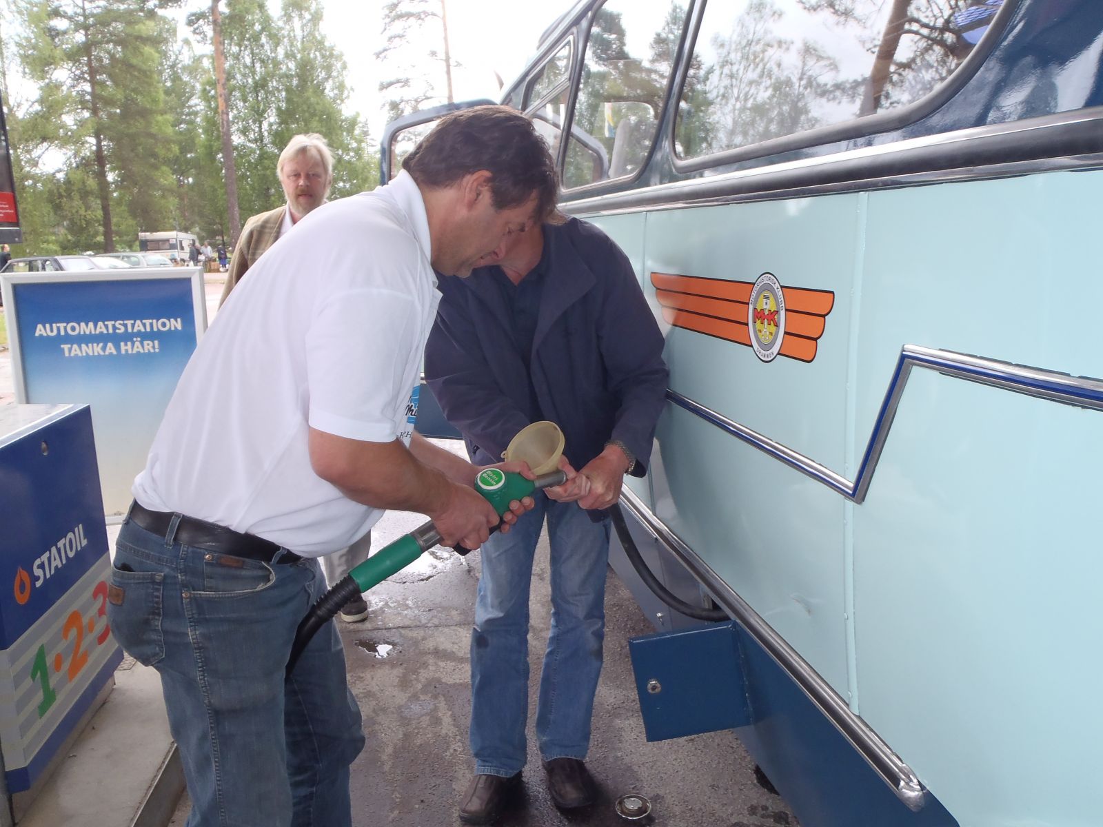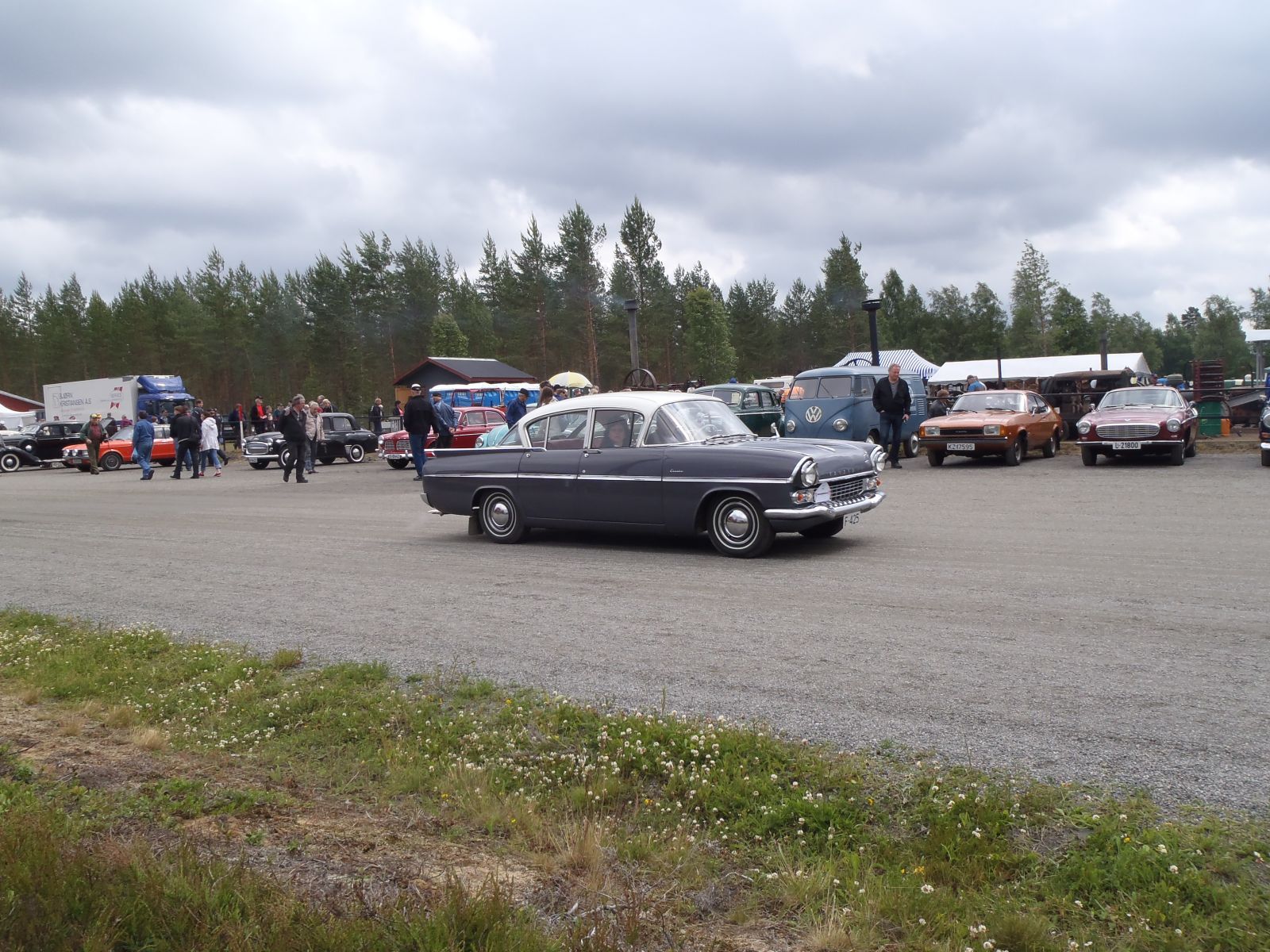 Grusomt mange som valgte å bli med til Magnor var det ikke..... Ingen andre kjøretøyer møtte opp på møteplassen, så det ble med oss fem personene i bussen. Hyggelig tur bortover i overskyet, men tørt vær. Vi passerte Magnor og tok en tur over til søta bror for innkjøp av nikotinholdige varer, bensin mm. Vi fylte 44 liter bensin, noe som betyr et forbruk på 2,44l/mil. Overraskende bra. Geir Enersen fra Lier Traktor har montert "Magnetizer" på bussen. Tross inngrodd skepsis begynner vi å lure på om produktet virkelig har en effekt. Sist vi målte brukte vi en liter mer!!! På travbanen på Magnor var det registrert innkjørt 879 kjøretøyer. Ikke noe småtteri altså. Herfra starter Vognmannen - løp for busser og lastebiler og Blårøykløpet (heter noe slikt antar vi) for mopeder. Til allmen beskuelse var utstilt vanlige personbiler, lastebiler, busser, mopeder, mortorsykler, traktorer, veihøvler, veivalser, stasjonærmotorer, lokomobiler - ja alt som tenkes kan. Vi rusla og gikk, traff mange kjente, spiste pølser og glante på rare folk. Mest artige hendelse skjedde nok likevel på vei bortover. En fører i passerende personbil var tydeligvis så betatt av vår vakre buss at han kjørte i autovernet på Skøyen. Drøye 40 mil gjennomførte bussen uten så mye som en antydning til problemer. Lars fikk lettere psykiske problemer av å se så mange lastebiler av merkene Scania og Volvo, men hans mentale helse ble stabilisert da han på hjemturen fikk se en Ford A-Serie dobbeltkabin.