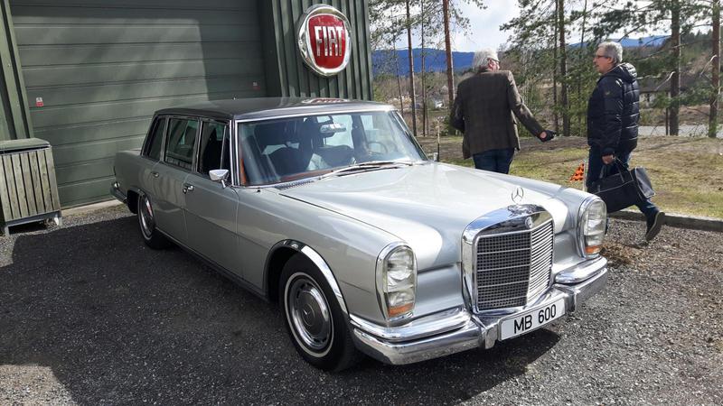 De aller fleste ser vel at doningen ikke er noen Fiat. Mangler relativt mye på det. På Burud har vi besøk av fine Fiat'er og fine Mercedes'er. Denne gang var det en Mercedes av det aller fineste slaget som kakkelovnsrør-eier Regstad har foreviget.