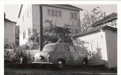 Hillman Minx MkVII og VIII ser vi ikke mye til. Flere grunner til at de ikke er ivaretatt. Var i sin tid en helt alminnelig bil ingen snudde seg etter. Da de begynte å bli interessante var det gjerne for sent. Rammeløse biler fra femtitallet hadde oftest som sin aller beste egenskap i det å ruste. Disse bildene vi har fått av Frank Tommy Haugen viser nettopp en slik Hillman. Nyvasket og pen med registreringsnummer F-877. Bilen er nok sikkert borte og huset med adresse Svelvikveien 47, som på bildet ser velstelt og ordentlig ut, det står nå ubebodd, forfallent og til nedfalls. Tidene forandrer seg.