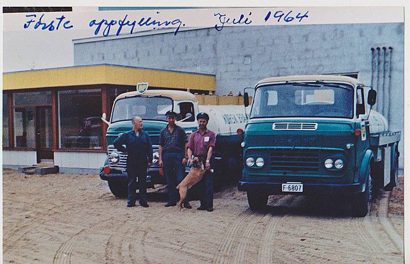 Begynner å bli langt mellom bensinstasjonene. Første februar stengte også stasjonen på Sysle etter drift i flere mannsaldere. På Arnt Berget sitt bilde øverst ser vi første fylling på det nye anlegget i 1964. Et par tankvogner måtte til da selvsagt. Begge av merke Commer. TS3 av siste utgave, som står til venstre på bildet hadde en totakts diesel der stemplene arbeidet mot hverandre. Og lagde et usannsynlig lurveleven der den kom. Den andre, HCVC, er vesentlig mer moderne og ble også solgt som Dodge. Sjåføren til høyre er Oddmund Bolstad, som altså leverte drivstoff i sin egen hjembygd. På neste bilde ser vi Trygve Johansen fra Drammen levere på Rundtom i 1968 med en annen Commer HCVC. Sto en slik bil inni skauen mellom Elverum og Trysil for ikke lenge siden. I fall du har bruk for ei tankvogn, så hør av deg.