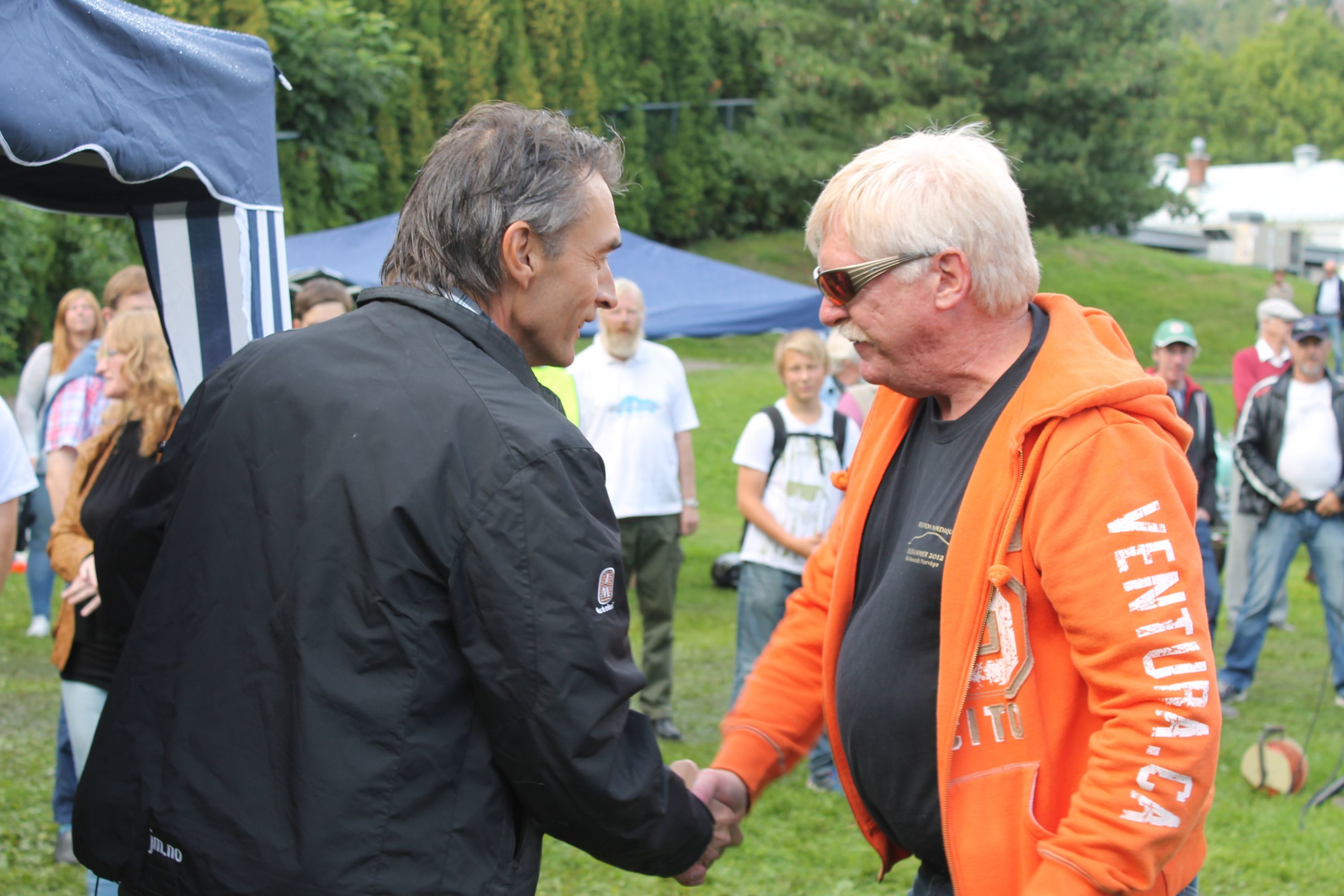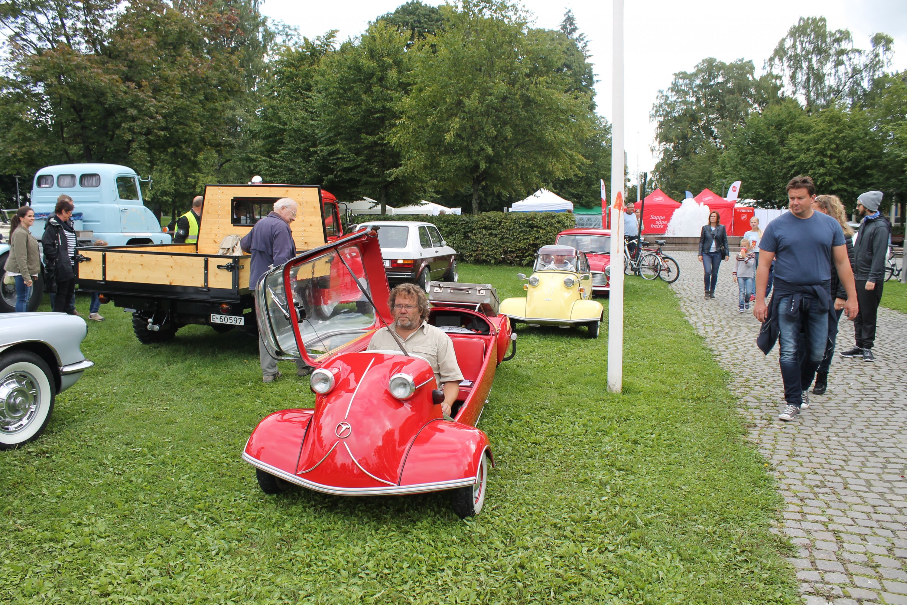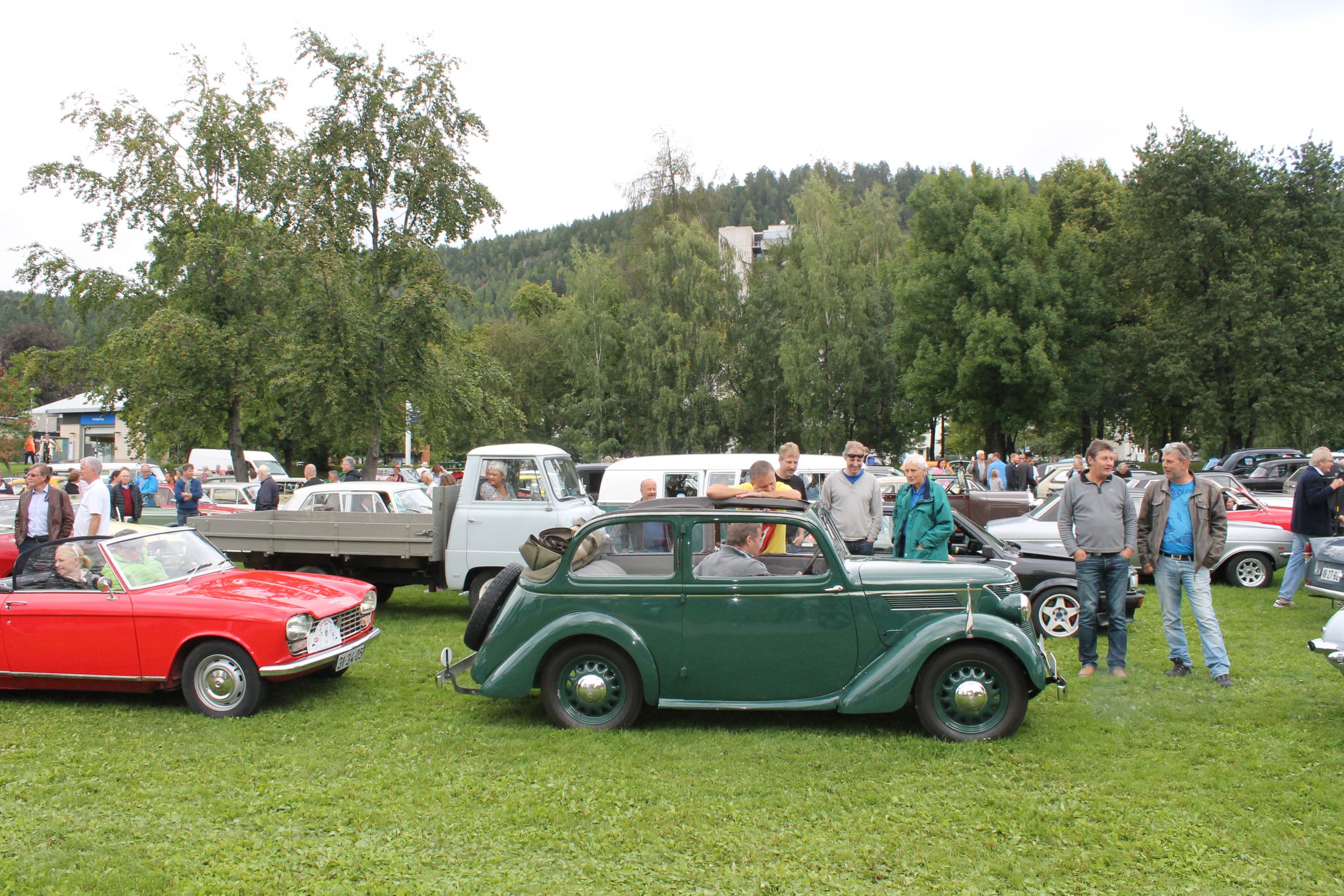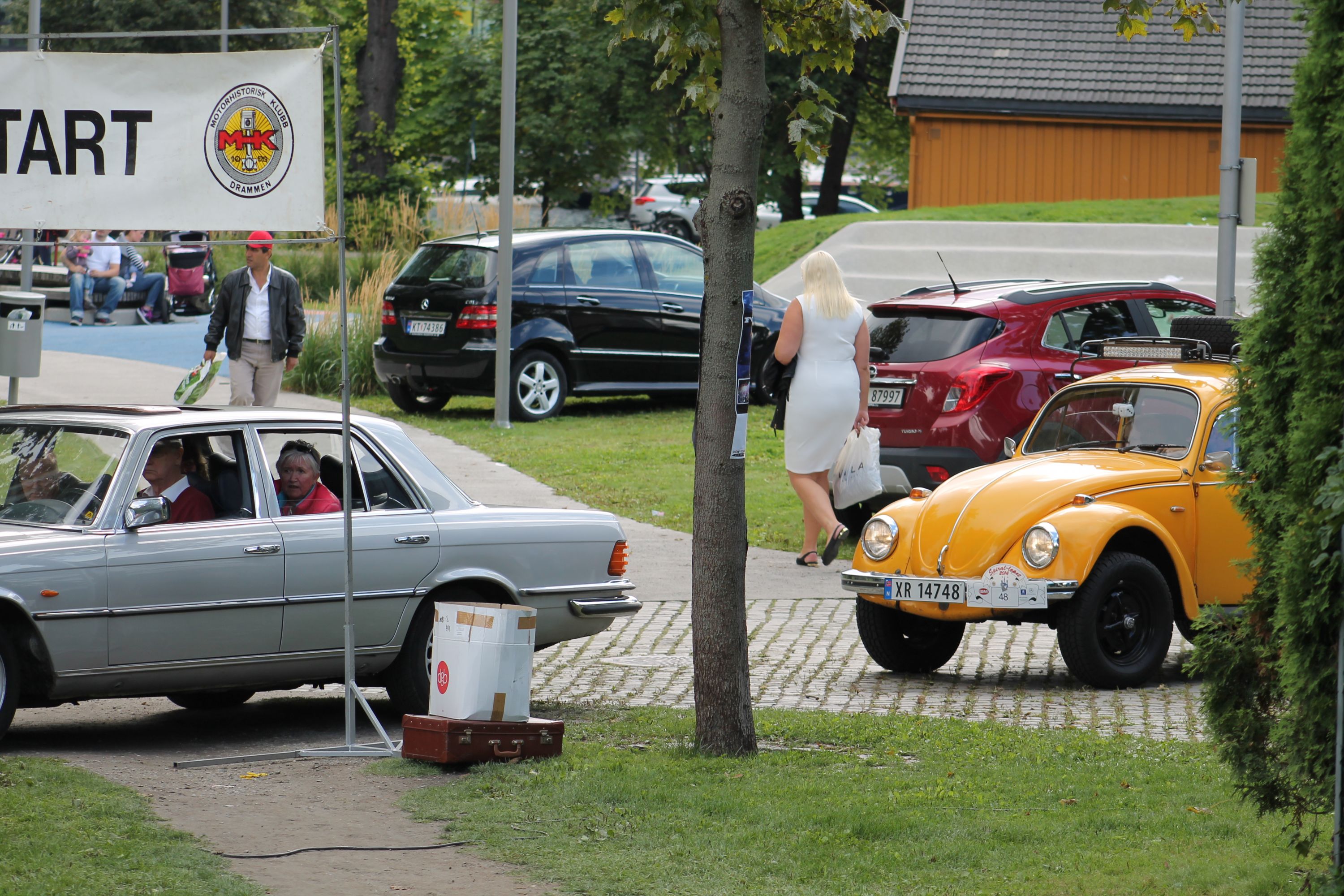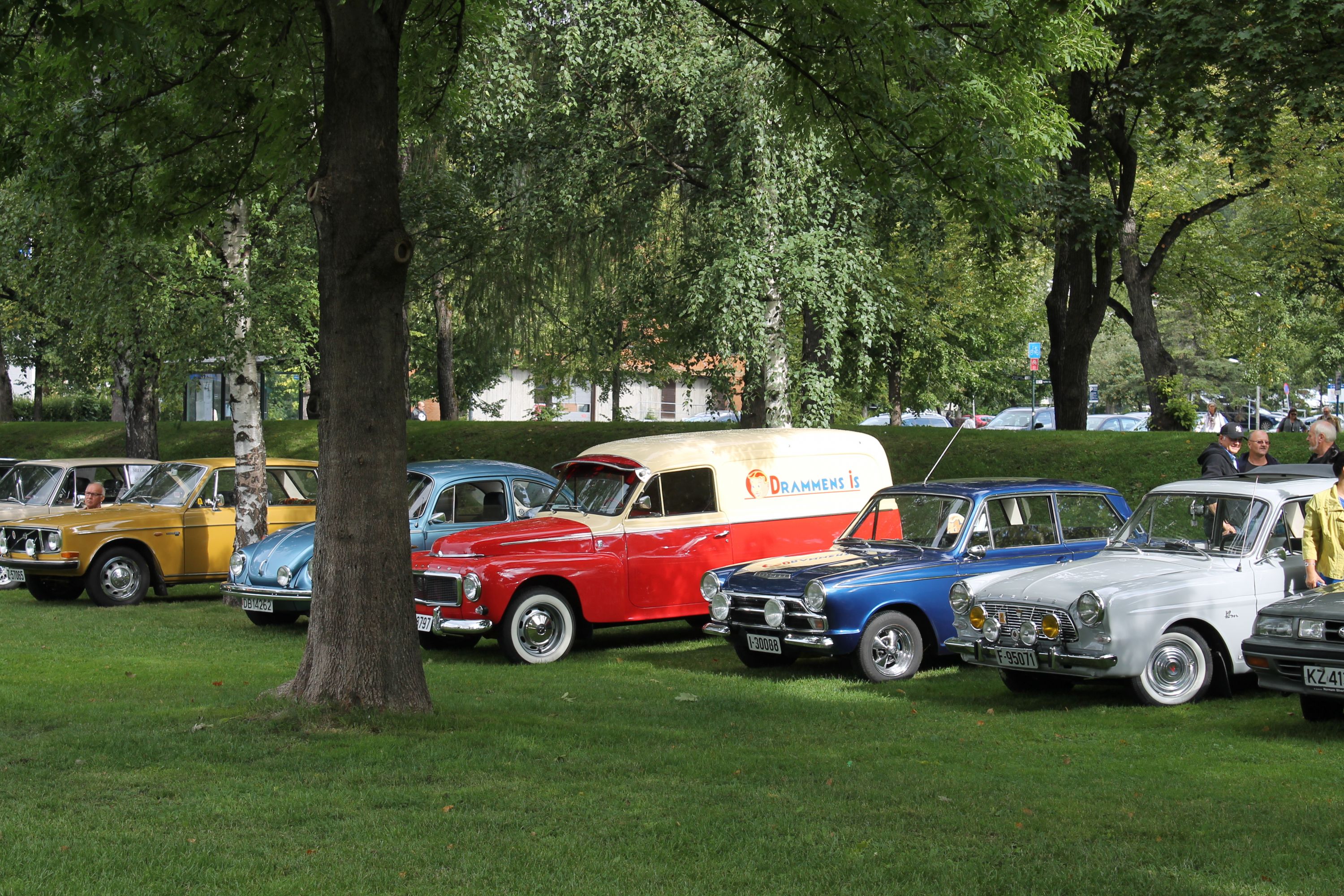 Elvefestivalen i Drammen er godt igang. Ei eneste svær fyllekule påstår Kvålseth'n. Ja så feil kan man ta. Her var det ikke fyll, men derimot 90 flotte kjøretøyer og det mangedobbelte med flotte mennesker. Værmeldingen truet med regn, men holdt ikke løftet. Noen ganger er løftebrudd helt ok. Parken var bortimot full da vi startet kl 11. Kvelden før hadde invitasjonen til løpet blitt lest 637 ganger. Tenk om alle hadde kommet....... Det er moro å treffe gamle kjente, men det er også moro å se at det kommer biler og folk vi før aldri har sett. I år var det mange av dem. Det synes også som om flere yngre deltar. Om det er et resultat av vårt målbevisste arbeid med rekruttering eller det er en tilfeldighet vites ikke. Ikke er det så nøye heller så lenge vi får nye tilhengere til hobbyen. Mangfoldet er som alltid spennende. Vi savnet motorsyklene, men spennet mellom Mässerschmidt og Thames Trader trekkvogn er imponerende og fornøyelig.