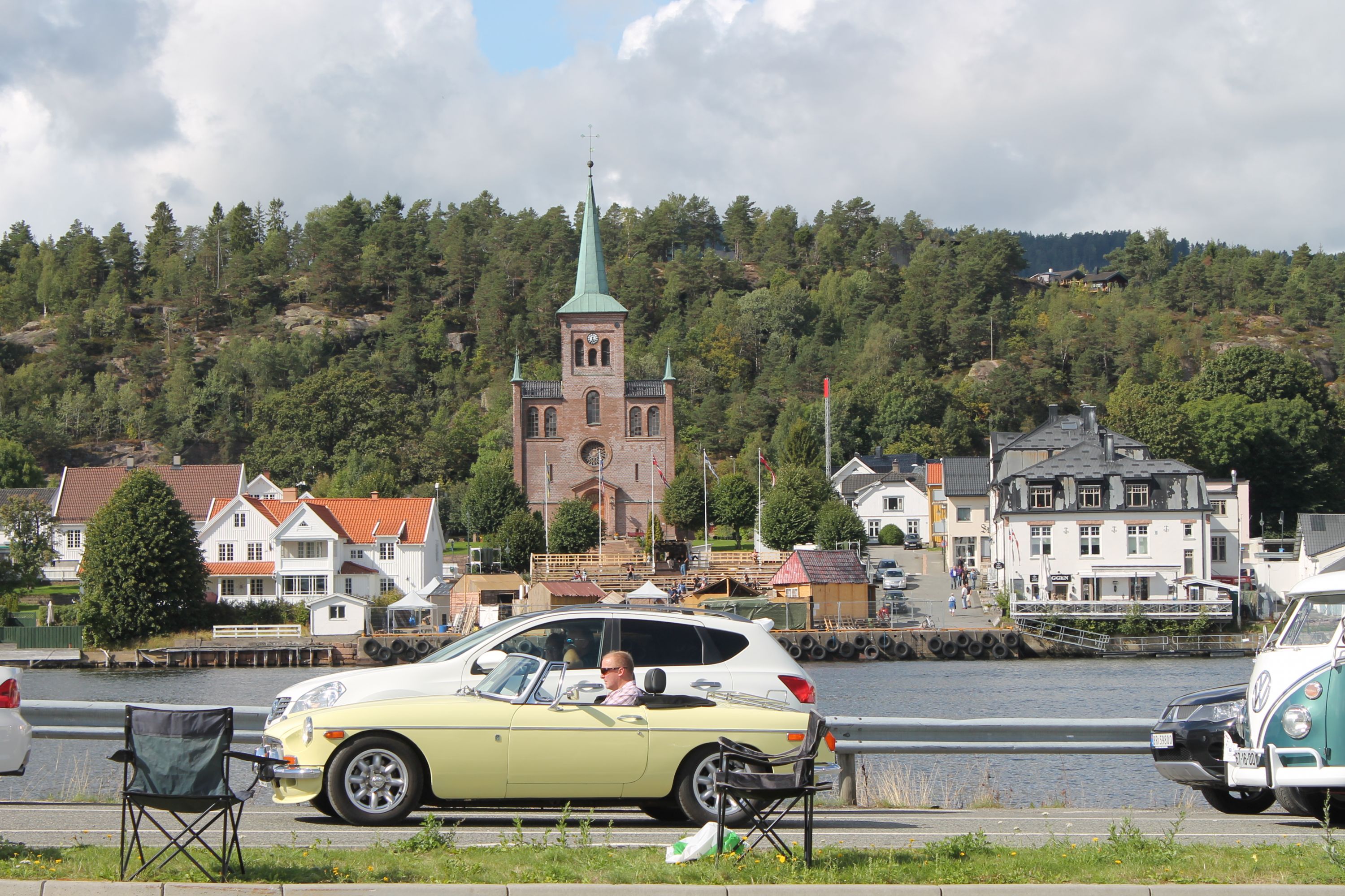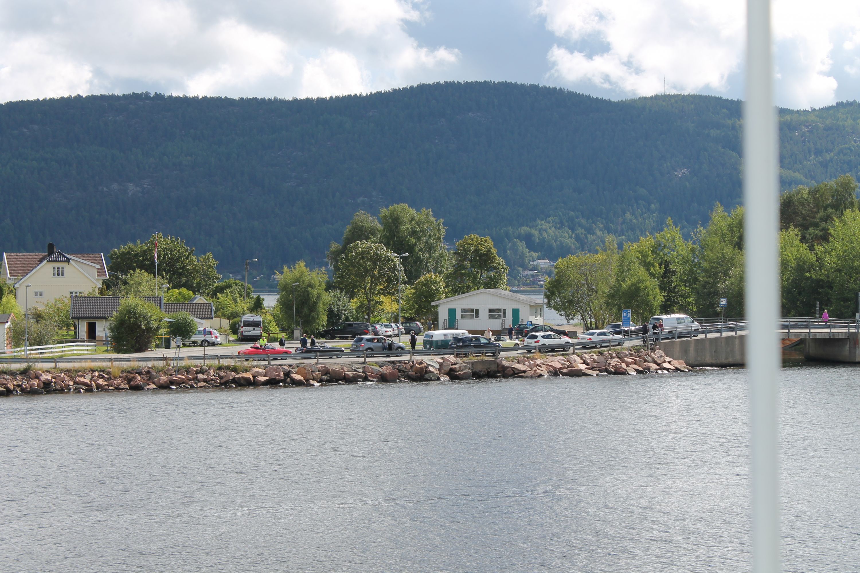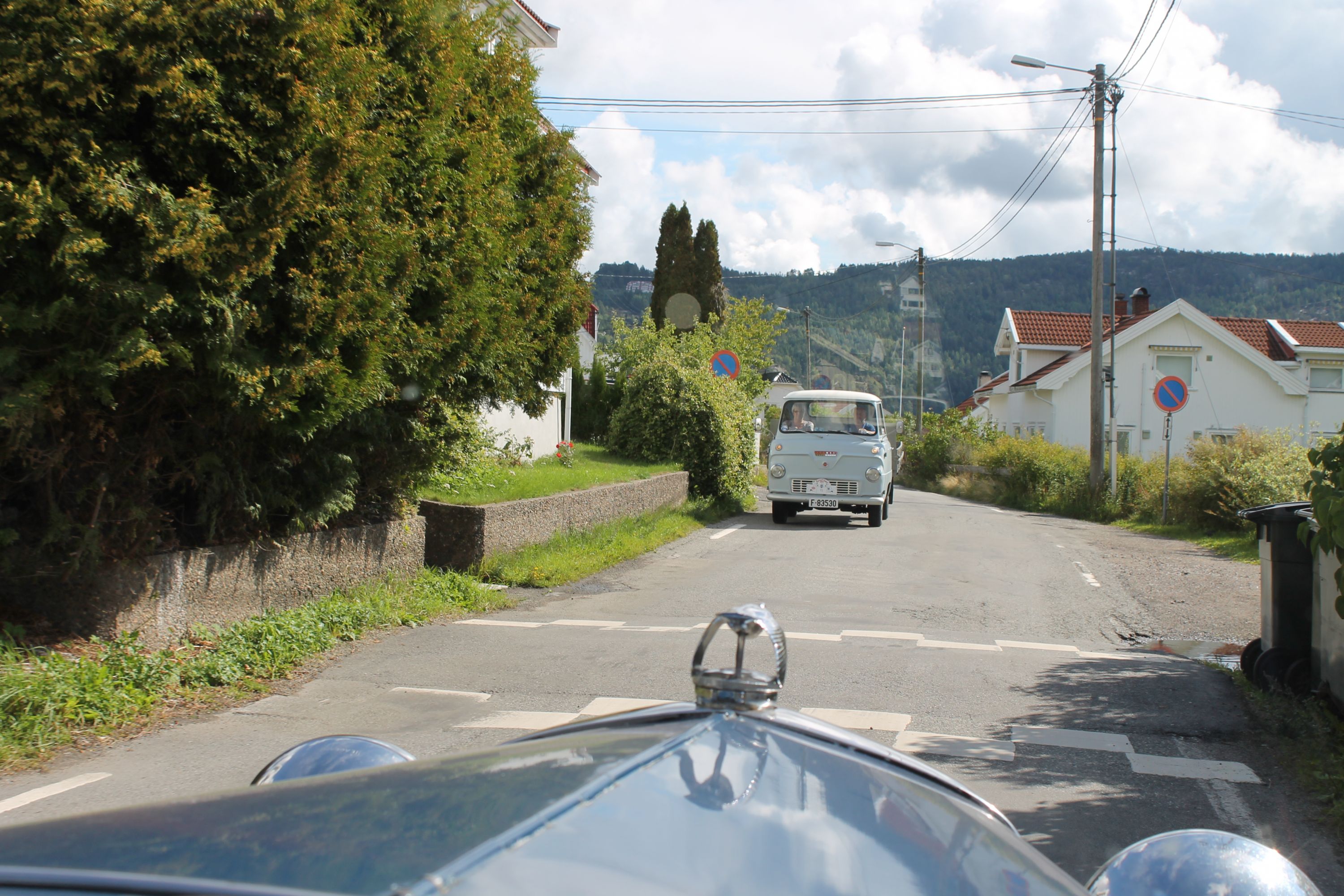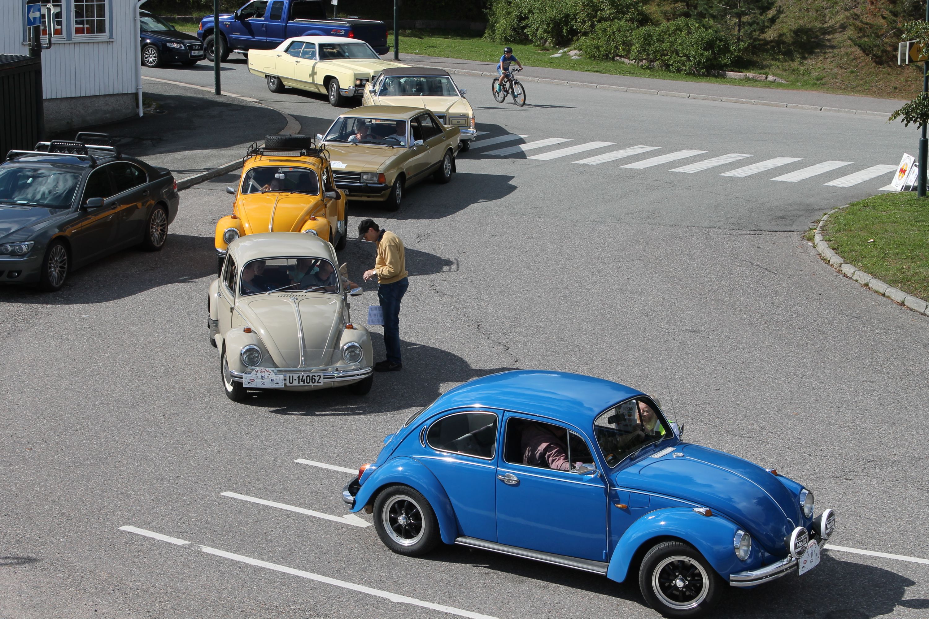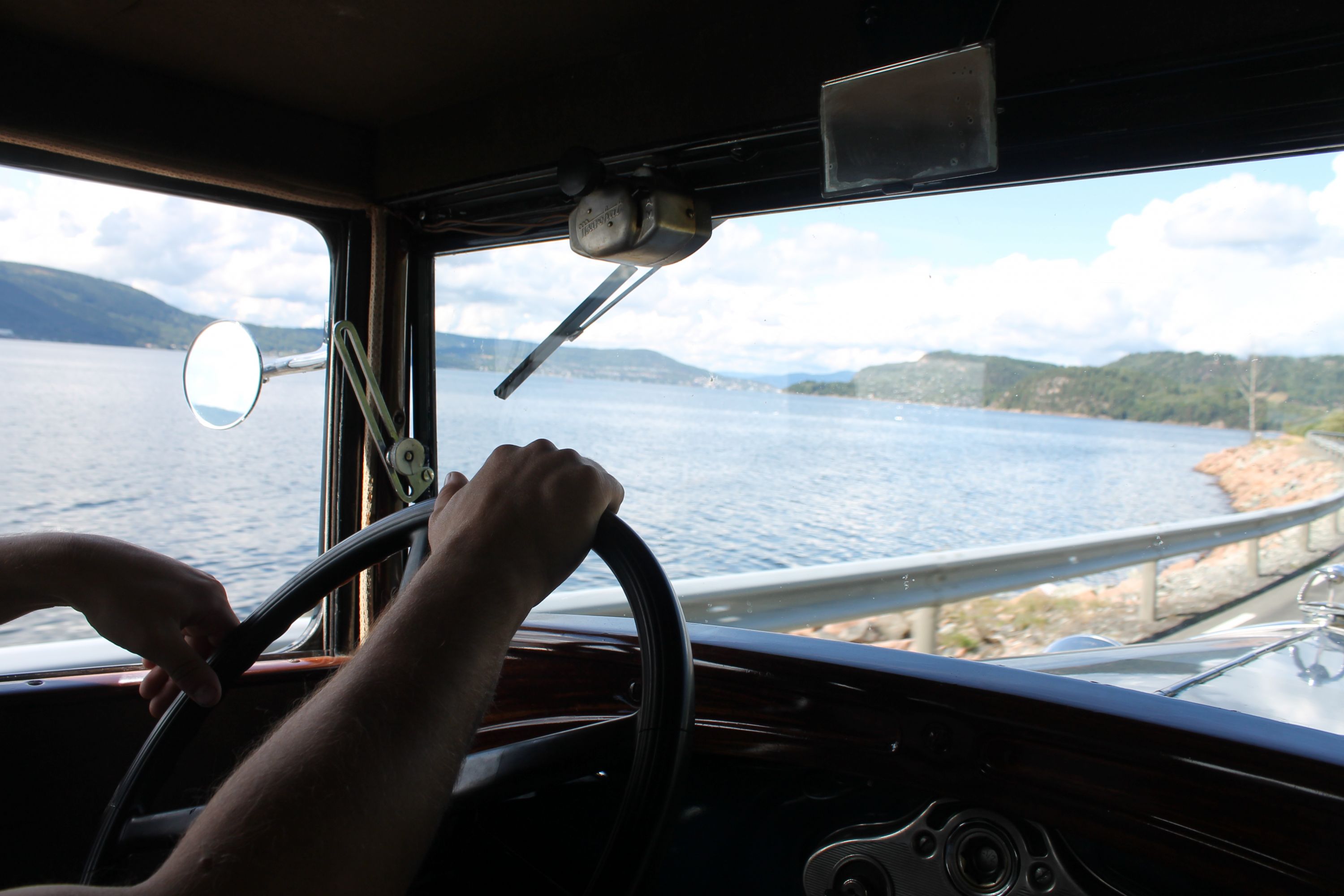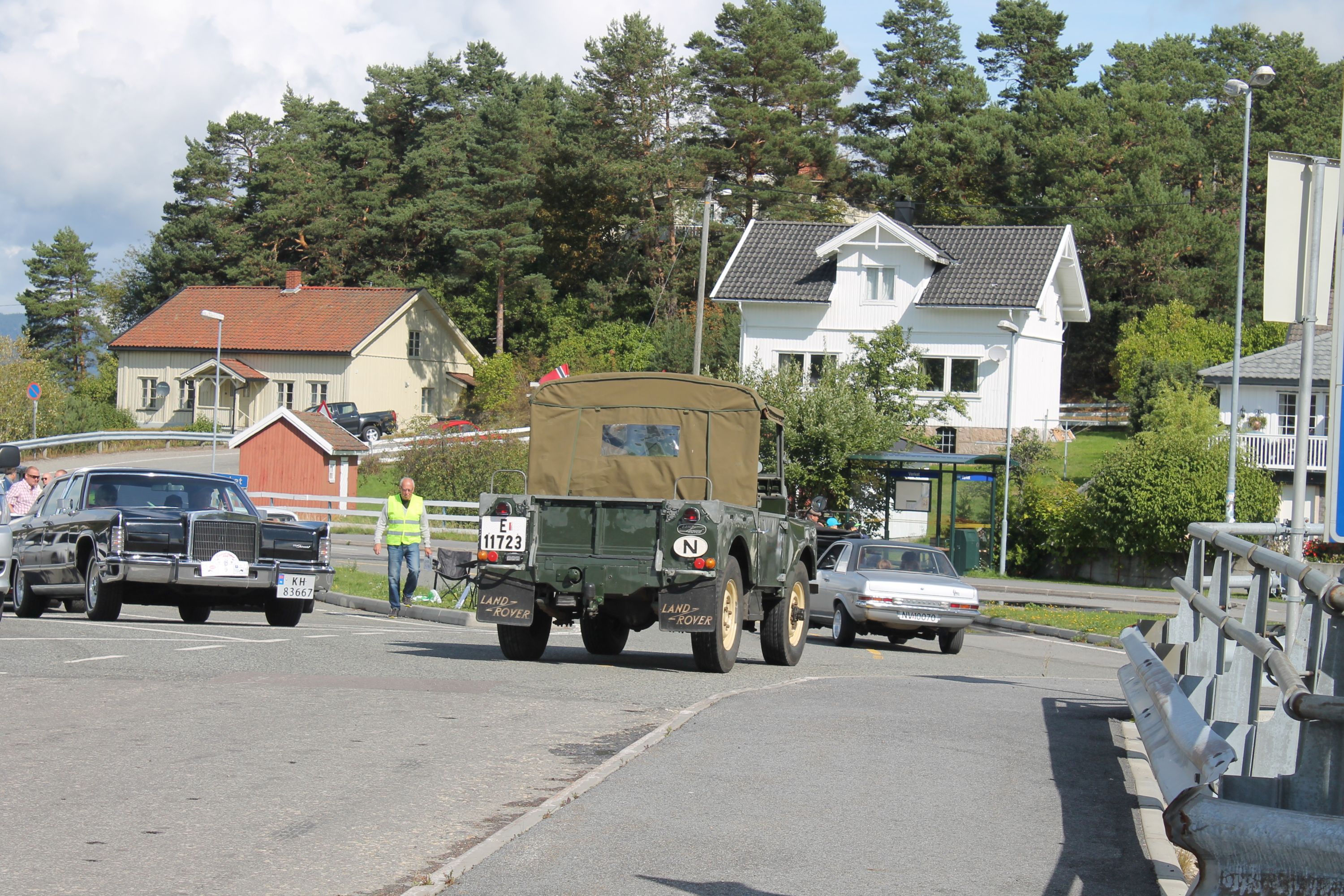Løypa gikk iår ut Drammensfjorden. Annenhver deltager ble sendt hhv sør- og nordsiden til Verket og Svelvik. Vi som kjørte RV319 til Svelvik hadde første post på Syvertsvollen der oppgaven var å sentrere høyre forhjul mot en strek på et bord av impregnert gran. Sto en svær atlet av en mann i veien der og passet på trafikken. Han sendte oss myndig videre mot den pittoreske småbyen Svelvik, byen som kan skilte med såvel Kiwi-avdeling som Vinmonopol. På kaia til Svælvikfærja påtraff vi Kjell Thon og hans mannskap som påla alle deltagere å identifisere en haug med bilmerkers logo. Vi kjørte så ombord i fergen. Lite er så romantisk som fergetur med gammalbil i strålende vær. Synd turen var så kort. På soldekket var det kun bil nr 76 sine passasjerer. Hva dere andre gikk glipp av! Nydelig utsikt fra velstelte tykke stålplater. Vi savnet noen bunnies med paraplydrinker og et temperert basseng, men innser at vi ikke kan forlange alt for en beskjeden startkontingent.