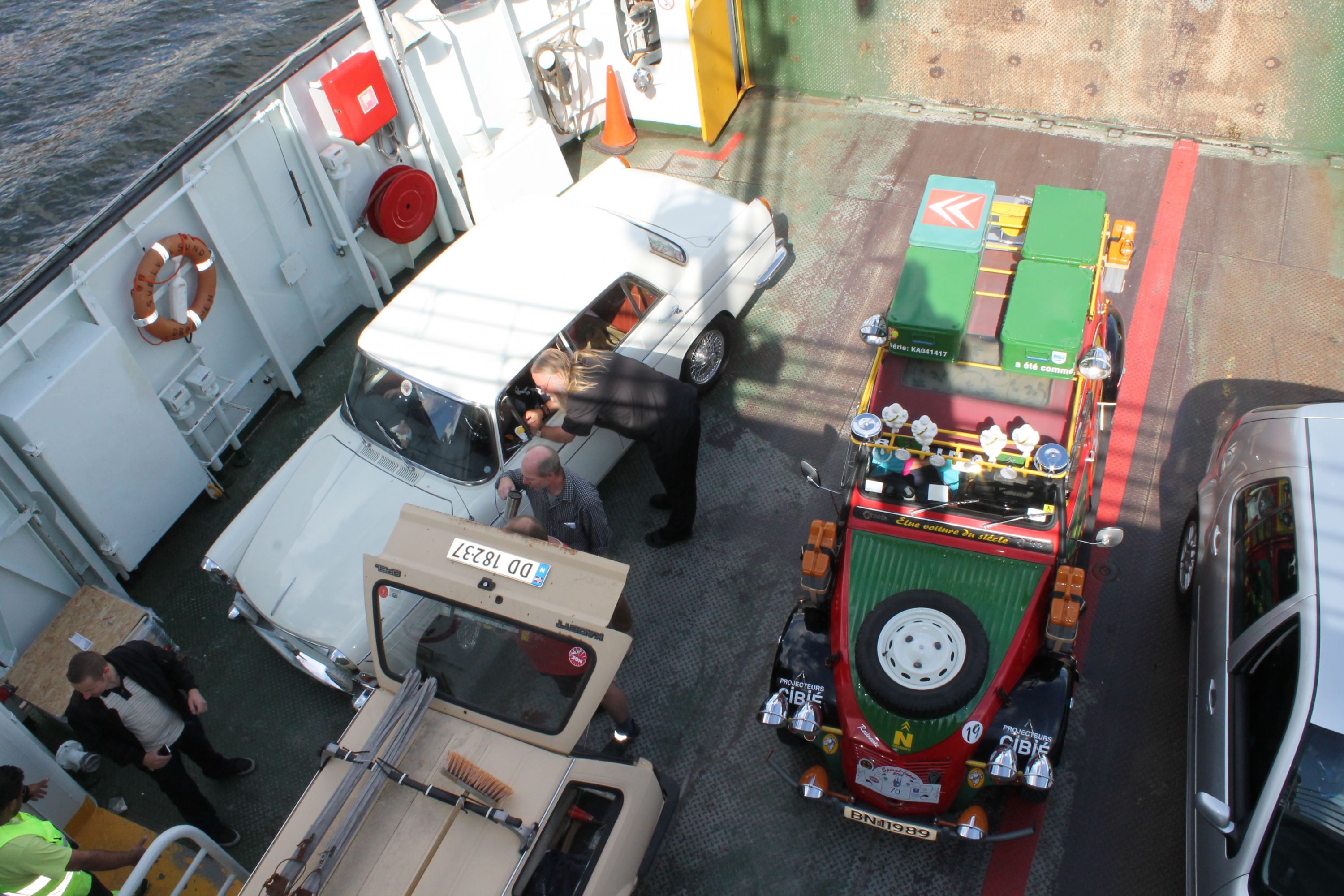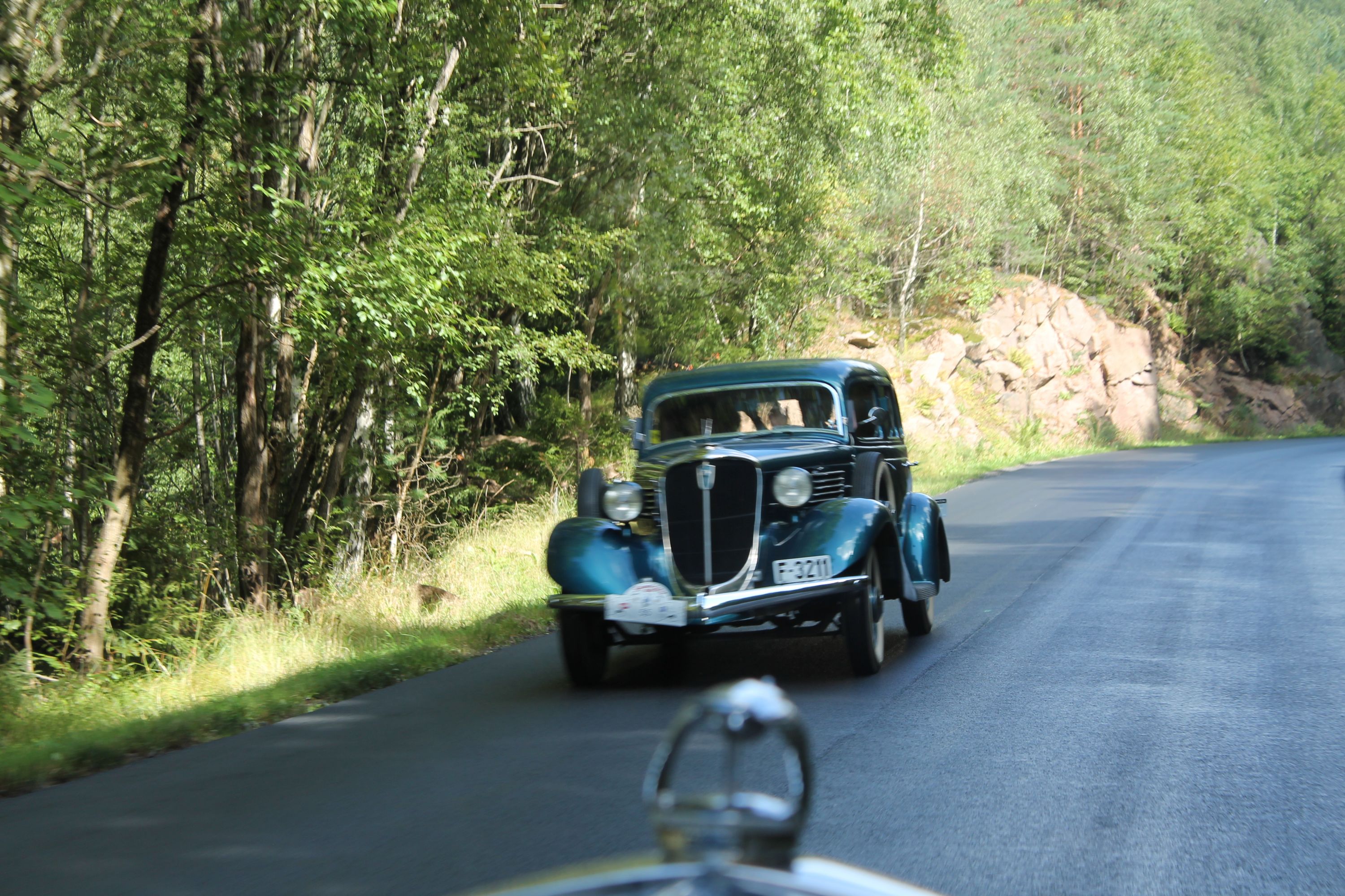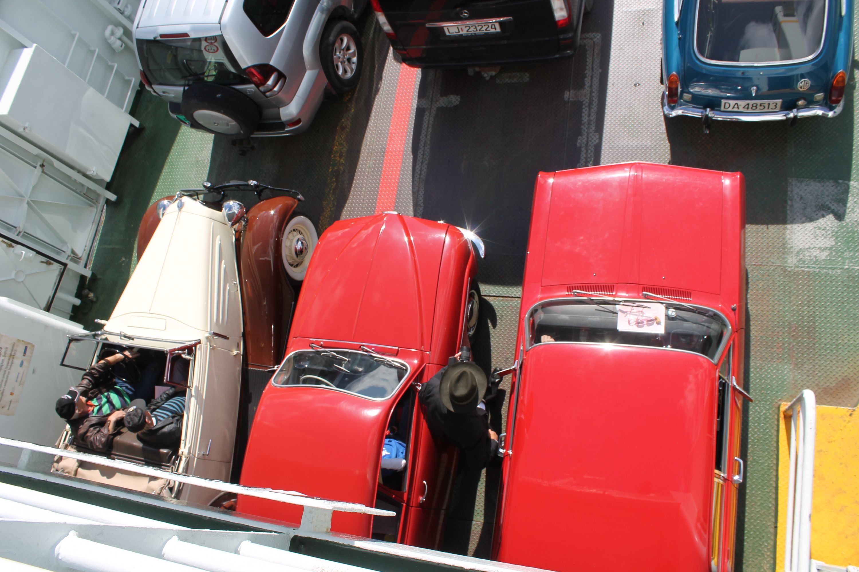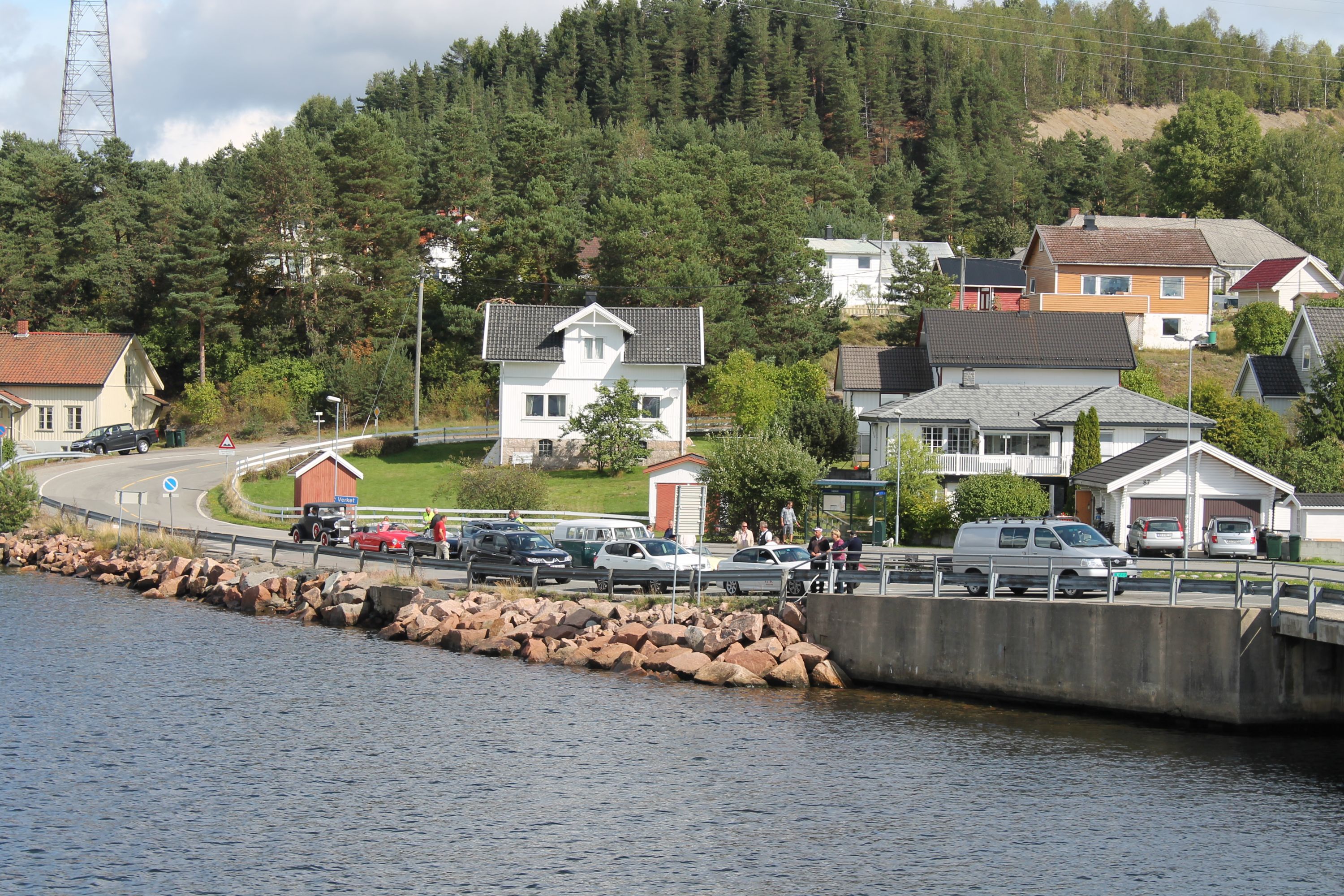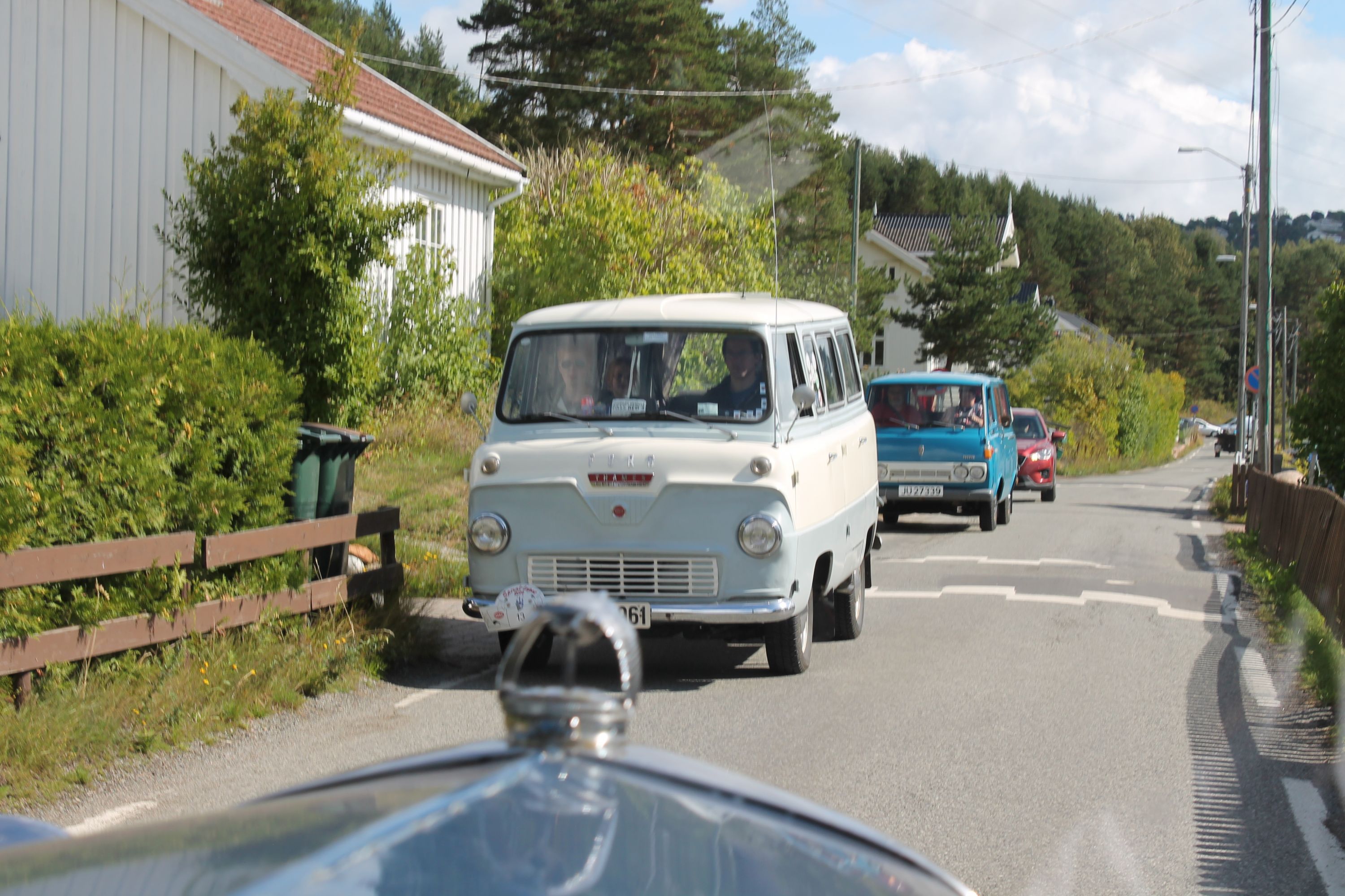 Løypa gikk iår ut Drammensfjorden. Annenhver deltager ble sendt hhv sør- og nordsiden til Verket og Svelvik. Vi som kjørte RV319 til Svelvik hadde første post på Syvertsvollen der oppgaven var å sentrere høyre forhjul mot en strek på et bord av impregnert gran. Sto en svær atlet av en mann i veien der og passet på trafikken. Han sendte oss myndig videre mot den pittoreske småbyen Svelvik, byen som kan skilte med såvel Kiwi-avdeling som Vinmonopol. På kaia til Svælvikfærja påtraff vi Kjell Thon og hans mannskap som påla alle deltagere å identifisere en haug med bilmerkers logo. Vi kjørte så ombord i fergen. Lite er så romantisk som fergetur med gammalbil i strålende vær. Synd turen var så kort. På soldekket var det kun bil nr 76 sine passasjerer. Hva dere andre gikk glipp av! Nydelig utsikt fra velstelte tykke stålplater. Vi savnet noen bunnies med paraplydrinker og et temperert basseng, men innser at vi ikke kan forlange alt for en beskjeden startkontingent.