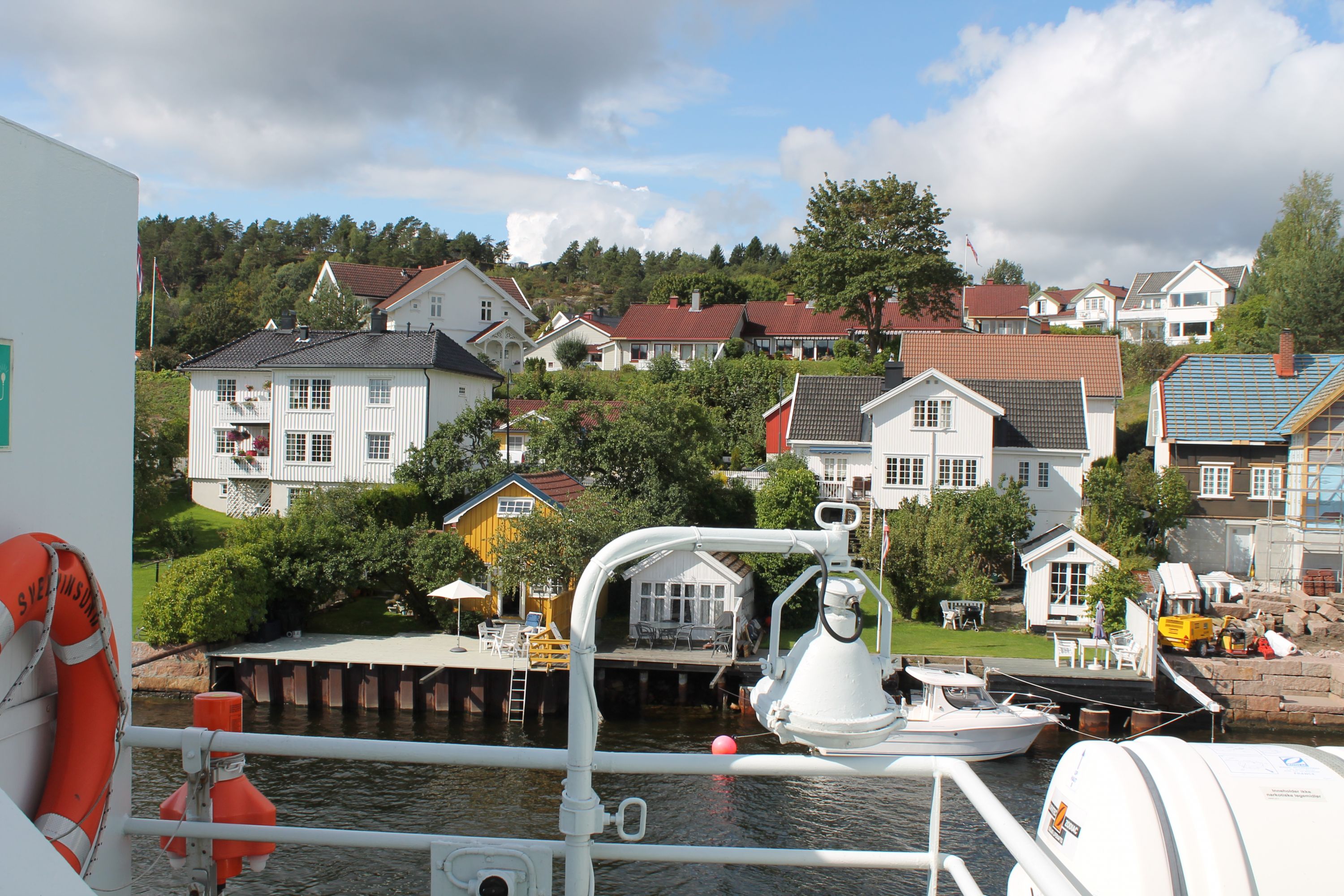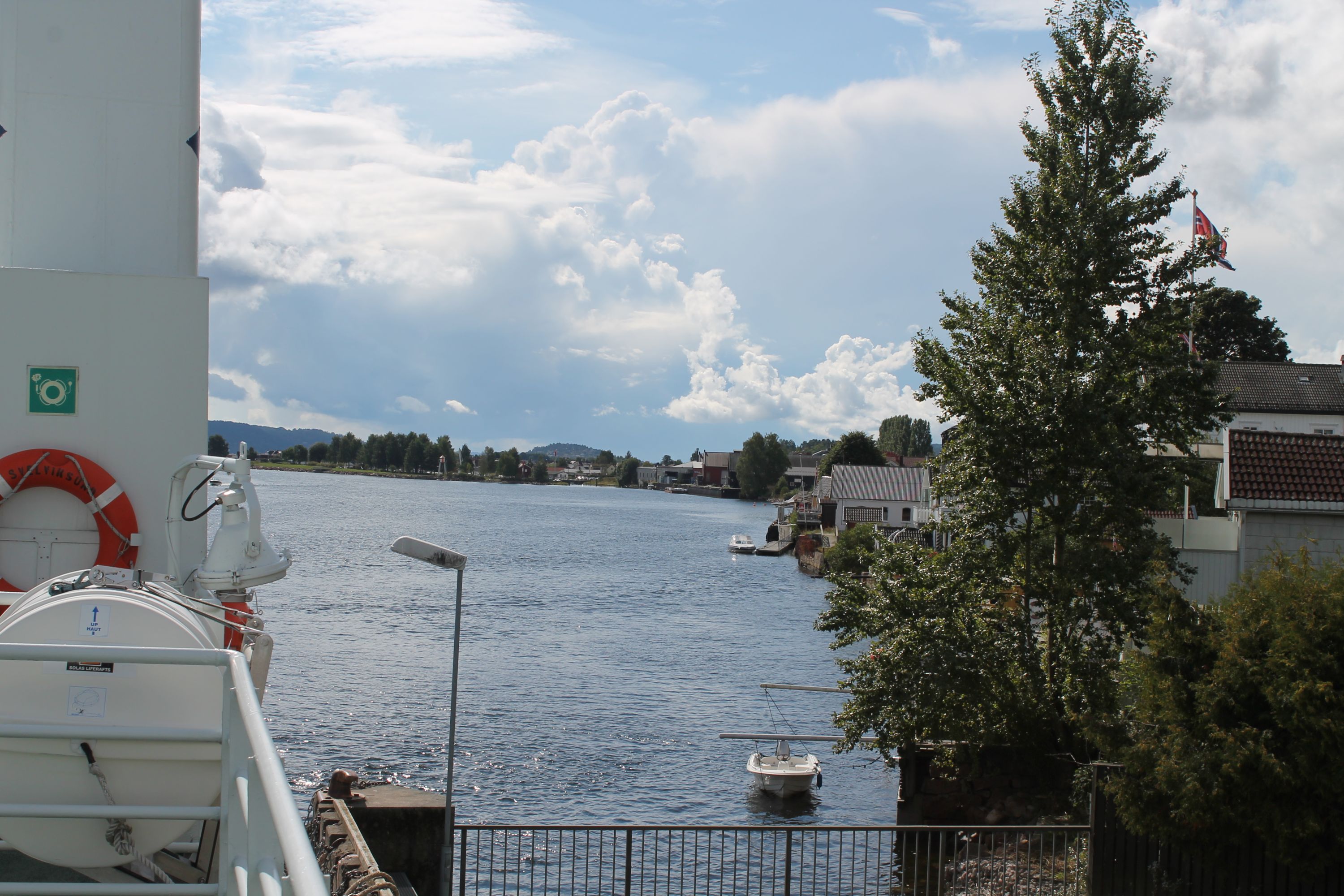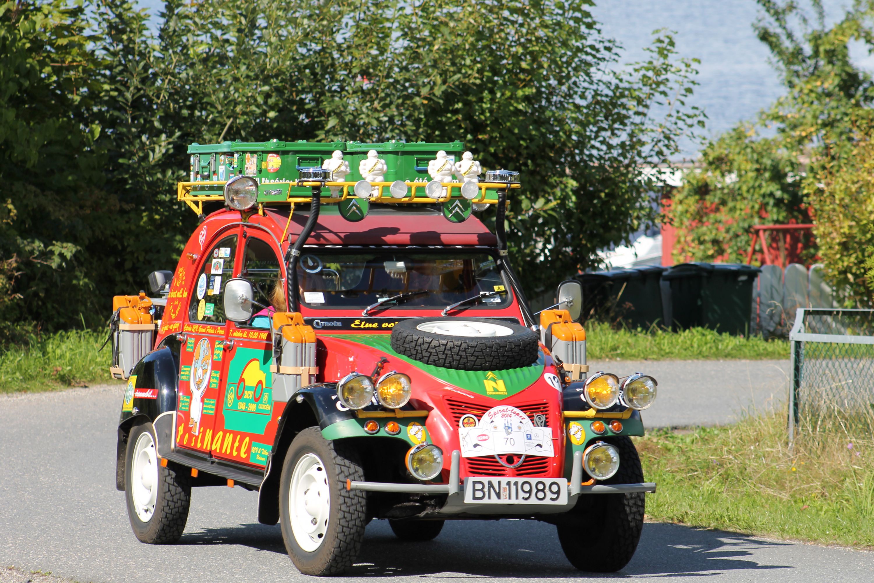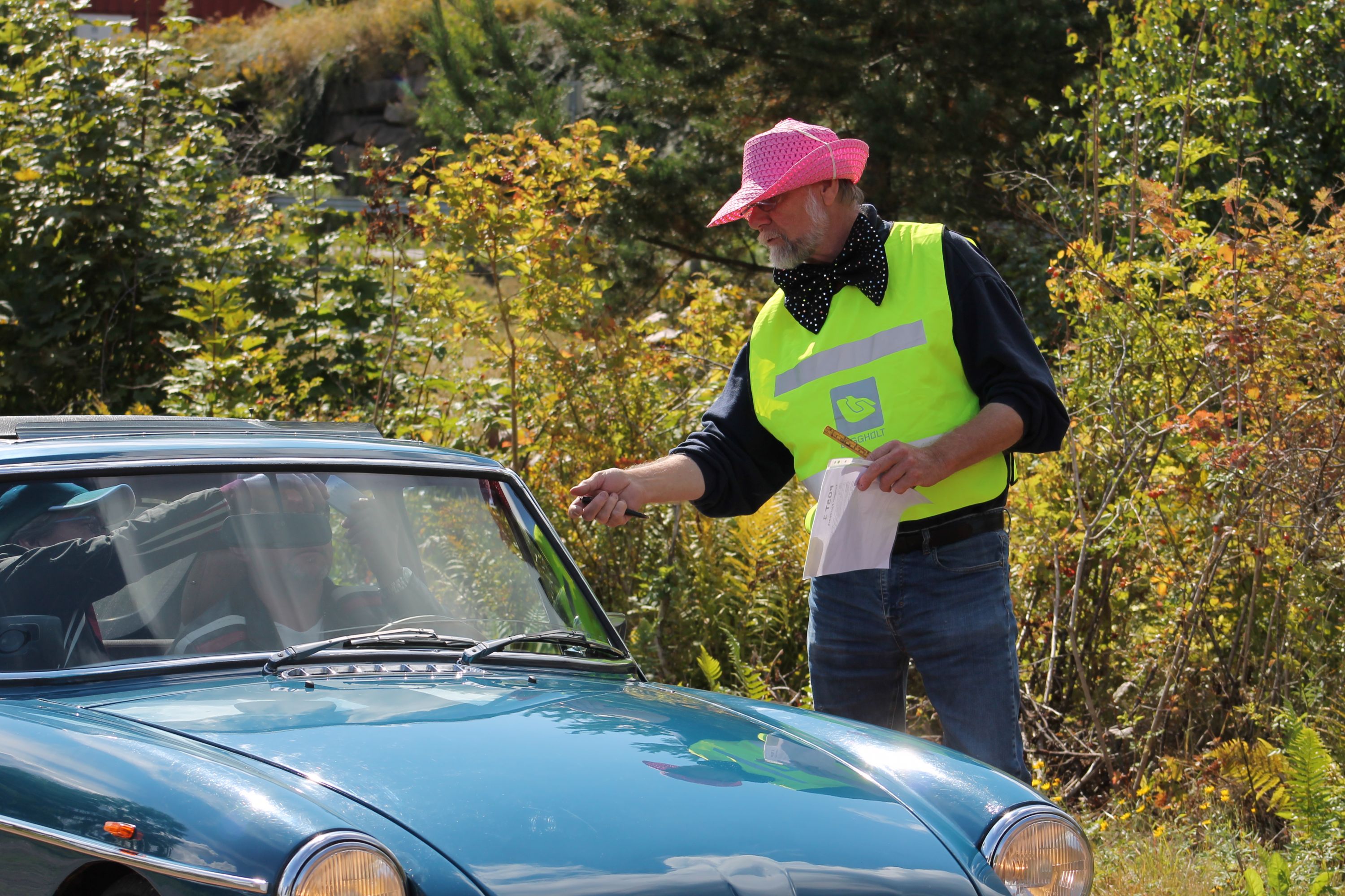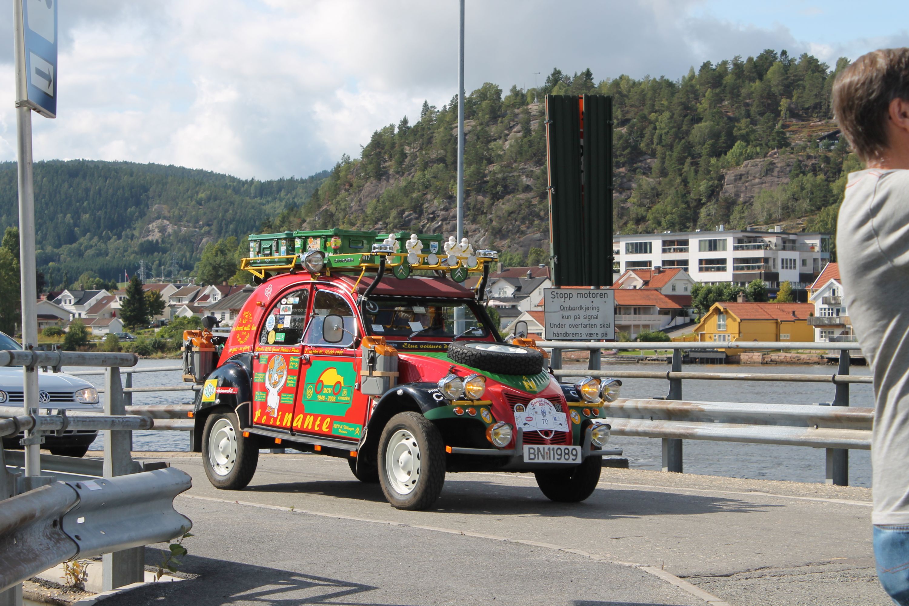 Løypa gikk iår ut Drammensfjorden. Annenhver deltager ble sendt hhv sør- og nordsiden til Verket og Svelvik. Vi som kjørte RV319 til Svelvik hadde første post på Syvertsvollen der oppgaven var å sentrere høyre forhjul mot en strek på et bord av impregnert gran. Sto en svær atlet av en mann i veien der og passet på trafikken. Han sendte oss myndig videre mot den pittoreske småbyen Svelvik, byen som kan skilte med såvel Kiwi-avdeling som Vinmonopol. På kaia til Svælvikfærja påtraff vi Kjell Thon og hans mannskap som påla alle deltagere å identifisere en haug med bilmerkers logo. Vi kjørte så ombord i fergen. Lite er så romantisk som fergetur med gammalbil i strålende vær. Synd turen var så kort. På soldekket var det kun bil nr 76 sine passasjerer. Hva dere andre gikk glipp av! Nydelig utsikt fra velstelte tykke stålplater. Vi savnet noen bunnies med paraplydrinker og et temperert basseng, men innser at vi ikke kan forlange alt for en beskjeden startkontingent.