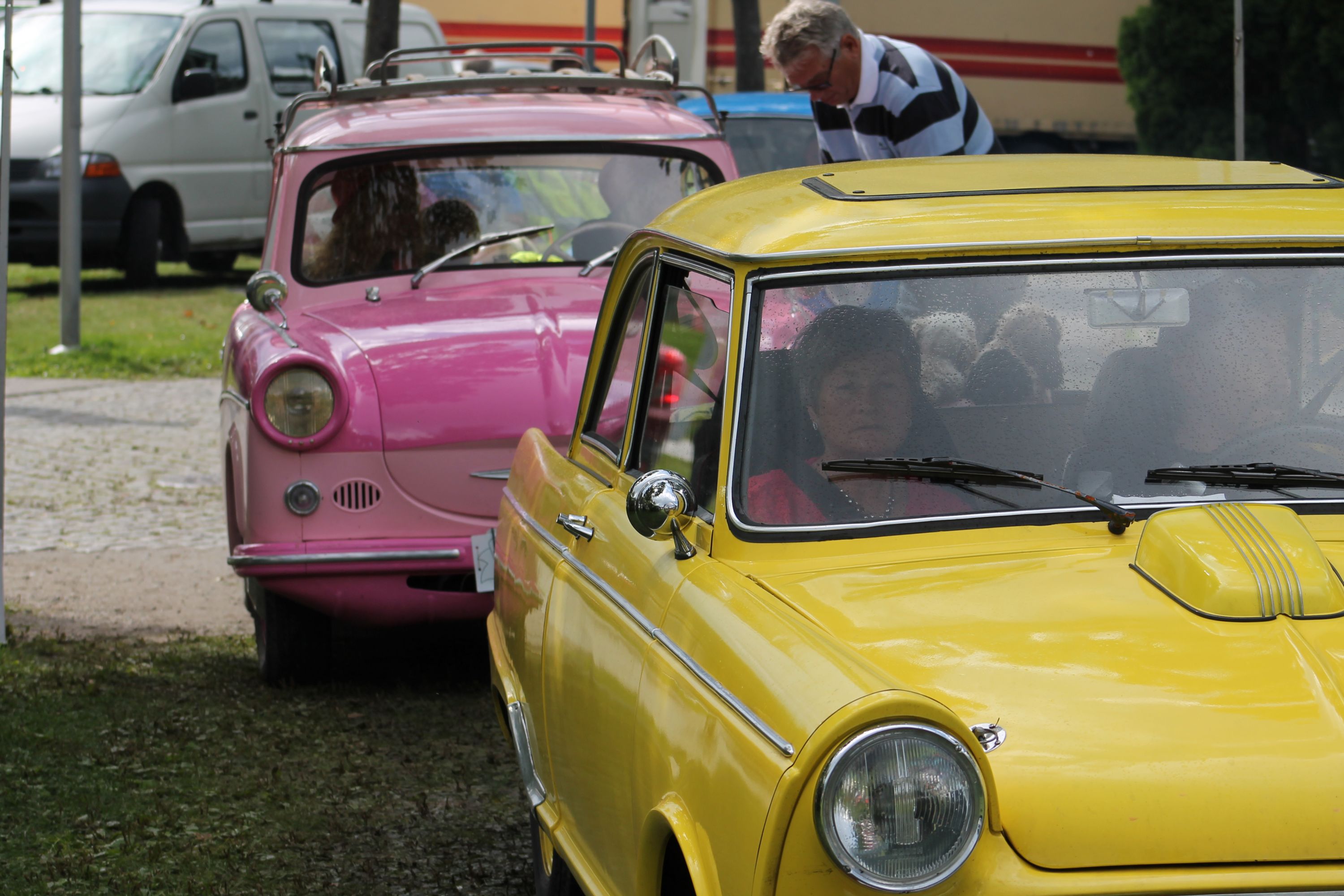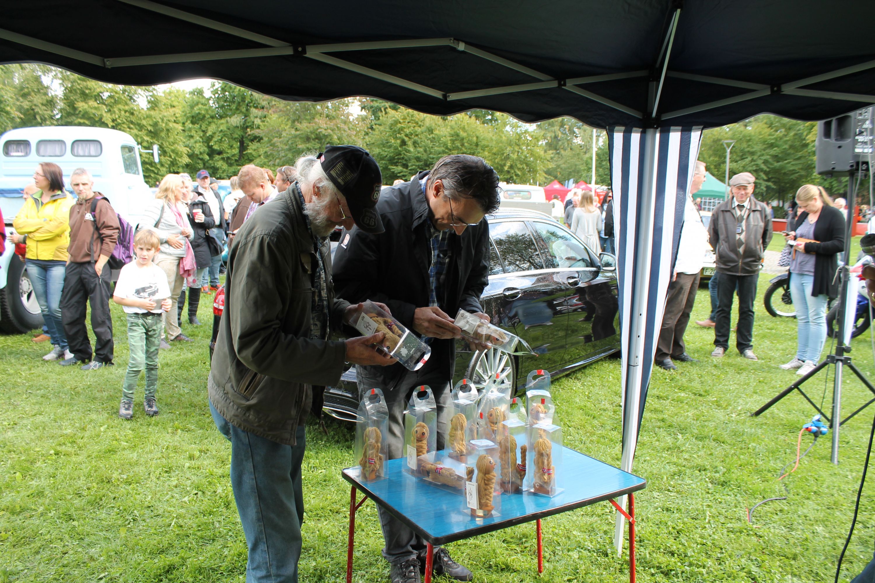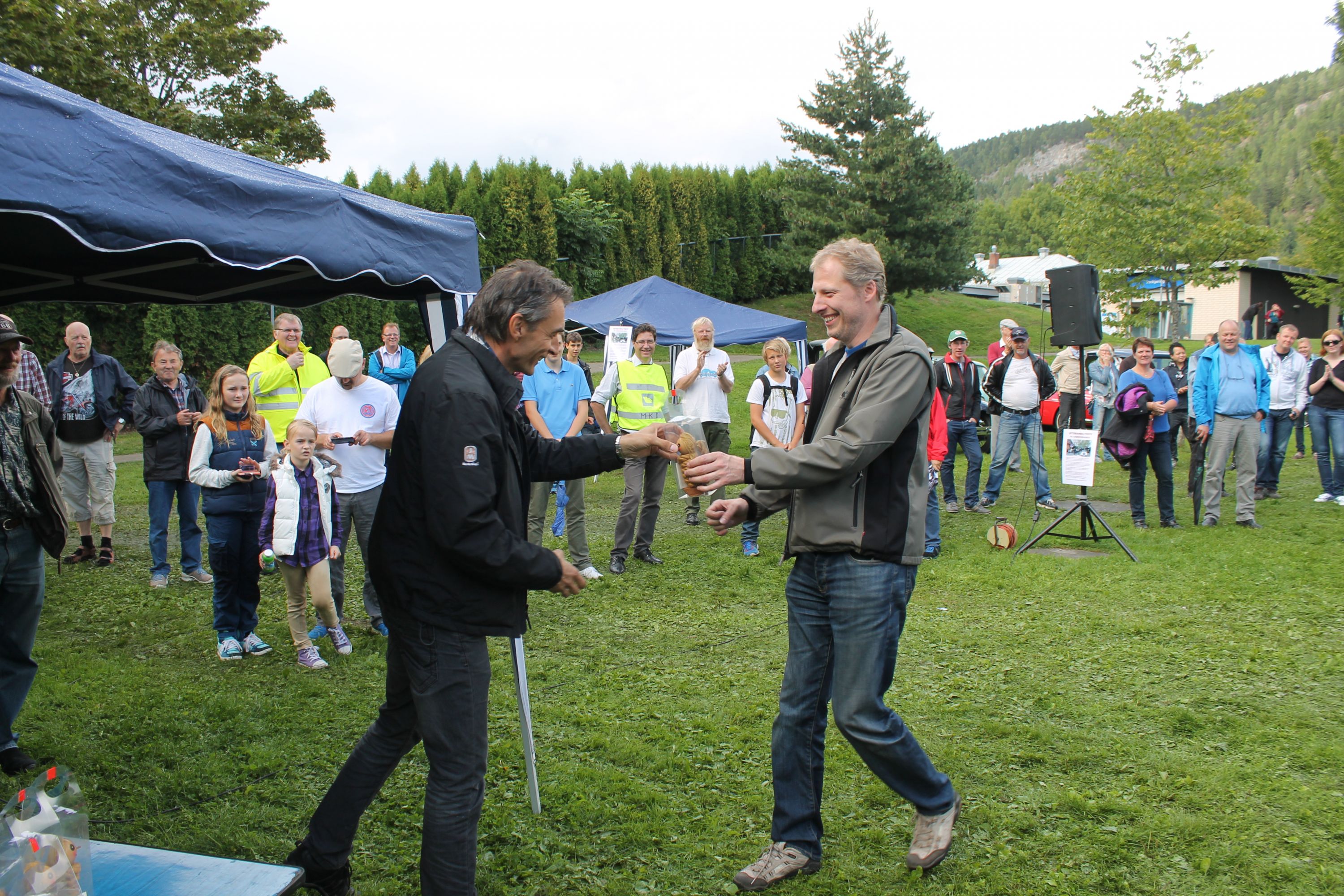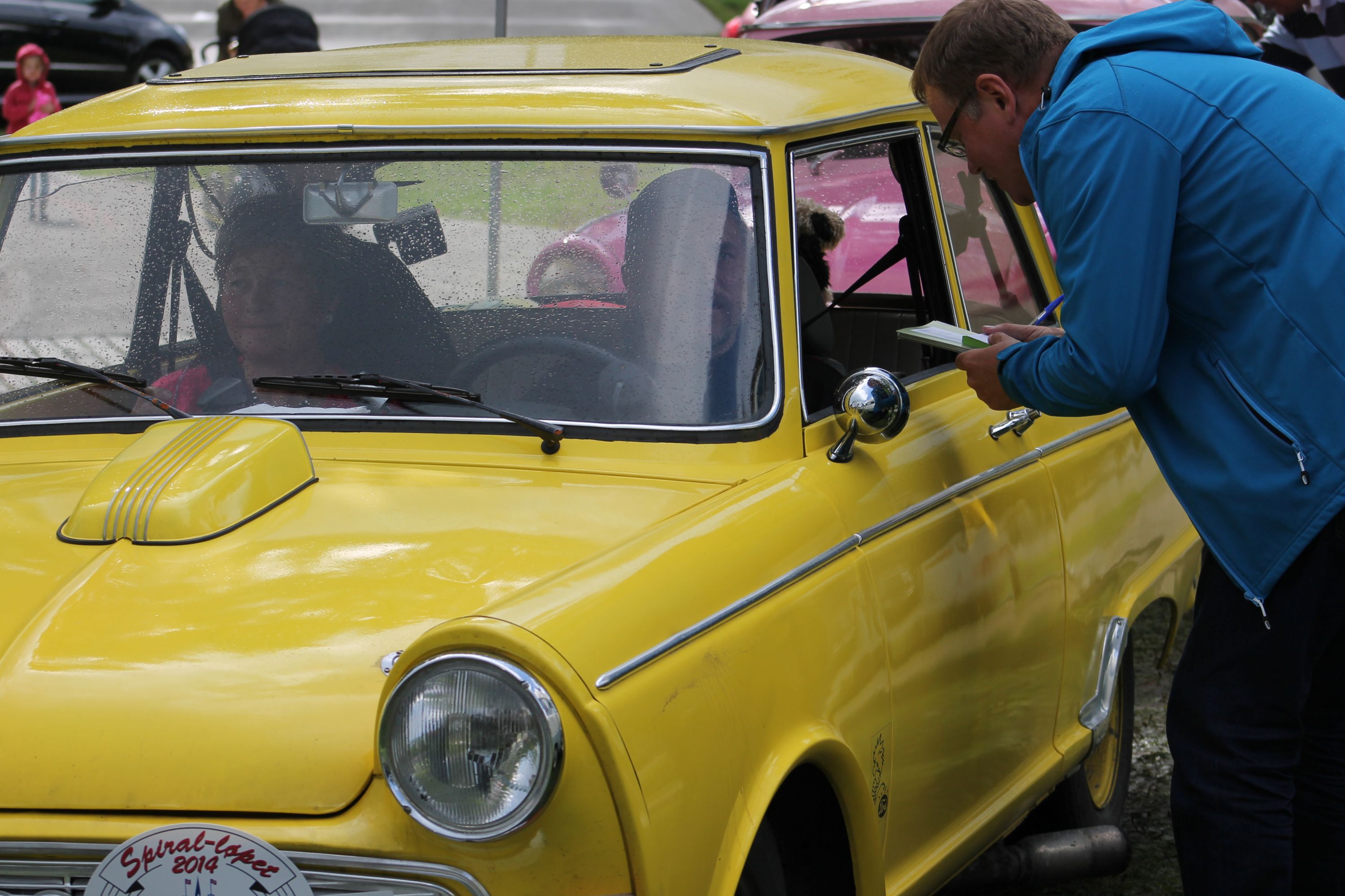 Så bar det inn mot byen igjen. Med dispensasjon til å kjøre mot forbudsskilt. En deilig opplevelse. Siste post skulle ha vært på Spiraltoppen som vanlig, men vårt åndssvake samfunn satte en effektiv stopper for det. Som kjent er alt fali'. Spiralen har i alle år blitt kjørt opp og ned i ulike hensikter. Så fant noen lyse hoder ut at det måtte installeres brannvarslingsanlegg i denne vesle tunellen. Og når det ikke virker så blir det stengt av noen - unnskyld uttrykket - idioter i den kommunale administrasjon. Alt har blitt farlig og det meste er forbudt..... Nok om det - ned i parken igjen med premieutdeling til store og små. De små fikk som vanlig velge fritt på premiebordet. Sjåførpremiene ble utdelt i høytidelige former og de ti beste fikk hver sitt trøll. To premiemottagere av den impulsive sorten utmerket seg og satte en fin spiss på arrangementet. Vinner av tiendepremien Heidi Skau jublet så det klirret i gatelysa og Die Trabi-mädchen som mottok premie for beste antrekk var et nydelig skue
