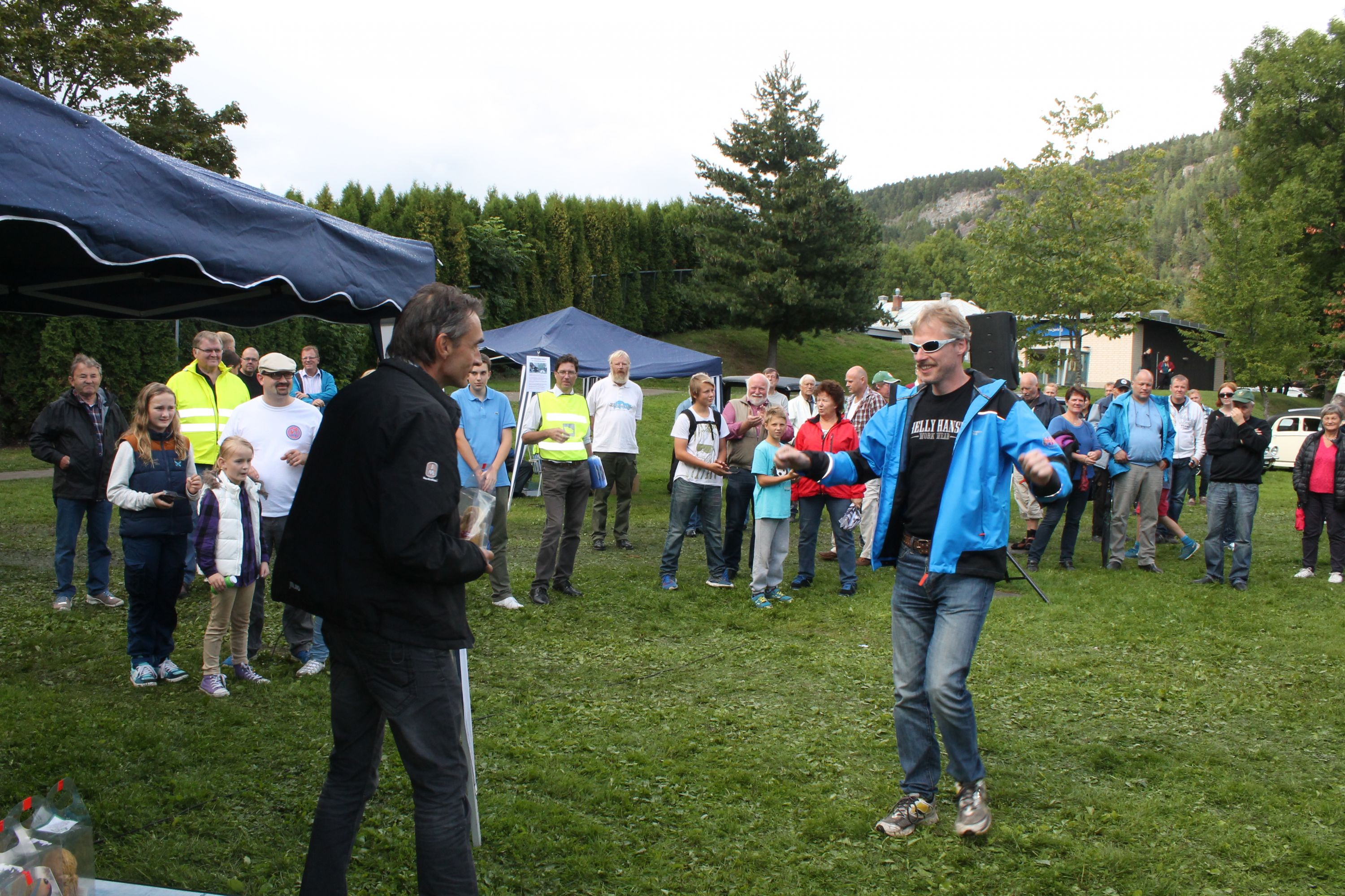 Vel i land på Verket møtte vi andre trosfeller som vi villig overlot skuta til. Bånn gass opp bakkene til Klokkarstua. Bånn gass betyr ikke det samme som aspirering til førerkortbeslag for redaktøren selv om andre nok skulle greie det om lensmannen hadde vært edru og på jobb. Videre mot Gjerdal der vi har vært innom utallige ganger i klubbens 42-årige historie. Flott sted der det ble kastet på stkka. Med stoppskiver! Skal vi klage på noe så må det være nettopp dette. Skikkelige 5-øringer neste gang takk! Tormod Bjørnethun og hans feminine mannskap var strenge og rettferdige dommere. Noen tok seg en fortjent matpause der ute på Hernestangen.