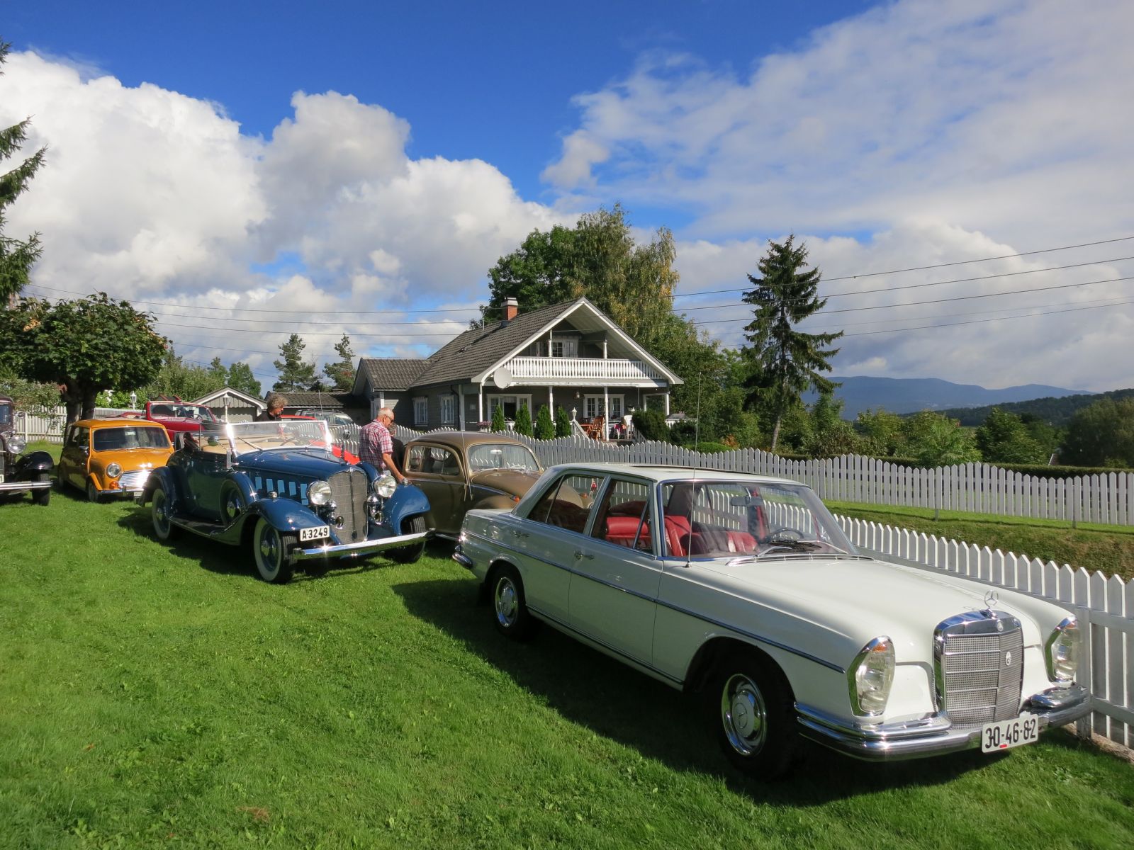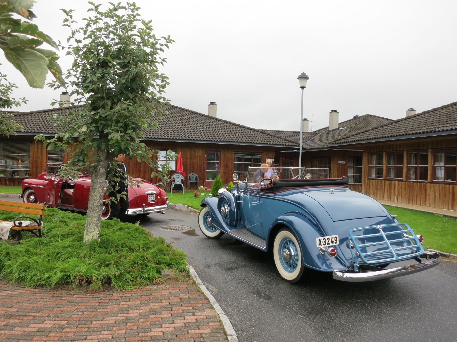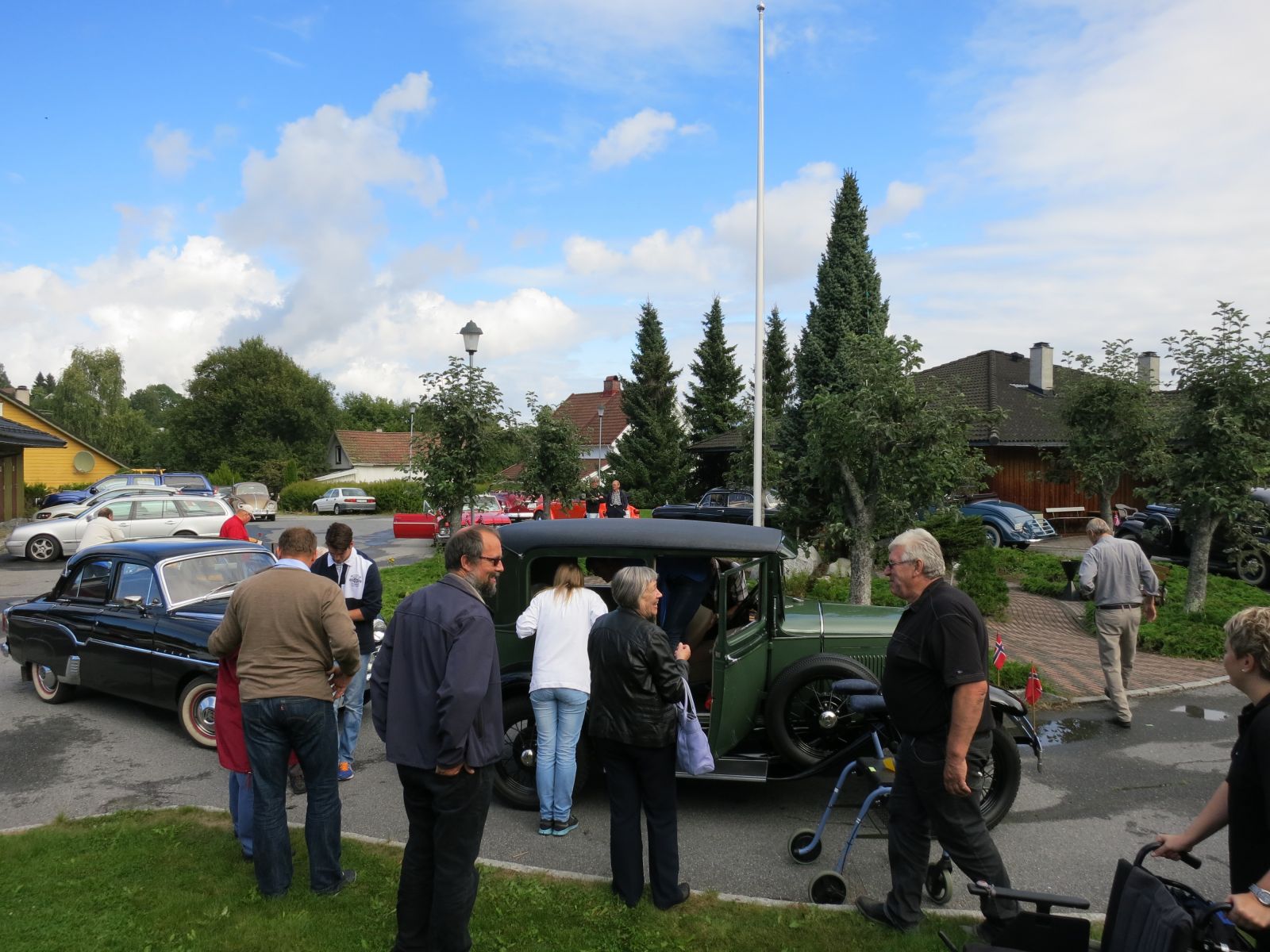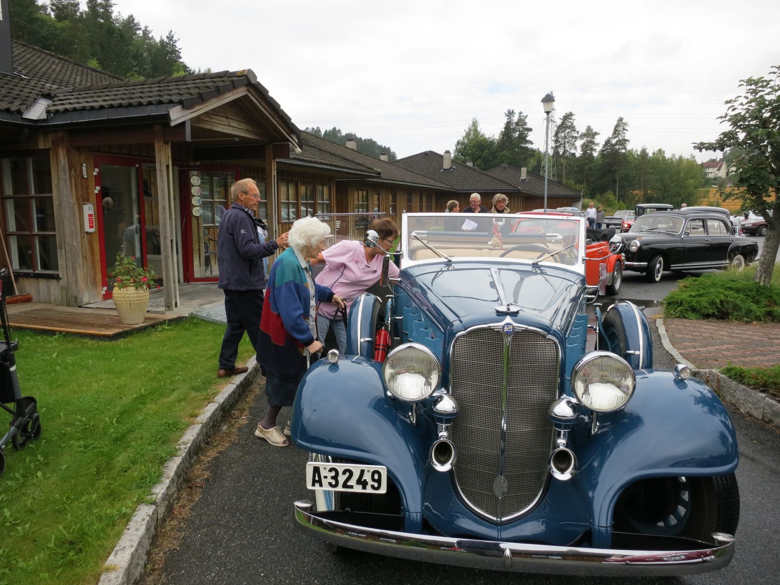 Lørdag 31 august ankom 22 blankpolerte gamle biler trygdepensjonatet. Regn på morgenen, men stadig bedring av været gjorde så alle som hadde mulighet kunne kjøre med åpen bil. Forventningene blant beboere var stor, og en eldre herre hadde banna da han så det var regn på morgenen.