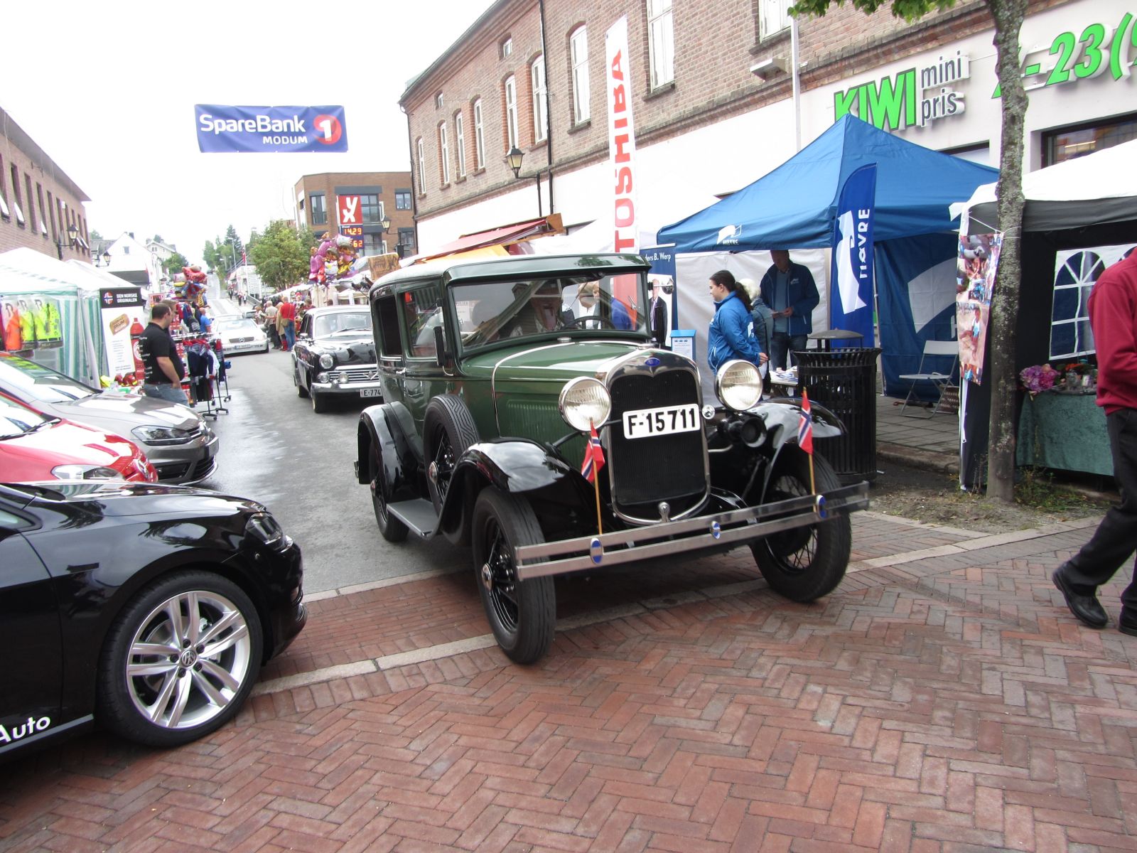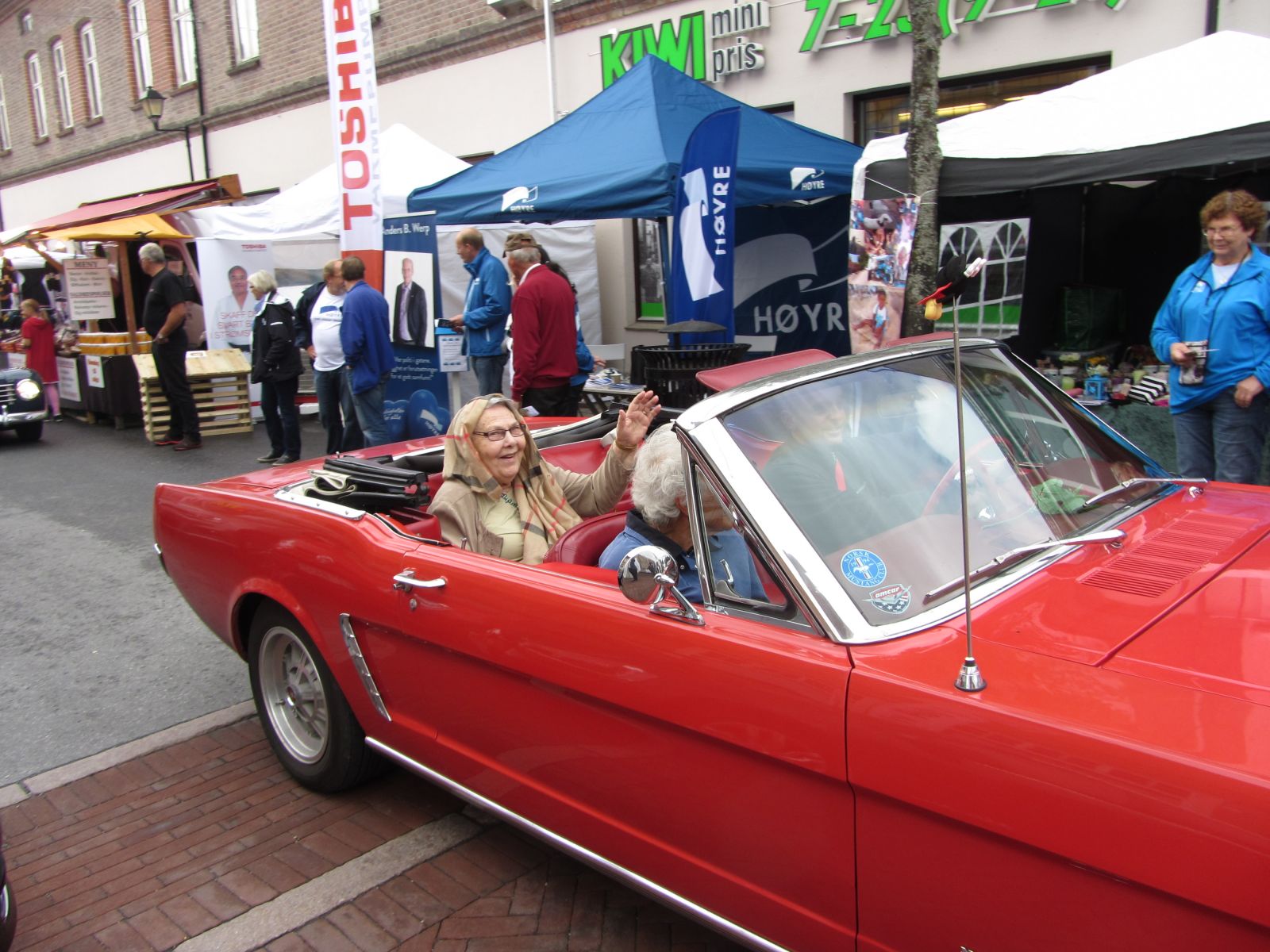 Kl 1200 drar vi fra Fossesholm ca 10 veteranbiler henger seg på traktorgjengen til Skrothaugen Maskinlag med Mogulen i spissen. Mye folk i gata i dag også. Utstilling av veteranbiler i parken hvor Skrothaugen Maskinlag har stand. Kl 1500 kjører vi en ny runde i gata med traktorer først, enda mere folk nå.