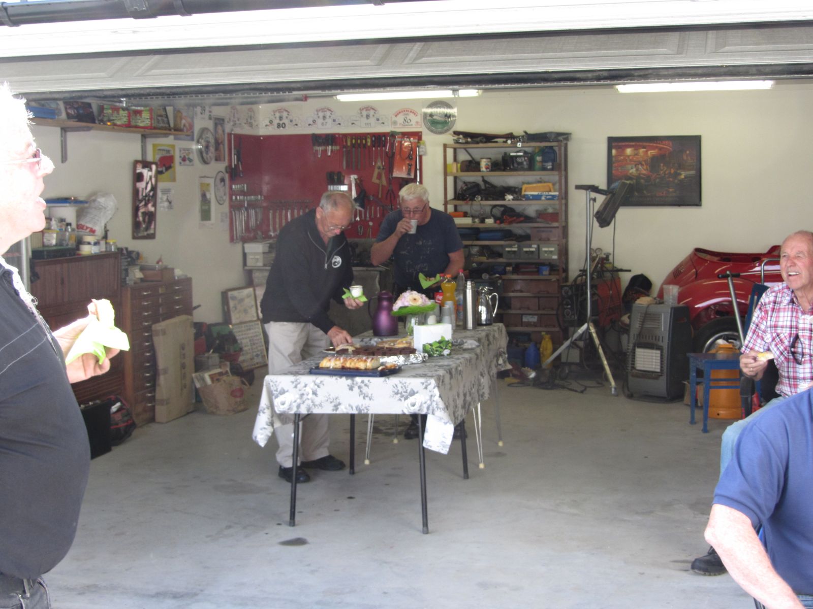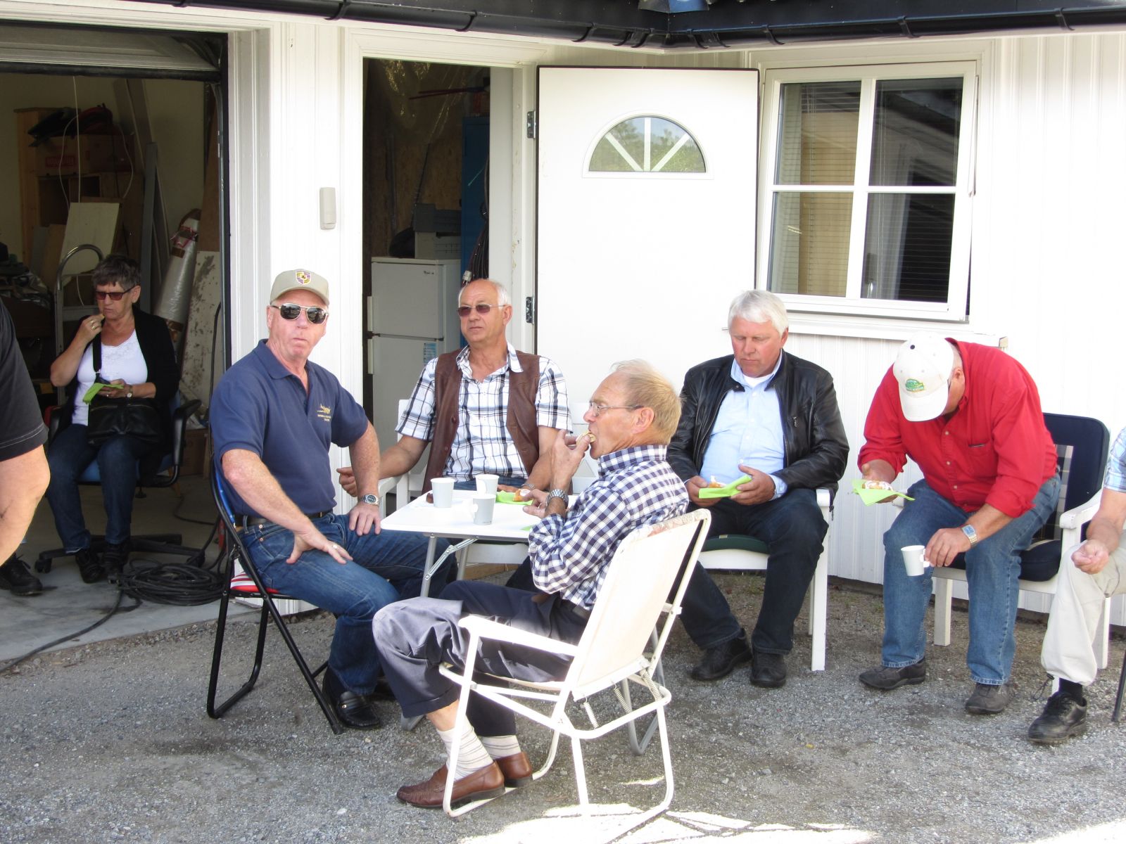 Etterpå serverte Wenche kaffe og kaker i The Old Mans Garage i Steingata 3 for alle sjåfører. Aldri har vi vel hatt besøk av så mange fine gamle kjøretøy her på gården.