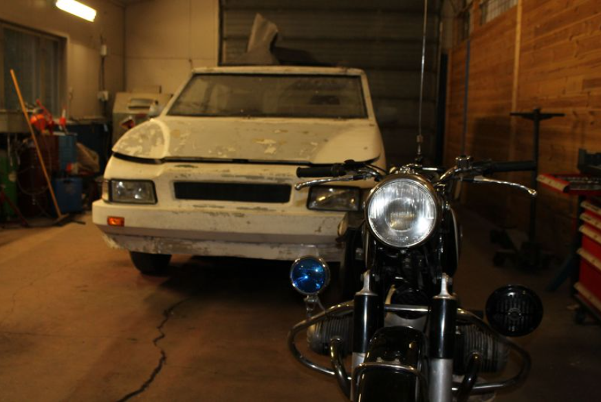 23.09.14 Bilen går! Otto har byttet regreim, Erik og Atle har fiksa bremser og det er konstatert at automatkassa trekker bilen i begge retninger. Noen aha-opplevelser får vi også - håndbrekk har ikke konstruktørene brydd seg med å lage, ei heller har de sett noen nytte av sikkerhetsbelter. Her må vi nok modernisere litt før vi kan registrere.