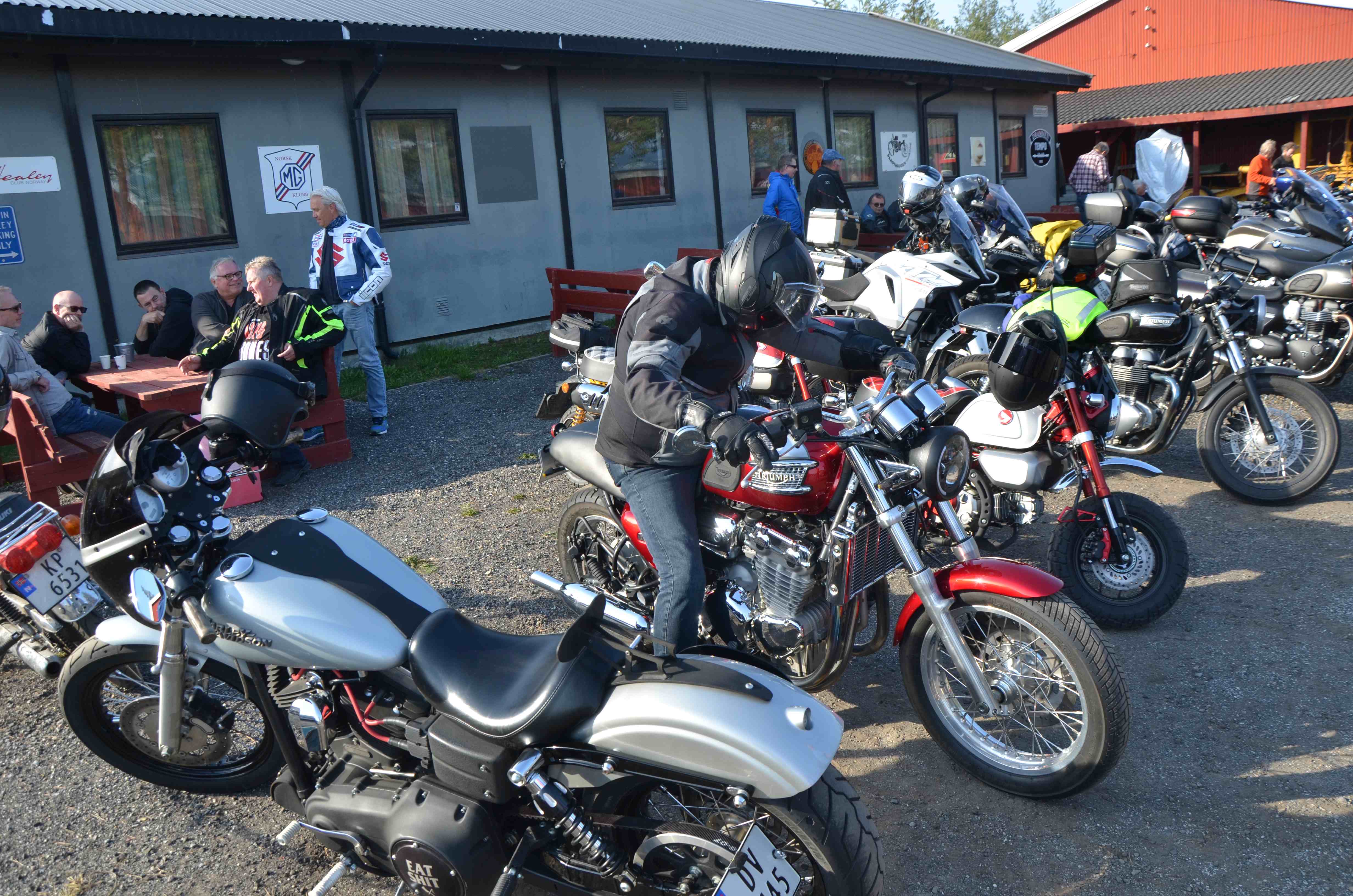 Ikke bare startet, men den er godt igang. Området var omtrent helt fylt opp med kjøretøy og folk. Gledelig også å registrere kjøretøy vi ikke har sett der tidligere. Det betyr at senteret blir mer og mer kjent blant folk som har interesse for spesielle kjøretøy. Mange besøker også senteret for å treffe kjente og for å slå av en hyggelig prat. Som vanlig koste folk seg med "dekksparking" og pølser.