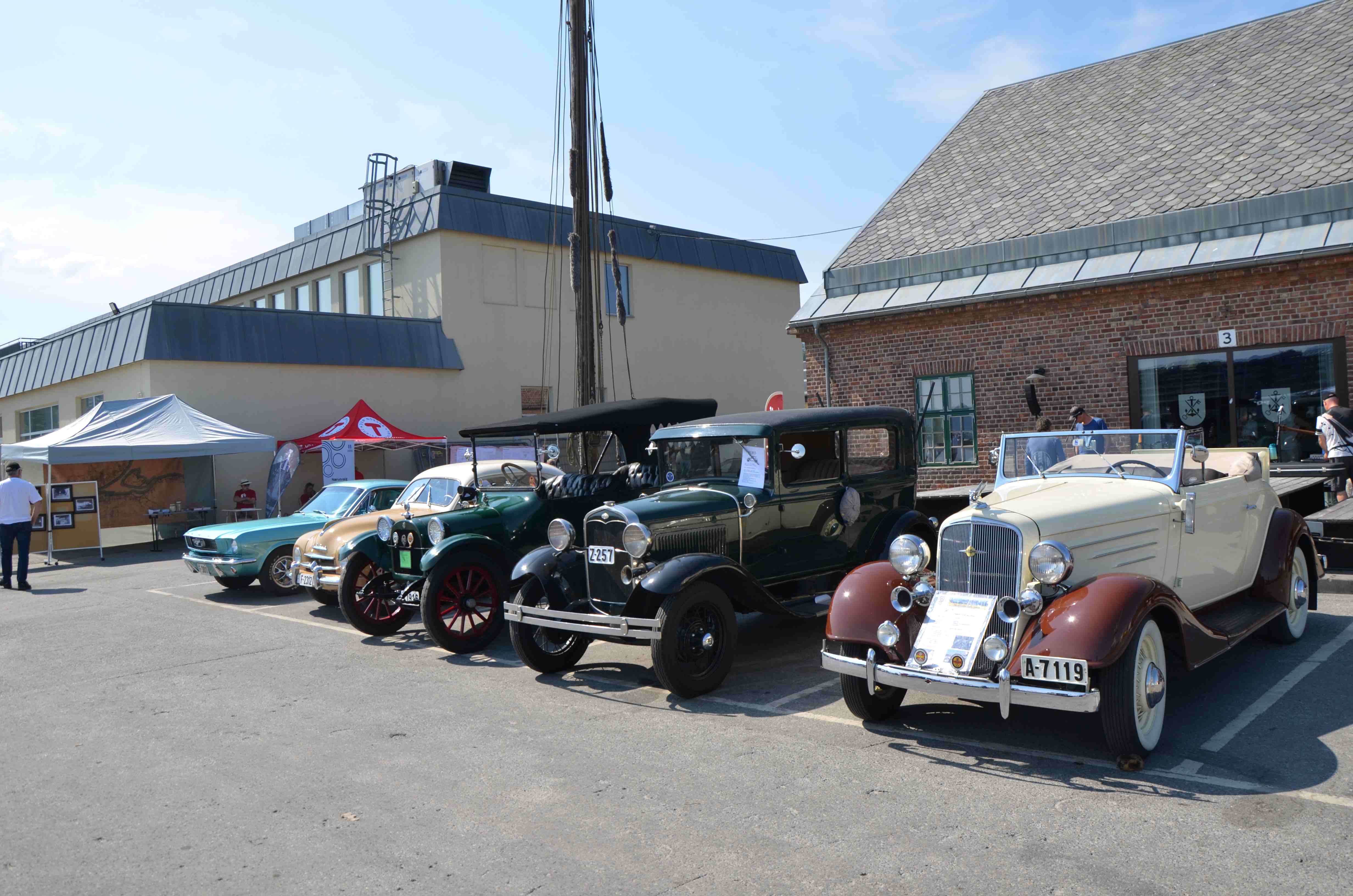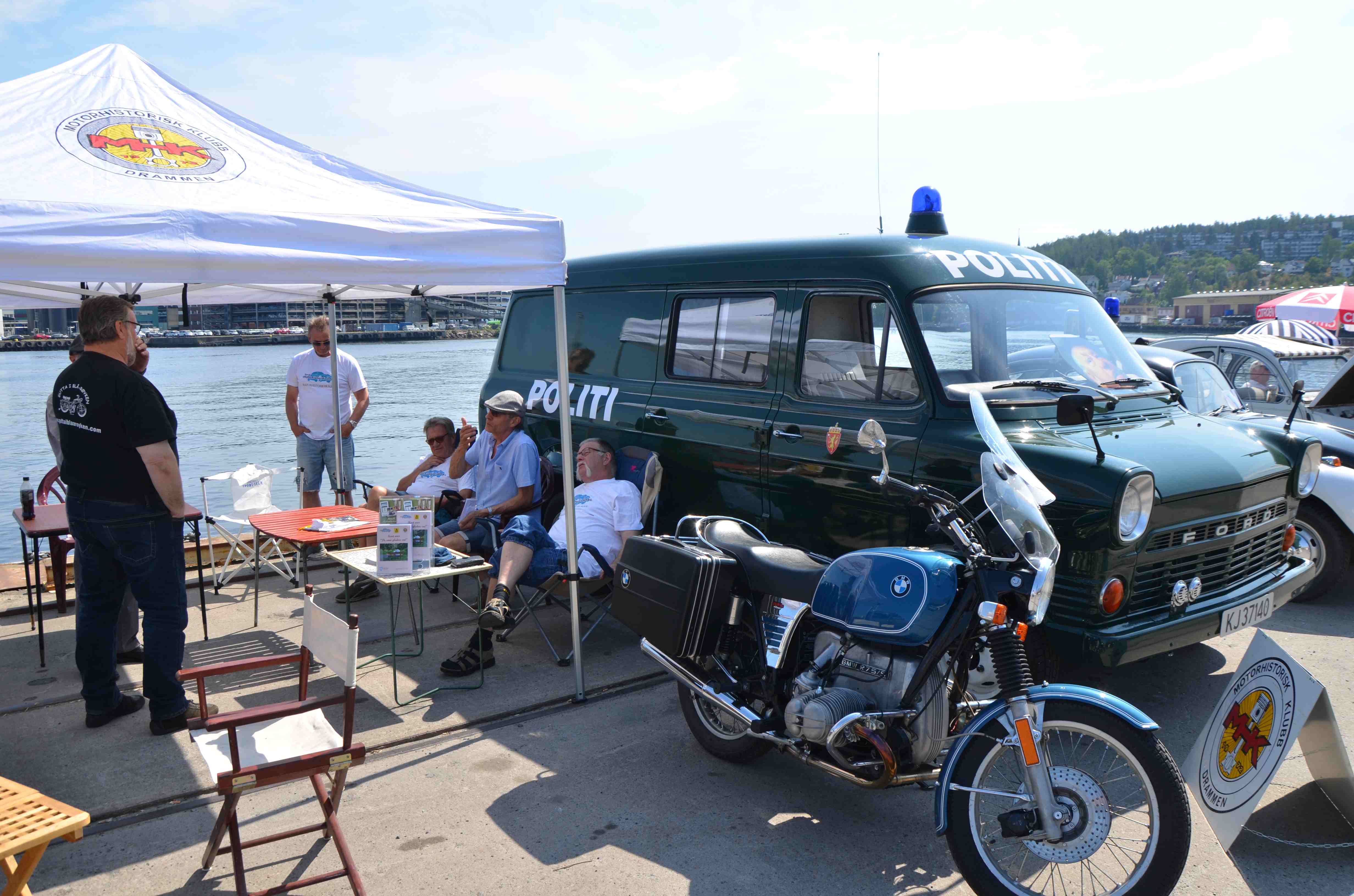 Lørdag den 17. juni var en dag da MHKD var representert på mange arenaer. Hovedaktiviteten var vel deltagelse på Gyldenløve Bryggefestival der MHKD var tilstede med ti biler og to motorsykler. Det ble en veldig varm dag som sikkert var medvirkende årsak til at det var litt begrenset besøk da jeg var innom og knipset noen bilder.