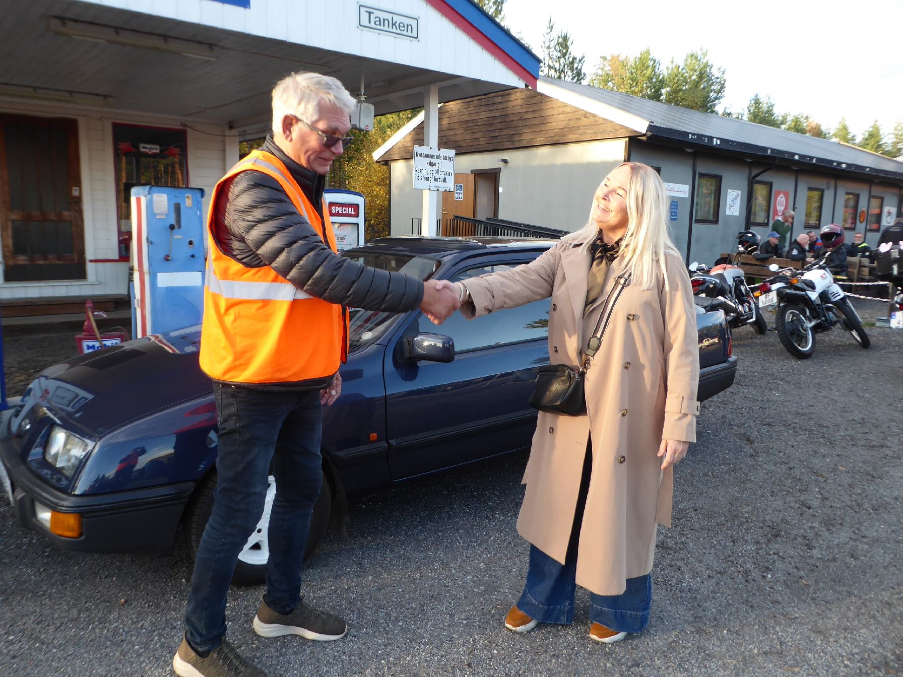 Ja, da ble Sierra'en i kveld overlevert til årets vinner av MHKDs årlige billotteri. Det var Drammens-jenta Tone W. Ødegaard, (selv om hun for tiden bor på Kongsberg) som stakk av med premien i år. Hun hadde kjøpt ett lodd, så det må vel sies å være "full klaff". Tone må sies å være arvelig belastet i og med at hun er datter av en av klubbens stiftere, Tore Ødegaard, som også har innehatt en rekke styreverv i klubben. Det er gledelig at Tone har bestemt seg for å beholde bilen, og lovet også at vi titt og ofte nok ville se henne og Sierra'en på Burud og i veteranbil-løp i framtiden. Veldig hyggelig, synes vi!