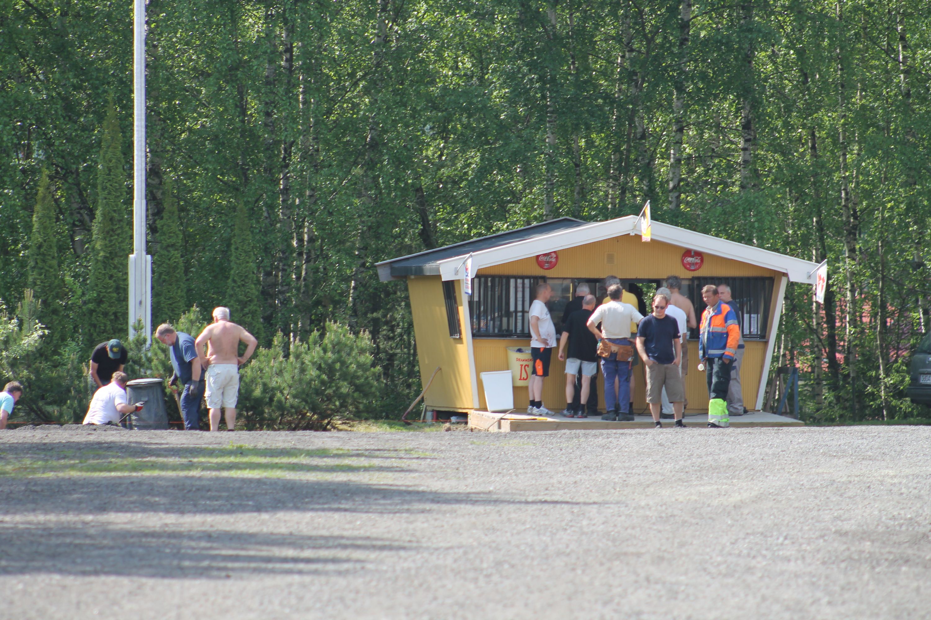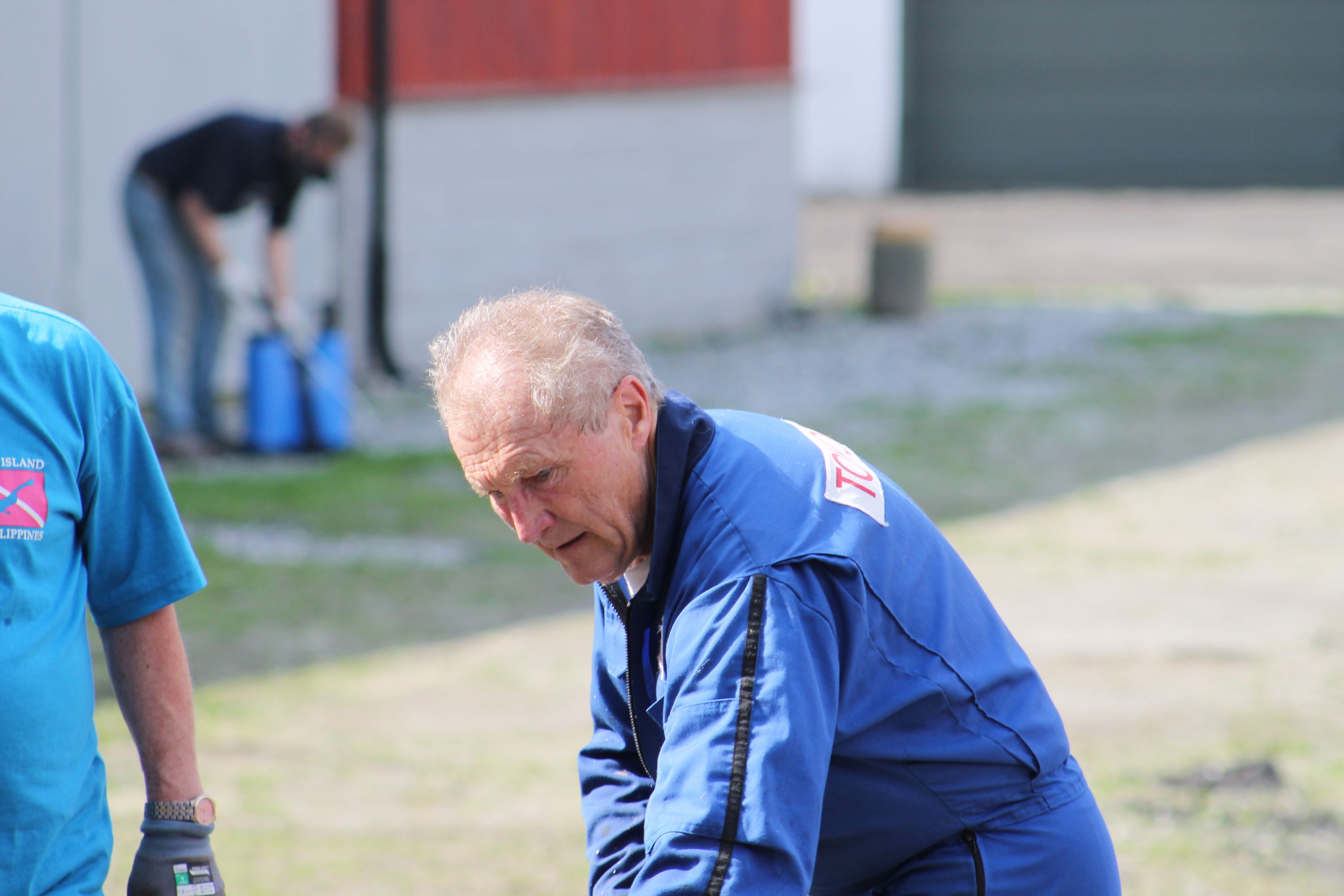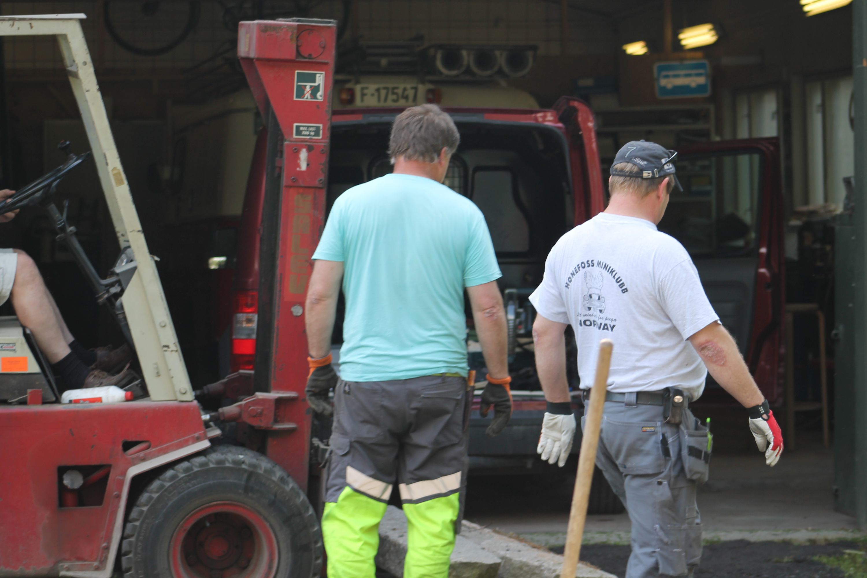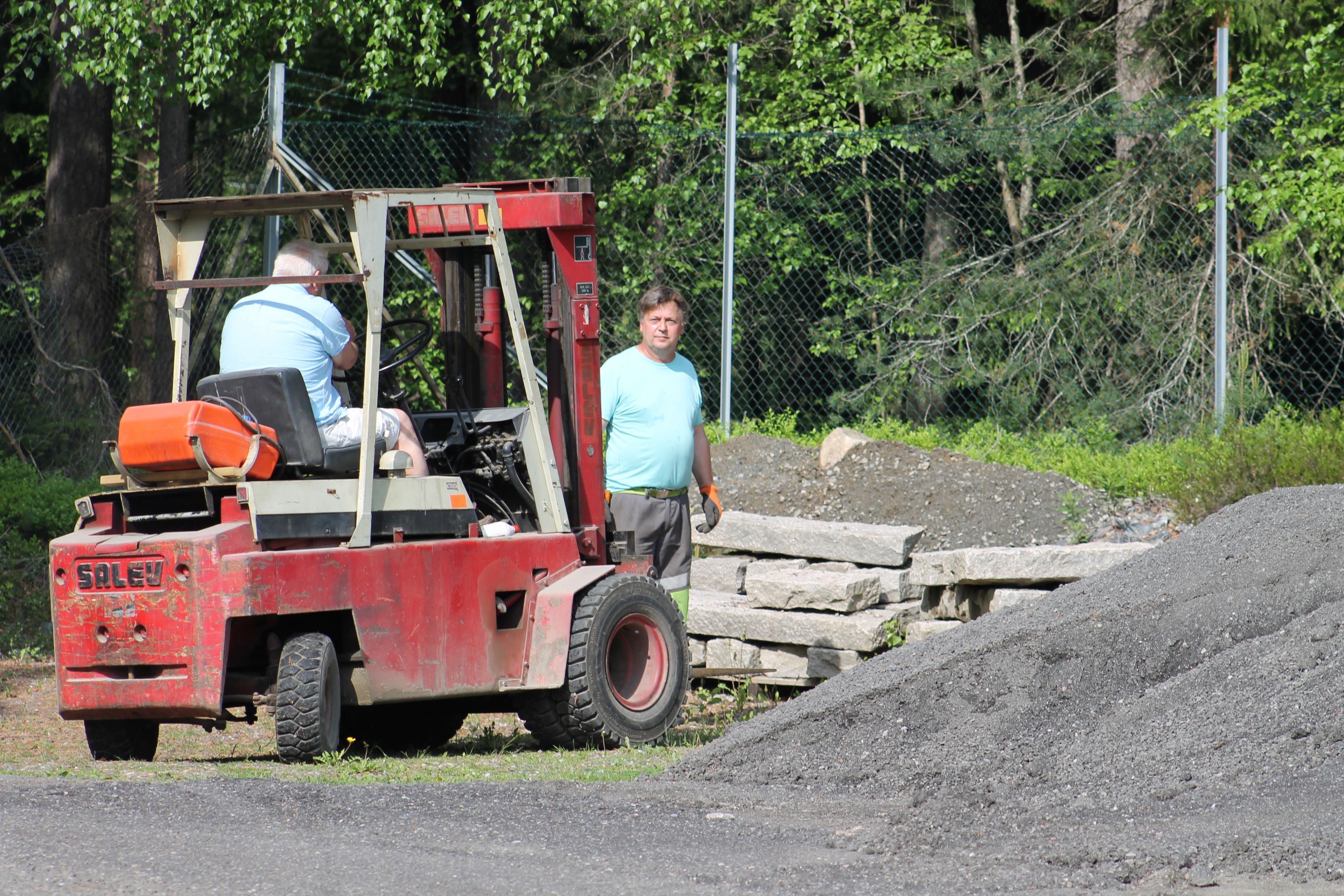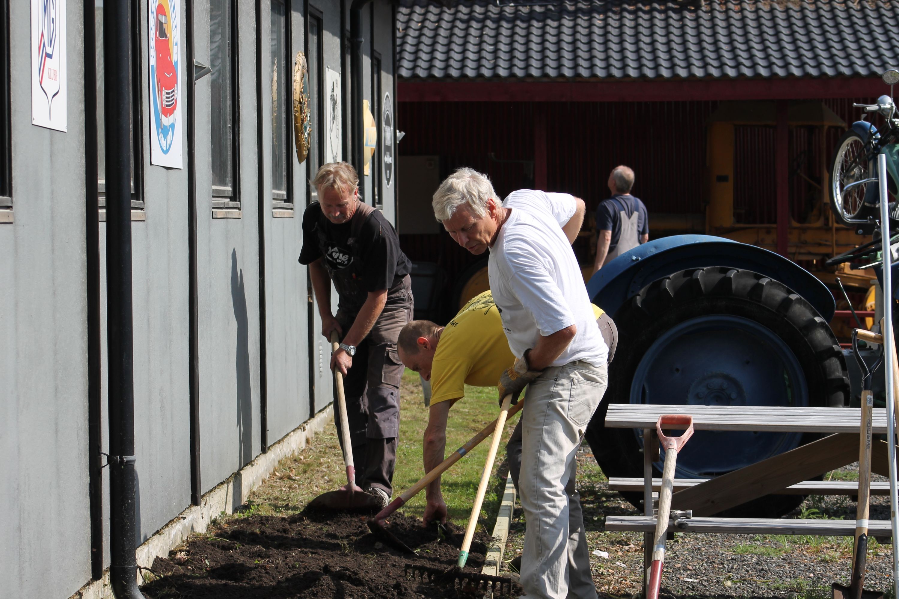 Det er vanskelig å fremheve noen, men de som bidro med det mest synbare og ikke minst tyngste arbeidet var våre tre maskinførere. Uten dere hadde dette prosjektet vært nytteløst. Hans Jørgen Jørgensen stilte med sin gravemaskin og sin lastebil, Bjørn Sønju som hadde med traktor med skjær og laster, og Trond Kristensen som førte hjullasteren vi hadde fått låne av Olve Teigen. Hans Jørgen gravde grøfter for legging av kantstein og løftet disse på plass, han senket nivået litt foran hall 3 og planerte bak samme hall. Bjørn kjørte matjord, kjørte og planerte asfaltfres. Trond la ut 270 tonn asfaltfres - resten går på andre dugnadsdag - og han flyttet på 2-3 bilvrak mm.