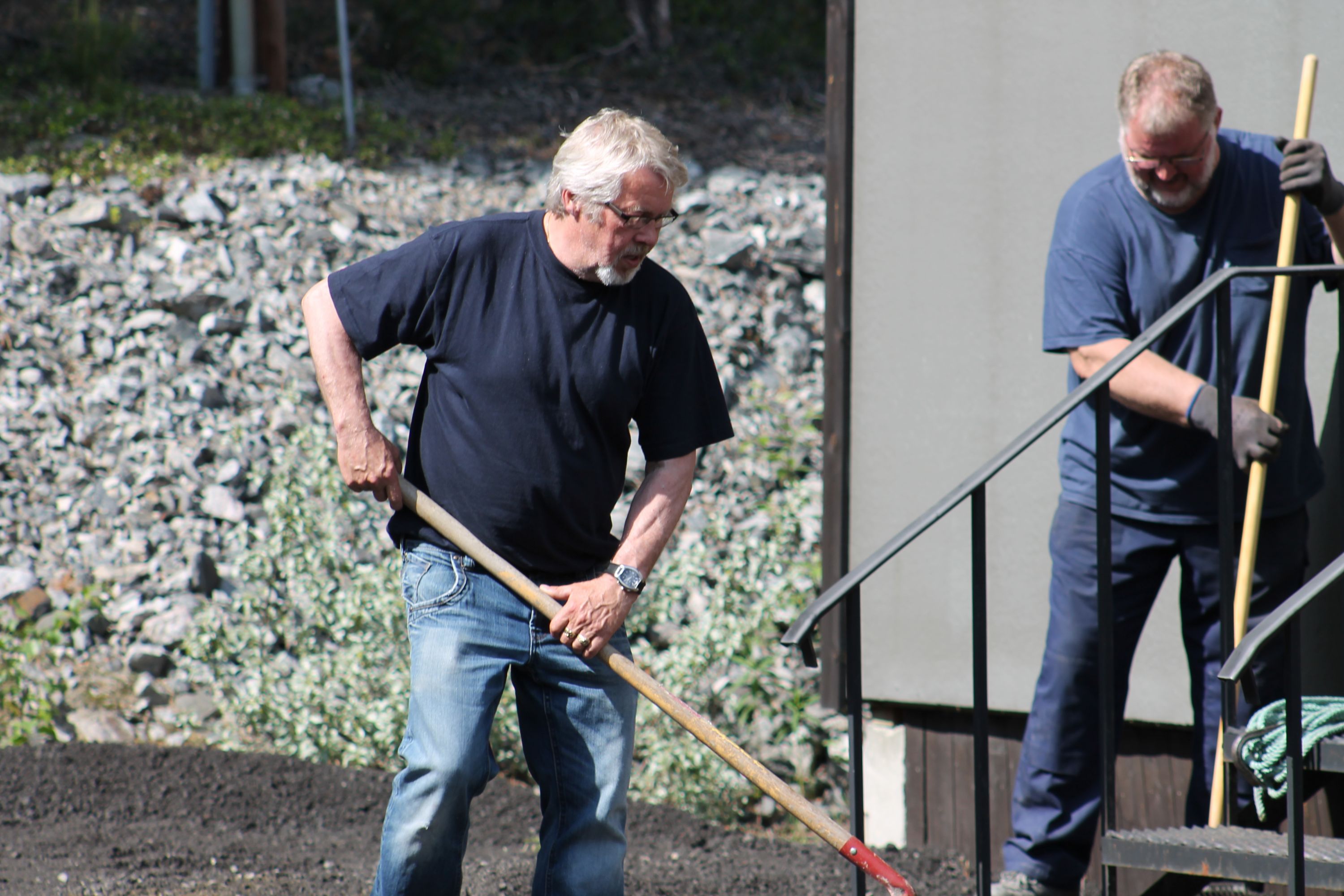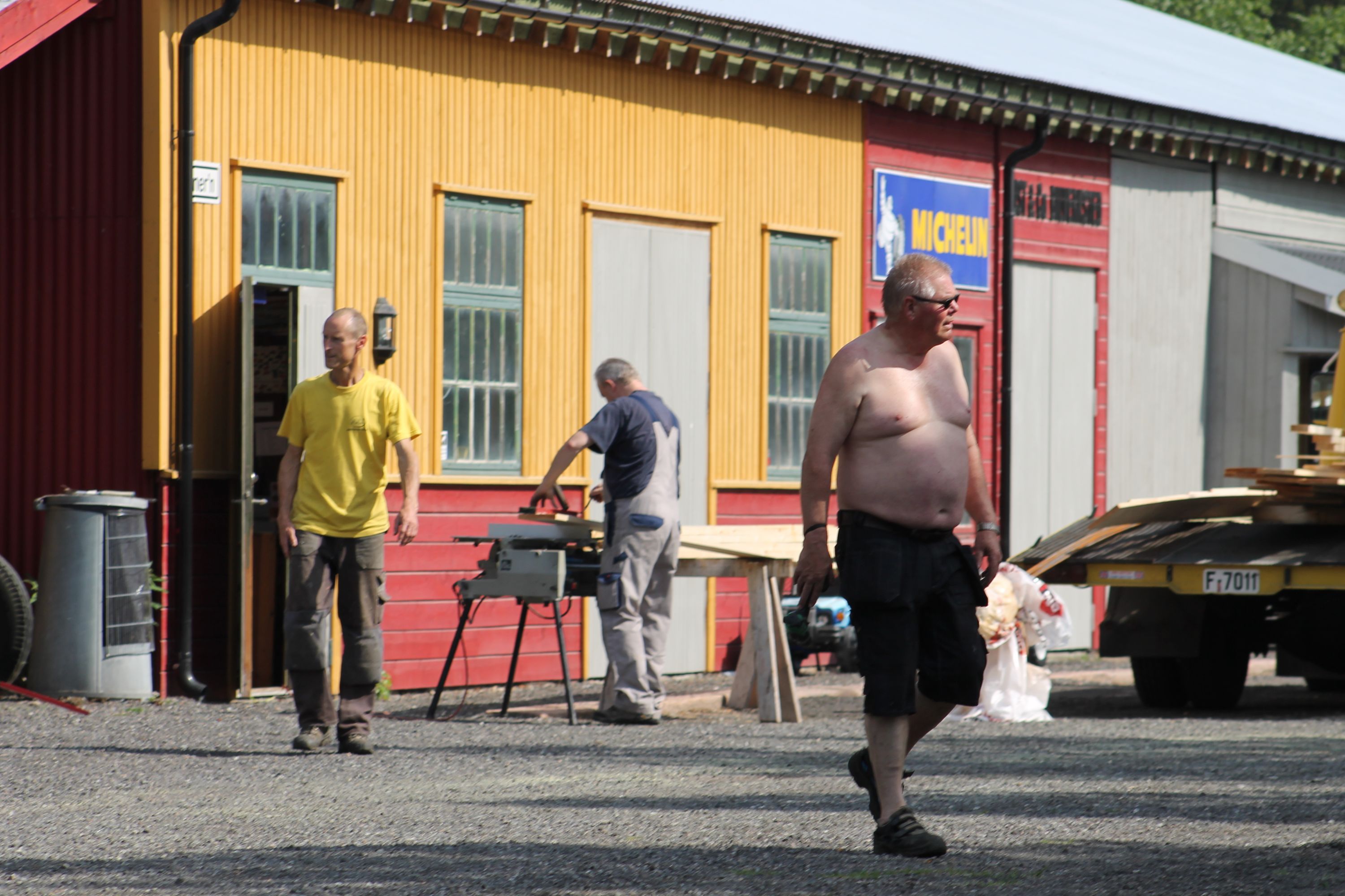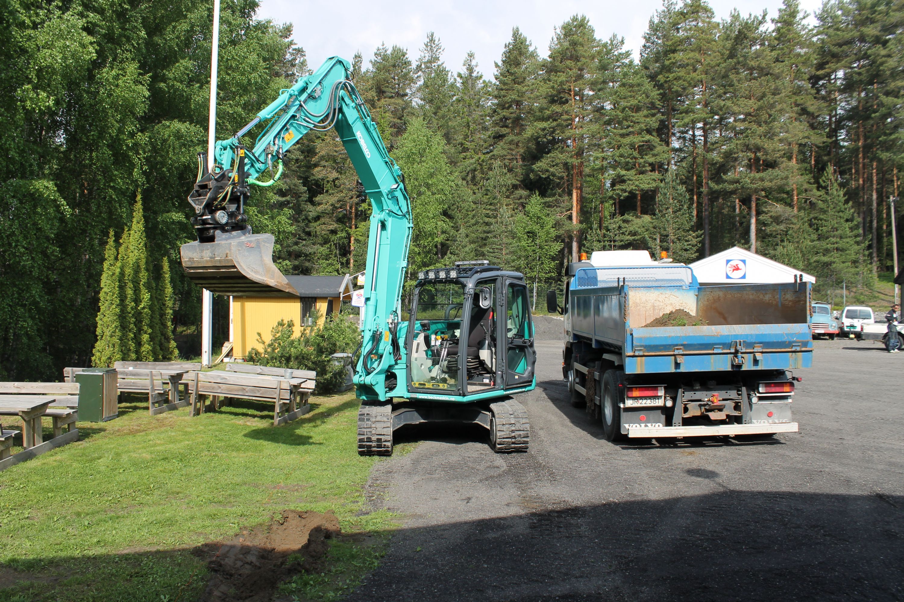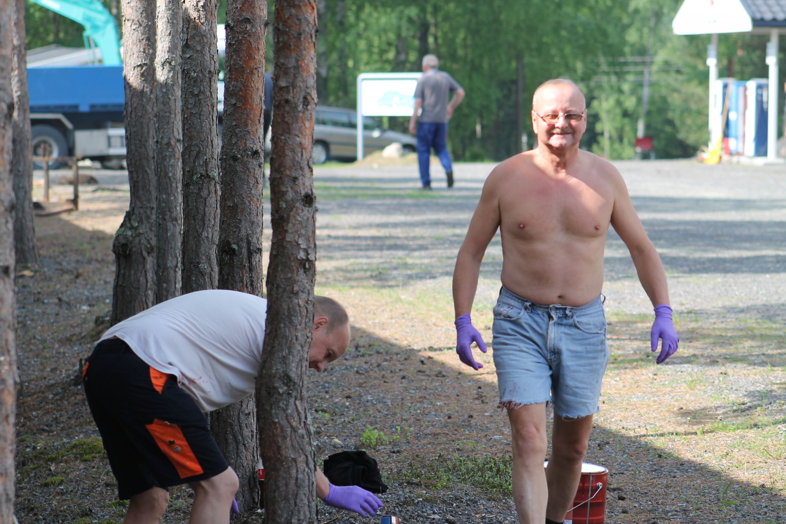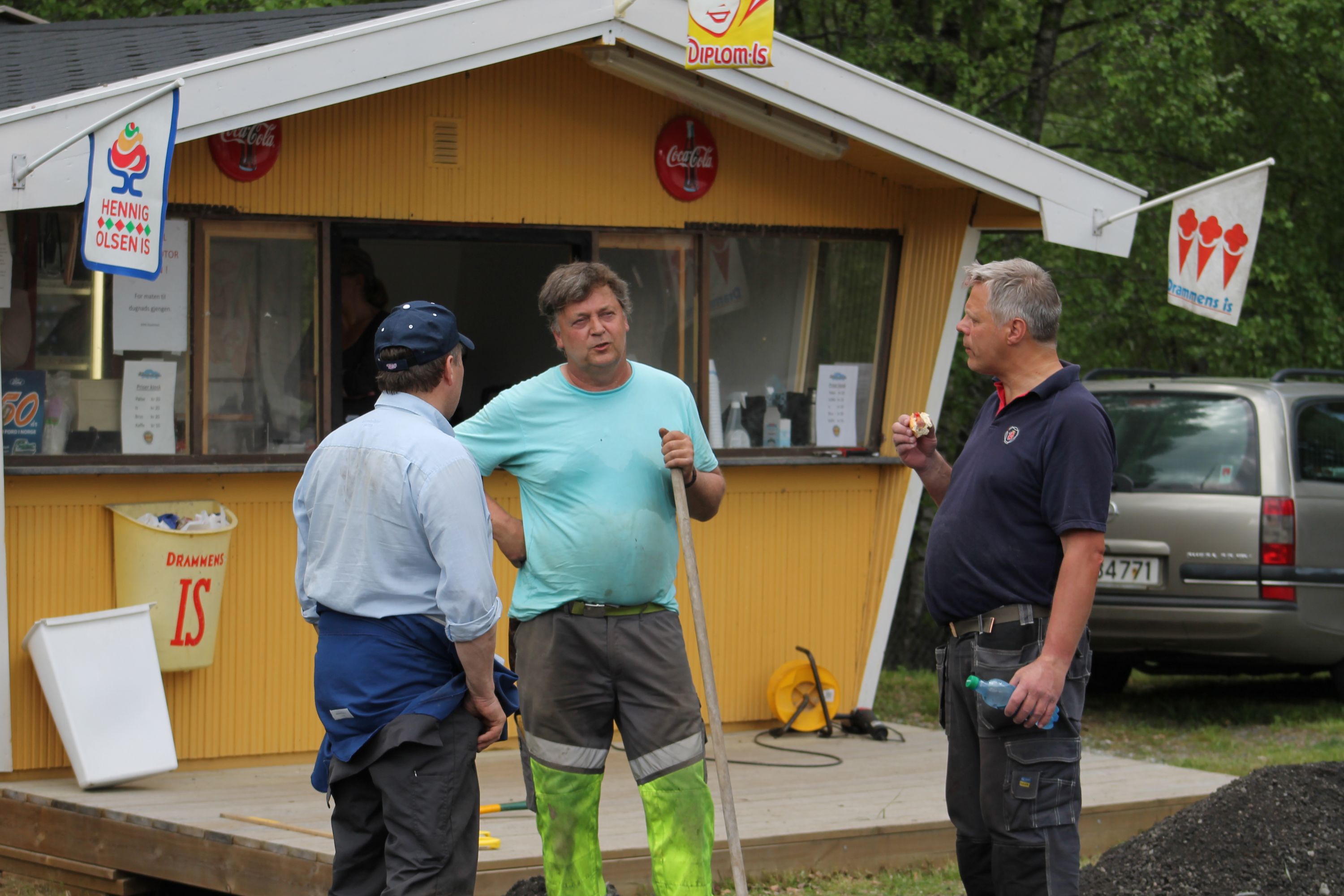 Det er vanskelig å fremheve noen, men de som bidro med det mest synbare og ikke minst tyngste arbeidet var våre tre maskinførere. Uten dere hadde dette prosjektet vært nytteløst. Hans Jørgen Jørgensen stilte med sin gravemaskin og sin lastebil, Bjørn Sønju som hadde med traktor med skjær og laster, og Trond Kristensen som førte hjullasteren vi hadde fått låne av Olve Teigen. Hans Jørgen gravde grøfter for legging av kantstein og løftet disse på plass, han senket nivået litt foran hall 3 og planerte bak samme hall. Bjørn kjørte matjord, kjørte og planerte asfaltfres. Trond la ut 270 tonn asfaltfres - resten går på andre dugnadsdag - og han flyttet på 2-3 bilvrak mm.