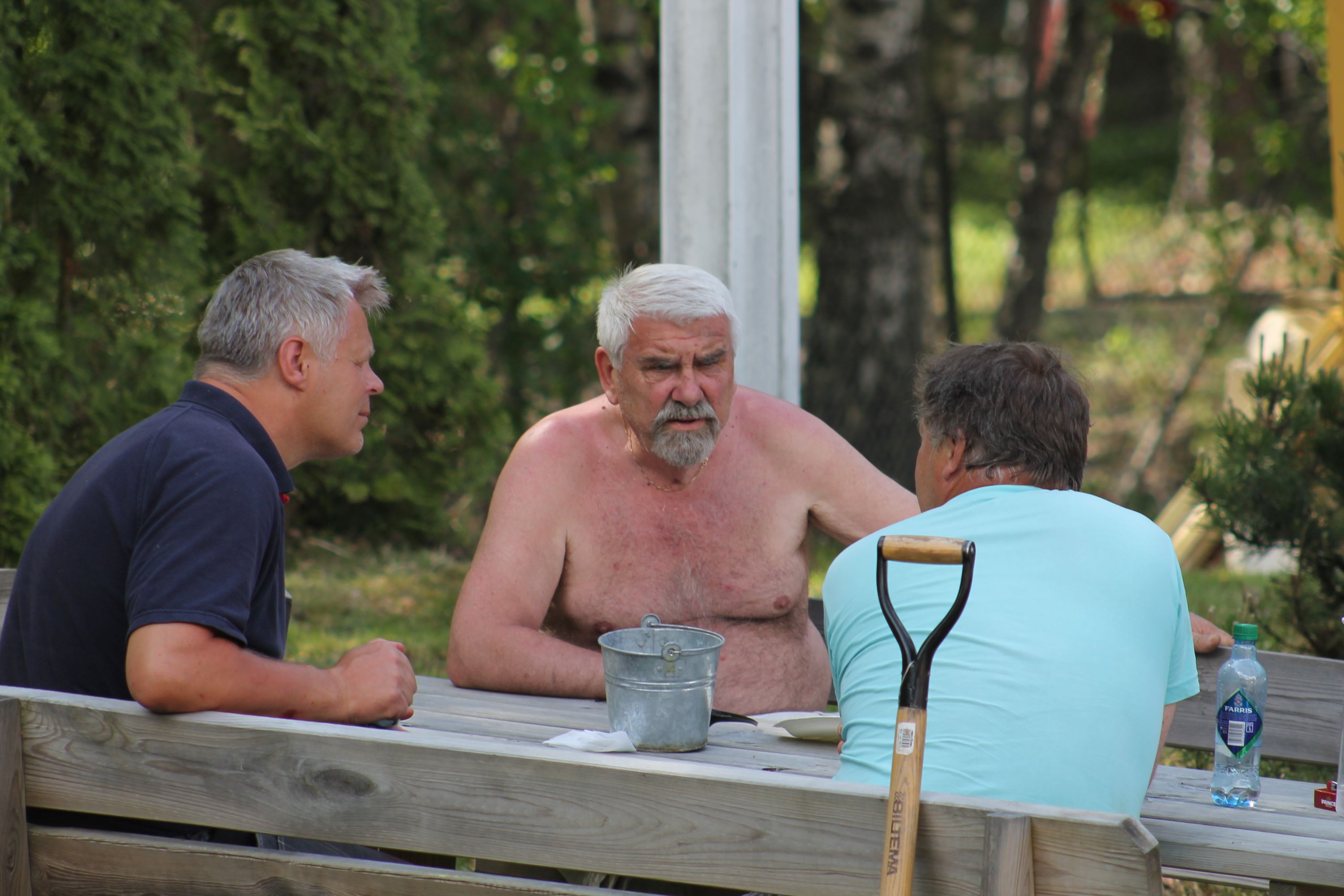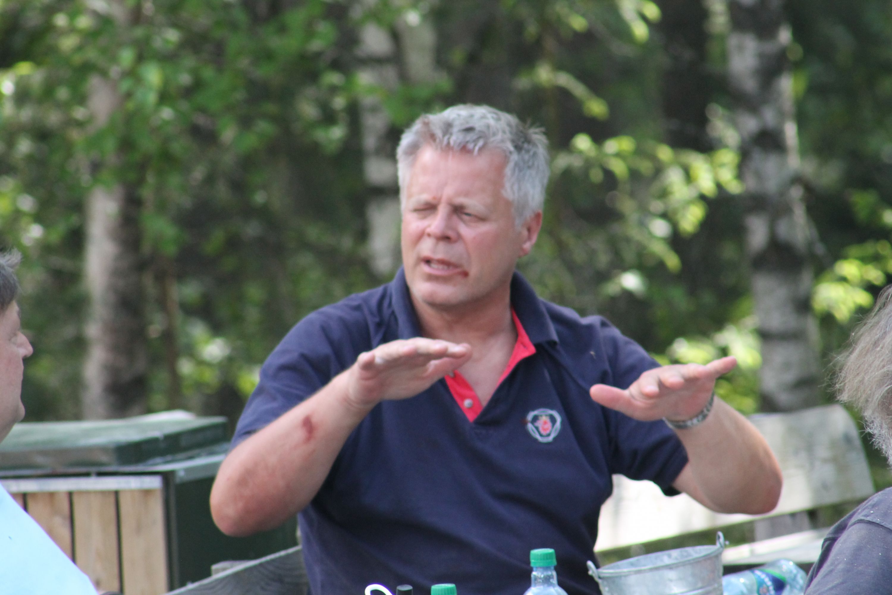 Som selvutnevnt dugnadsgeneral er det rørende å se hva som bringes for dagen av positivitet, arbeidsglede, bidragsglede og derav ekte glede over fellesskapets nytte av innsatsen. Natten til lørdag manifesterte seg med lyn, torden og styrtregn. Det ble så som så med søvn pga nervøsistet over hva lørdagen skulle framsyne av vær. Men lørdagen opprant med høy temperatur og varmedis som lå tjukk over Drammens-dalen. Ved ankomst Burud kl 0900 var det allerede en del folk på plass - og det strømmet på. Det er vanskelig å telle sau fordi de ikke står stille. Slik er det også med dugnadsarbeidere, men vi var et sted mellom 45 og 50 stykker.