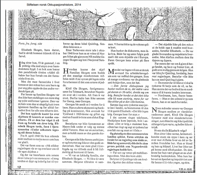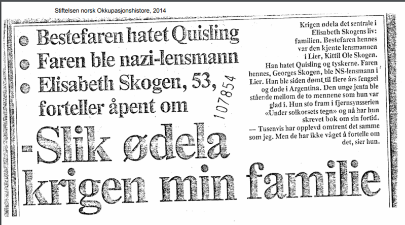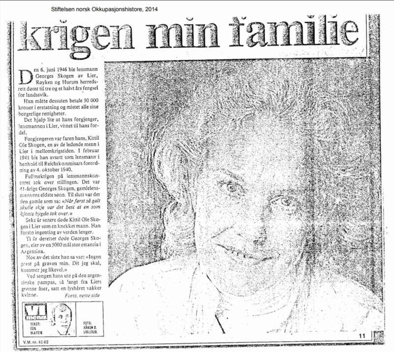Denne saken begynte med at red. fant bilde av en lokal bil på Facebook. Vi har fått lov av han som la det ut å få bruke det her på hjemmesiden vår. Når man leter litt finner man ofte interessante opplysninger. Denne engelske Ford'en fra sent 30-tallet tilhørte etter all sannsynlighet lensmannsbetjent Georges Skogen i Lier. Det er hans datter Elisabeth som står i forgrunnen. Georges var betjent på kontoret der hans far Kittil var lensmann. I 1941 ble lensmannen avsatt og sønnen som hadde valgt feil side overtok embetet. Dette skapte splittelse i familien. Datteren Elisabeth skrev en bok om sitt liv, og i den forbindlese ble hun intervjuet i magasinet Vi Menn. Nedenforstående er hentet fra Stiftelsen Norsk Okkupasjonshistorie. Hvor bilen tok veien? Kanskje noen vet?