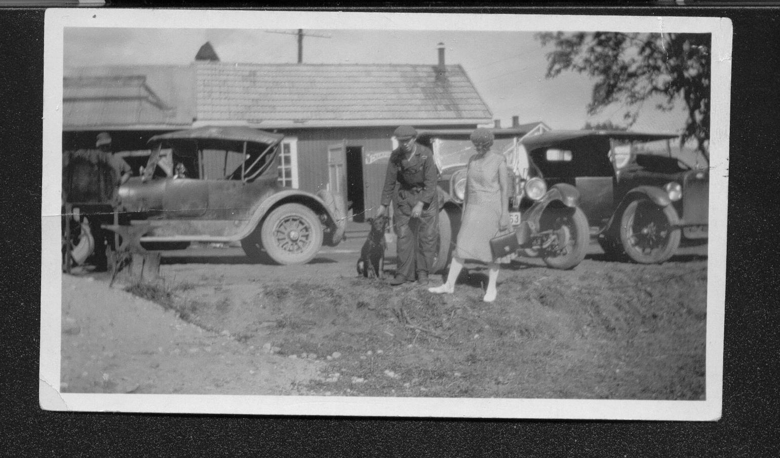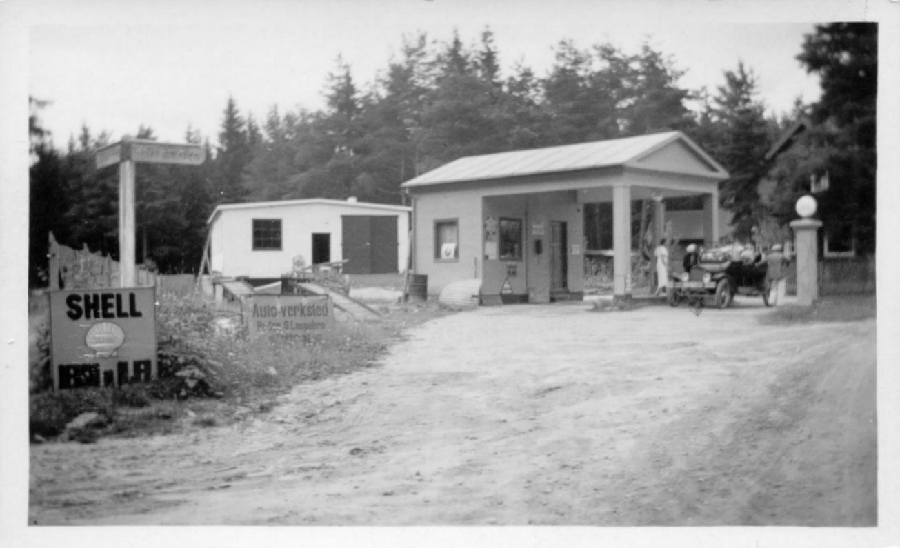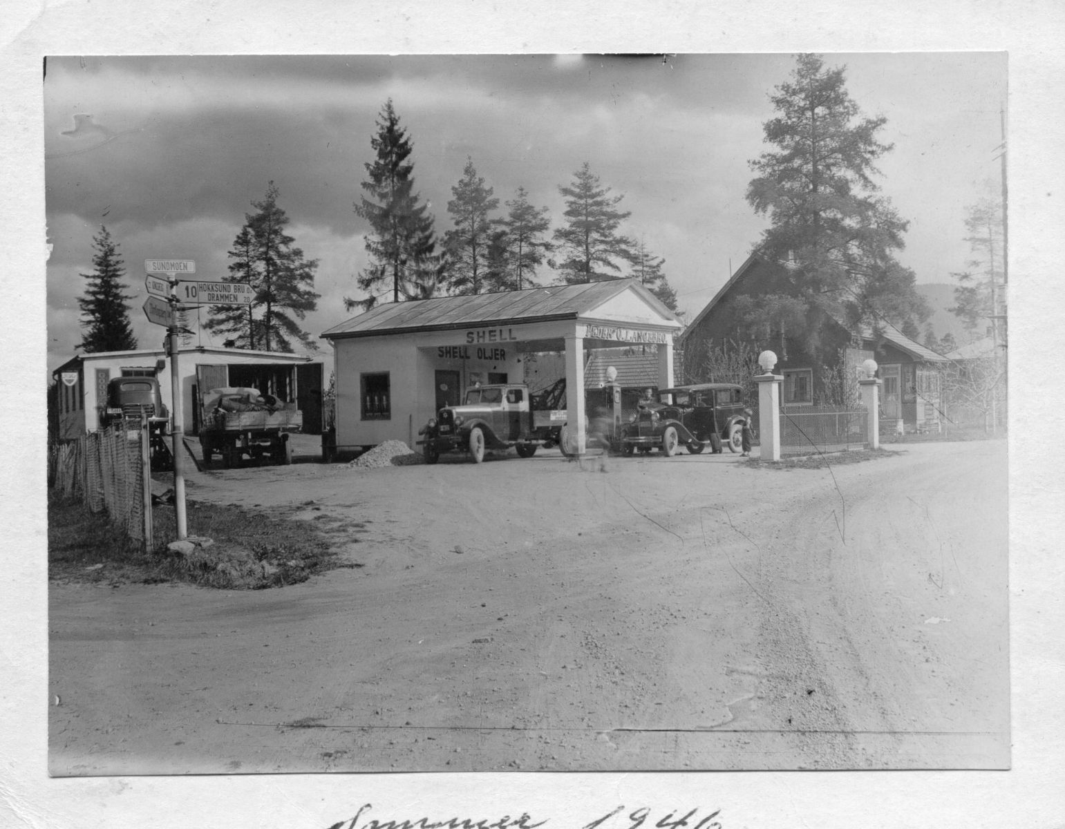 Dette bildet fra 1946 er jo et fantastisk vitnesbyrd fra tiden rett etter krigen. En A-Ford står ved pumpene, kan noen fortelle hva de øvrige bilene er?