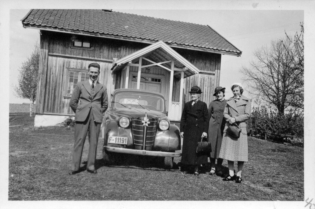 Ivars onkel kjøpte seg ny Opel Kadett i 1939. Familiens damer er tydeligvis invitert på kjøretur av den stolte bileier. Ble kortvarig moro. Tyskerne tok bilen i 1940 og den kom aldri til rette igjen.