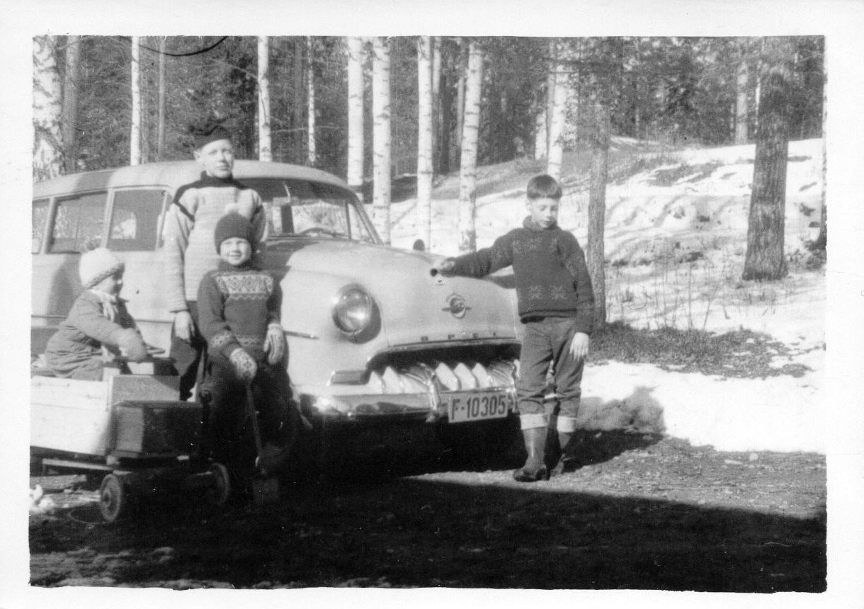 Ivar og hans brødre med 1954 Opel fotografert ca 1962.