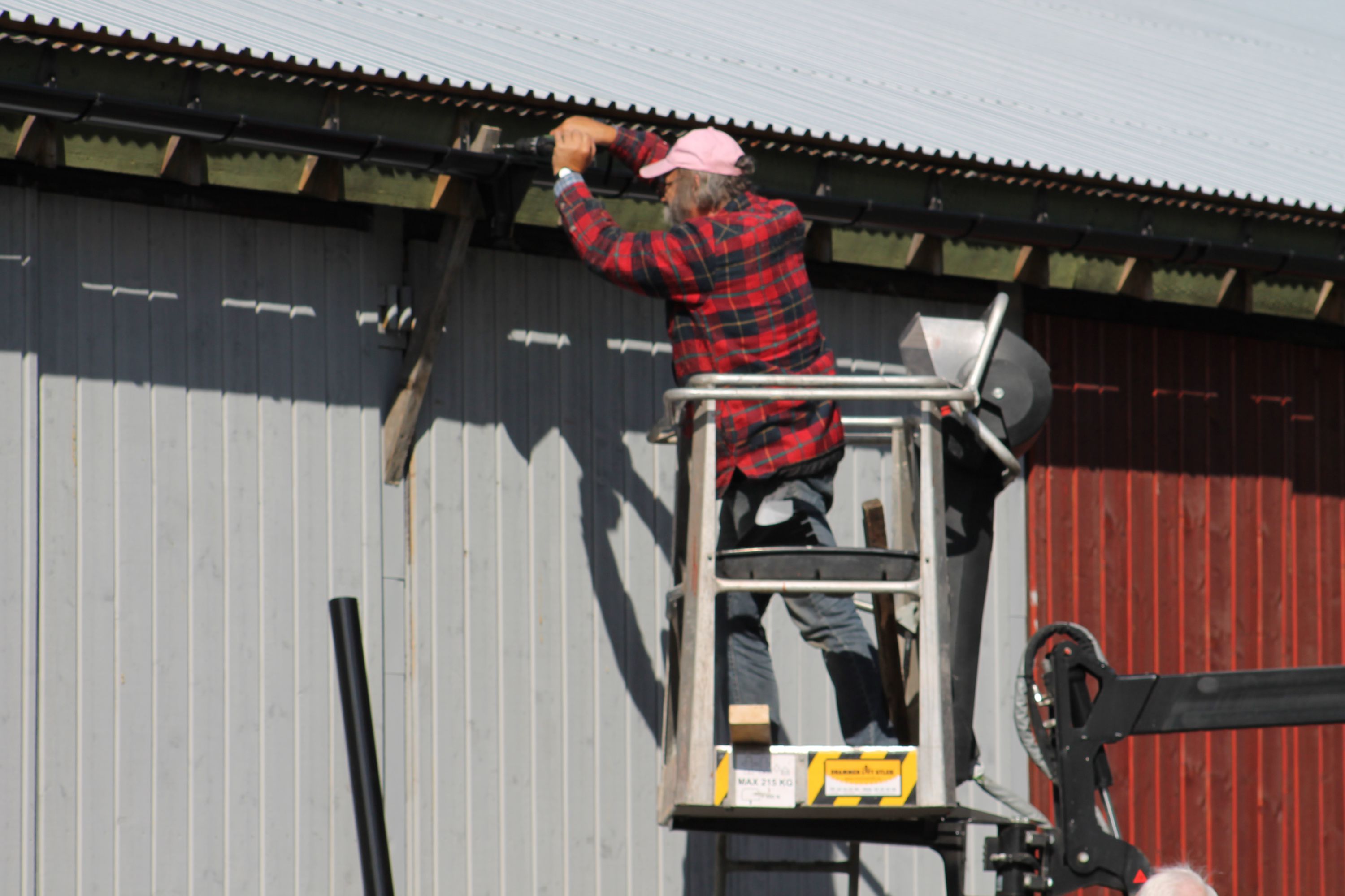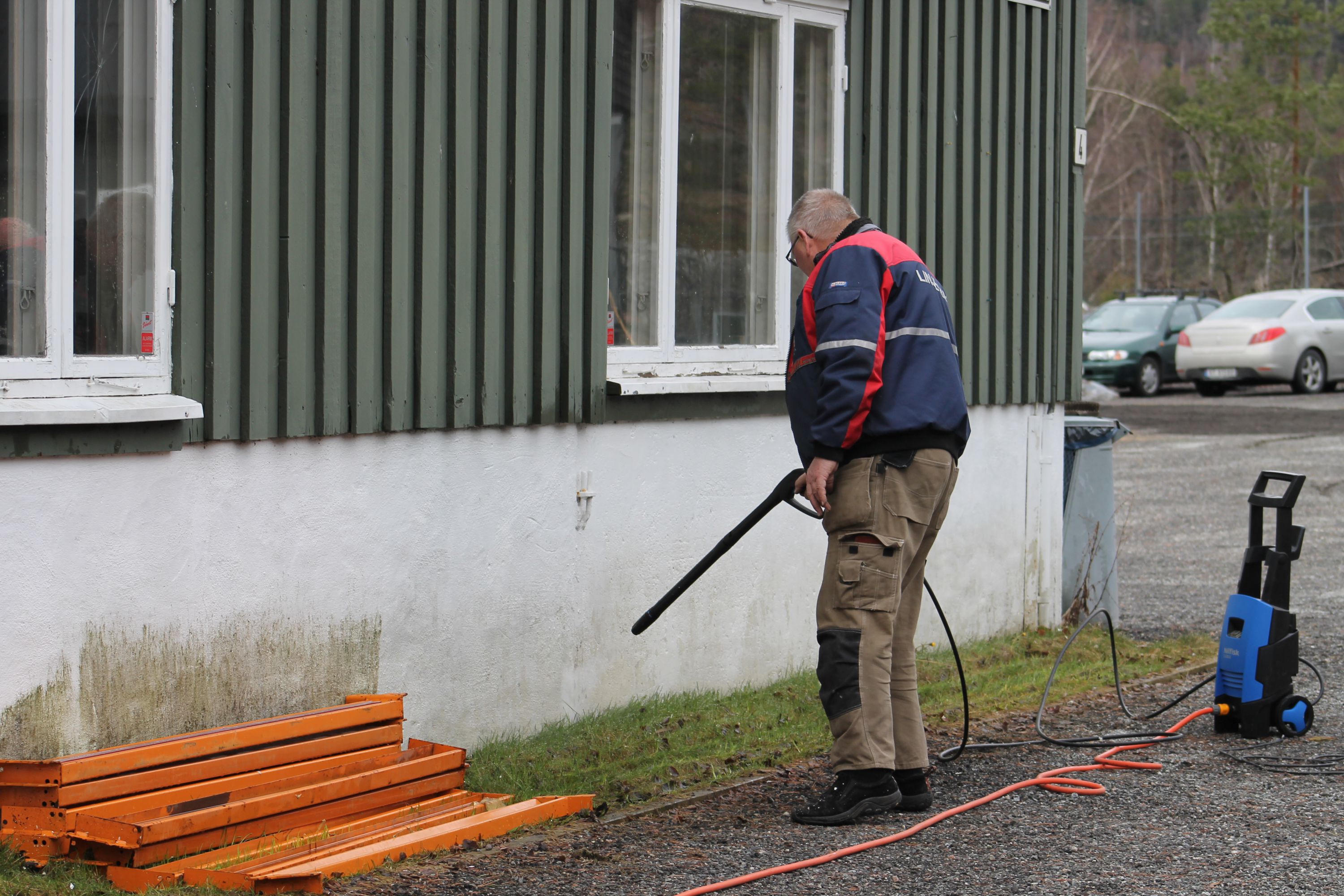 Vi fikk gjort ganske mye, men noe gjenstår.Det ble lagt grus på nødvendige plasser, montering av takrenne-nedløp er godt igang, det ble raket og ryddet i grønt-arealene. Mye ble malt, noe ble vasket og påbyggingen av carporten er langt over halvveis. Flaggstanga ble tatt ned for maling, men viste seg ganske råtten i toppen.
