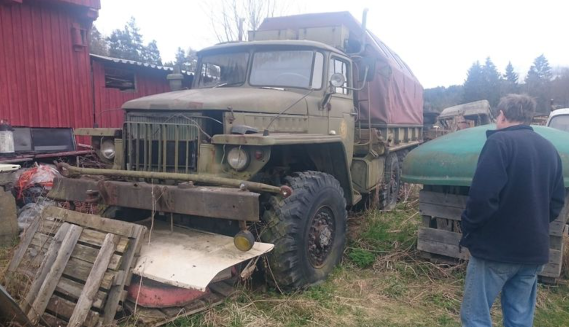Men der var mye annet rart at beskue. Lite er tøffere enn russiske Ural militære lastebiler. Den ene er komplett utstyrt verkstedvogn med dreiebenk, produksjonsanlegg for acetylen, aggregater og alt tenkelig og utenkelig utstyr. Ubrukt! Bilen er til salgs til en som vil ta vare på den. V8 bensin som bruker ca 10 liter på mila. Litt spesielt var det med det lille skapet på stigtrinnet. Det inneholdt ei flaske med gift beregnet på soldater som ikke hadde noen fluktmulighet. Tøft å være soldat i det gamle DDR ja.