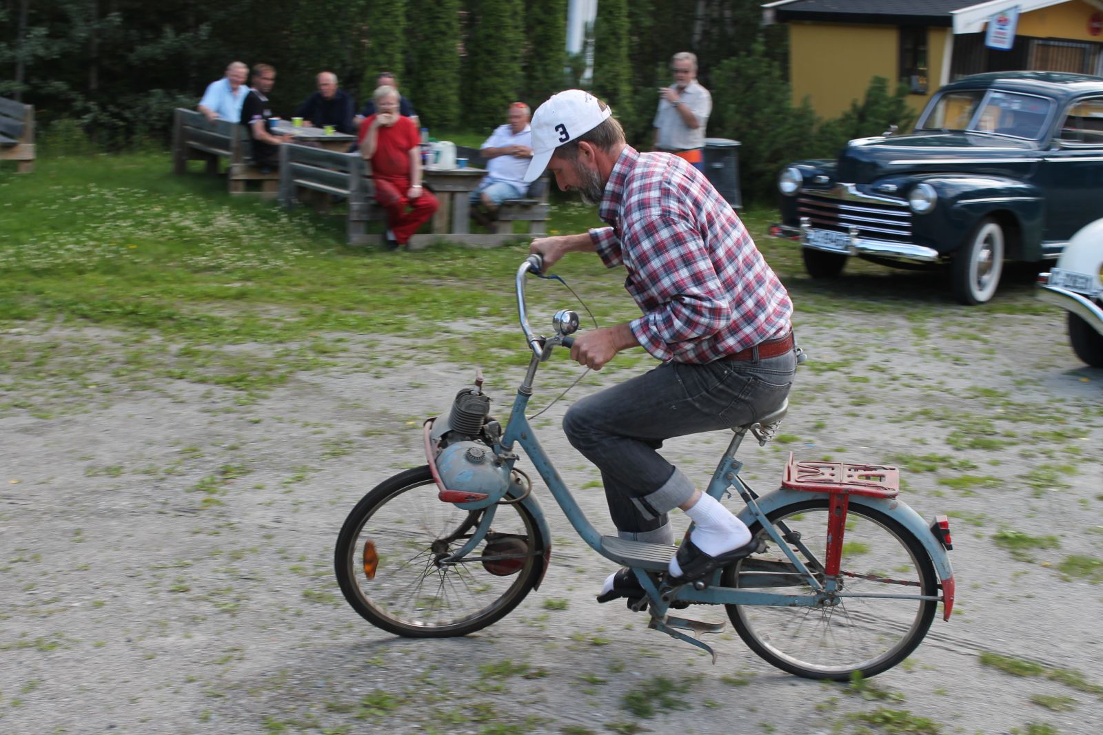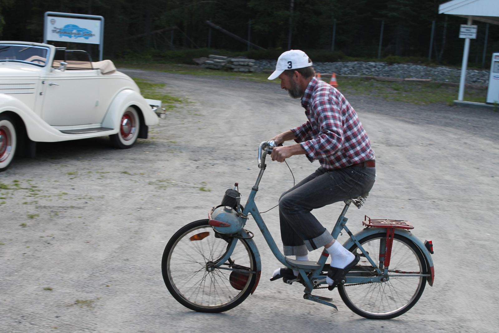 Men så er det noen som kjenner eimen av diesel! Visst tjusan er tanken fylt opp med diesel. Skal være en jævel til å tråkke for å få denne vesle tassen til å tenne på diesel ja. Fyringsolja ble erstattet med fersk bensin og førsteklasses totaktsolje, og jammen startet vidunderet. Kjøretur med sykkelen loddes ut til jul.