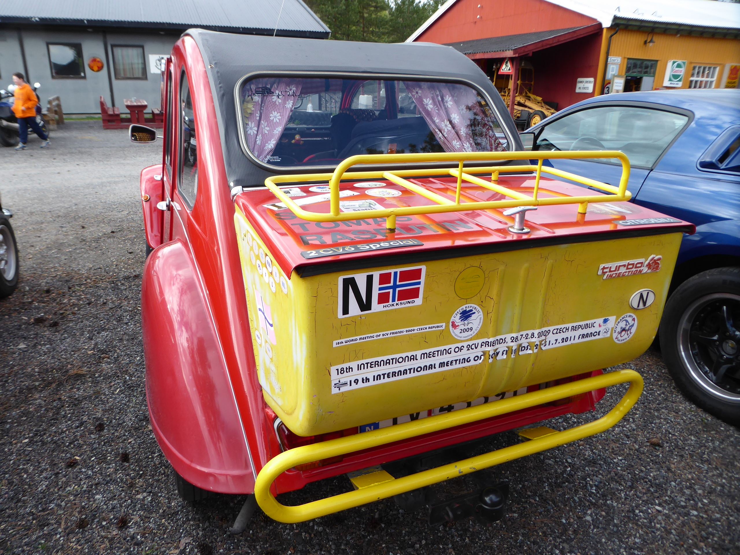 Bilen er en Citroën 2CV varebil fra 1964. Billen eies av Endre Støa fra Hokksund. Endre og kona Elin må vel kunne kalles ekte 2CV entusiaster. De har ikke mindre enn 9 (ni) 2CV'er fra årsmodell1958 til 1987 i sitt eie!! Varebilen kjøpte Endre i 2005. Da var bilen kamuflaslemalt i "Sahara-look". Endre har restaurert og bygd om bilen til nåværende stand gjennom lakkering, bytte av seter ++, og ikke minst gjort om varerommet på 2CV'en til "campingbil" med sengeplass, egenkomponert opplegg for 220Volt for å drive komressorkjøleboks med mer. Med denne bilen har kona Elin deltatt på verdenstreffet for 2CV'er i Sveits. Bilen har nå rundet 250.000 km med motorbytte kun én gang. 2CV-folket var forøvrig godt representert på kveldens Burud-onsdag. Flere bilder av Endre's varebil, samt mangfoldet av de som besøkte oss på åpningskvelden , kan du se i galleriet nedenfor.