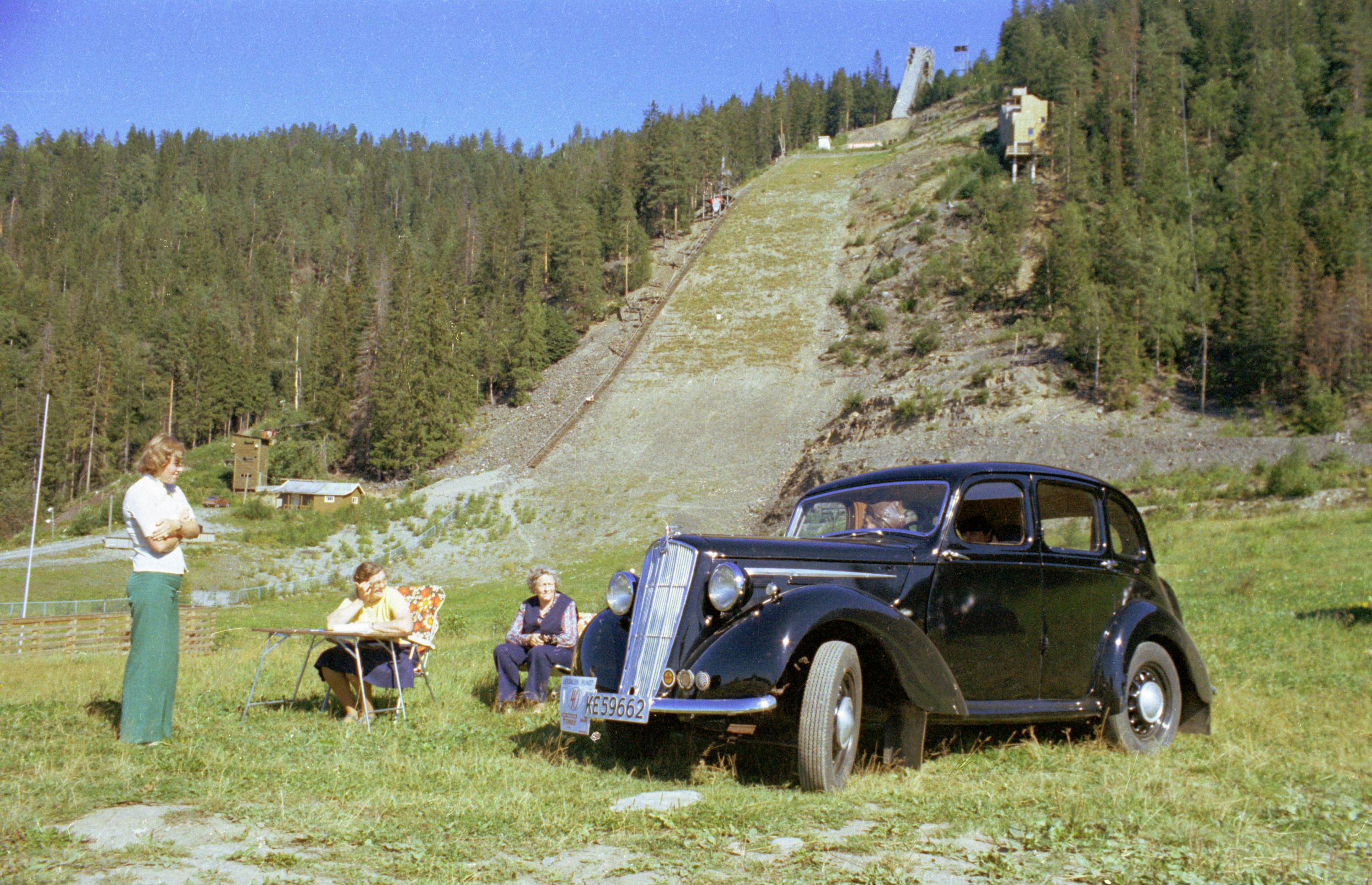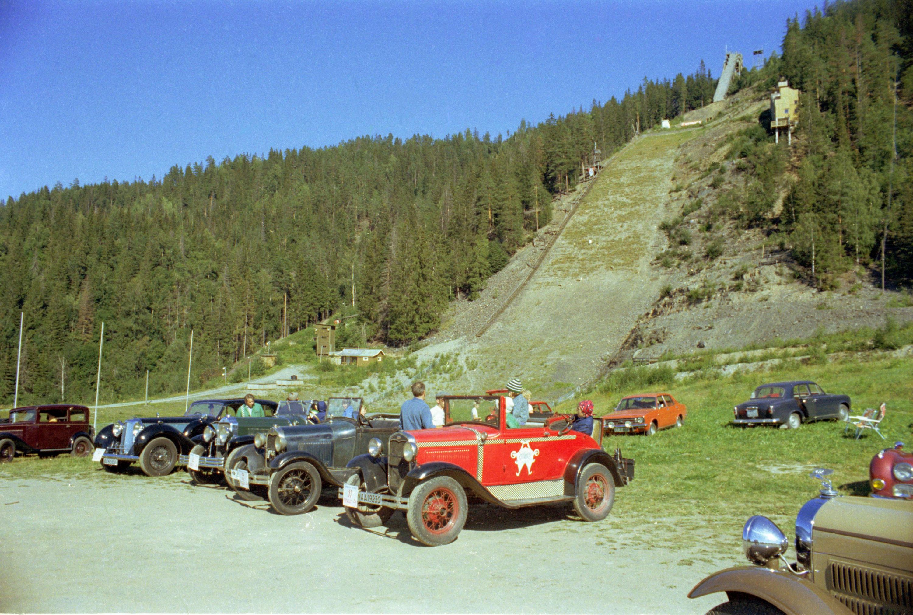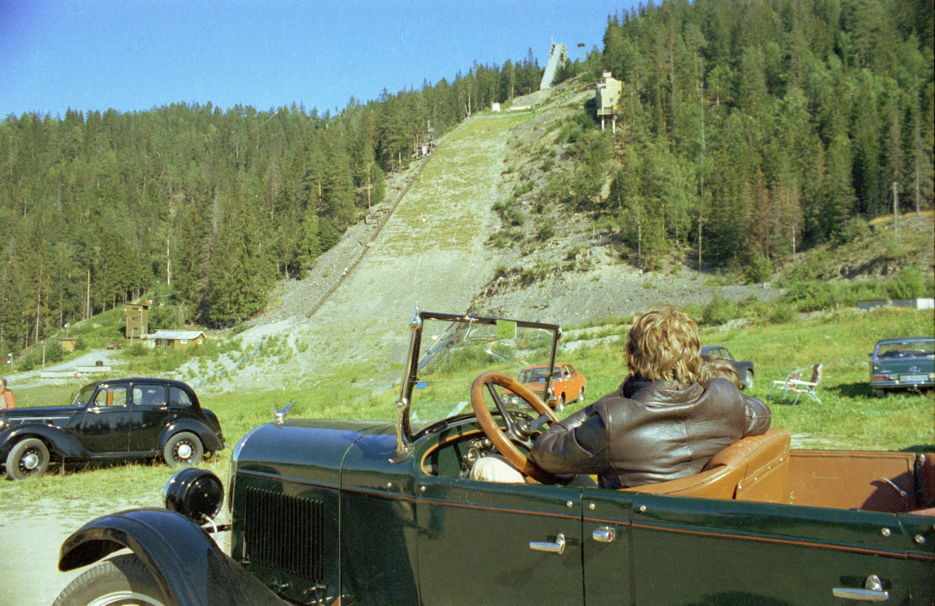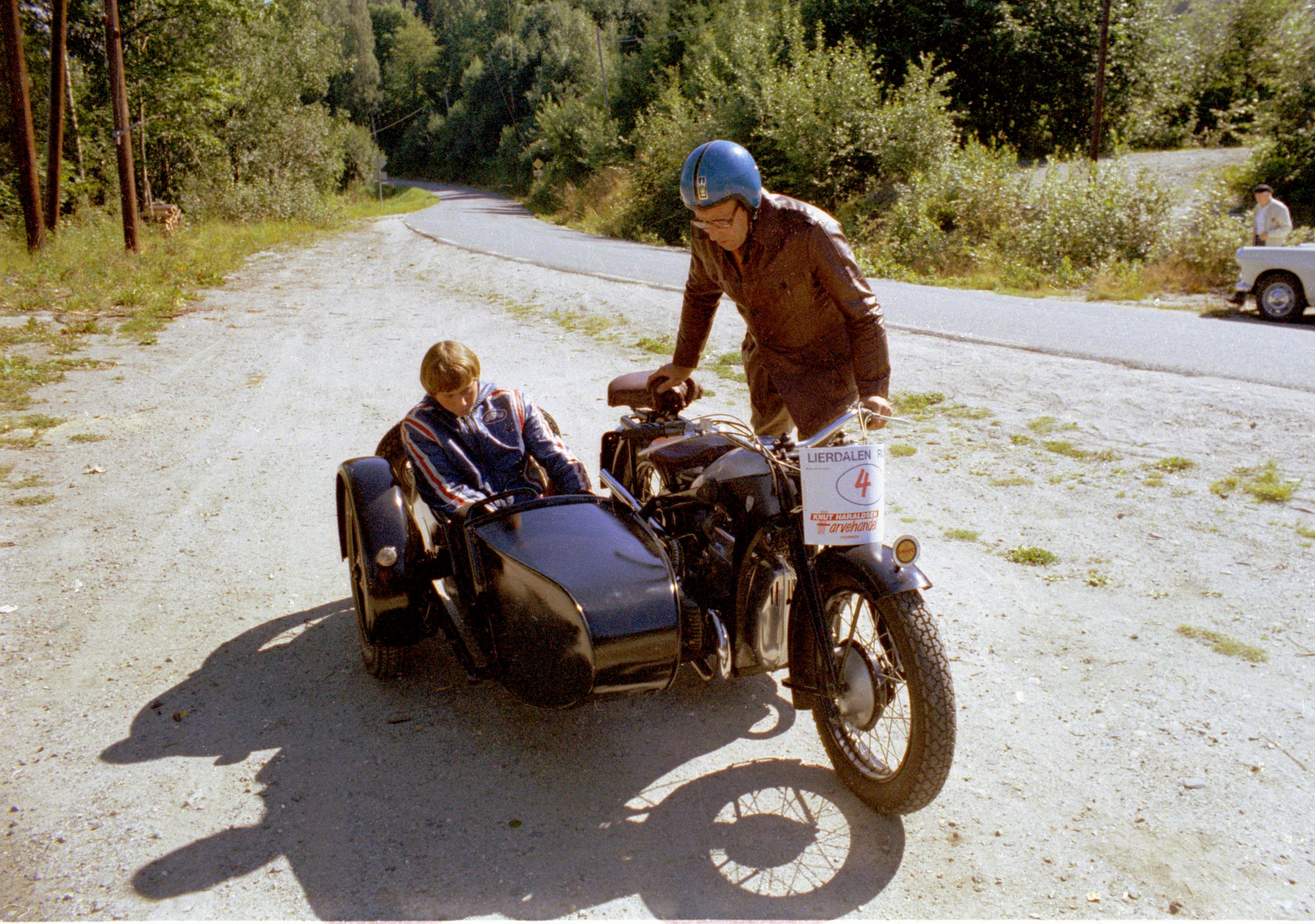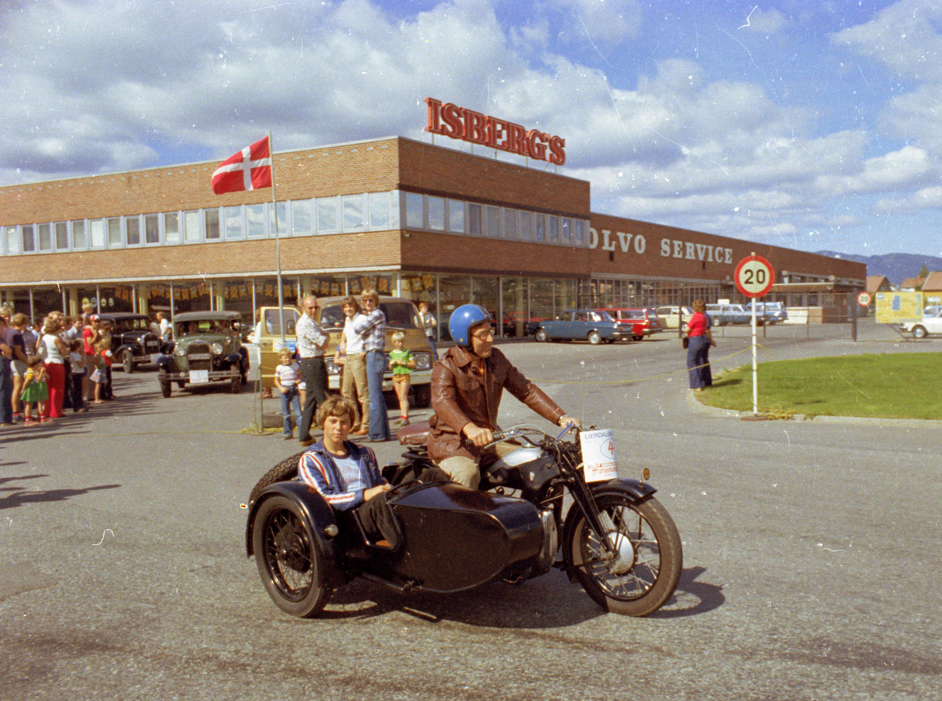 Vi viser igjen bilder fra Øivind Langelands skattkammer. Denne gang Lierdalen rundt 1978 med deltagelse fra vår vennskapsklubb Nordjysk Vintage Motor Klub. Legg også merke til Gunnolf Larsen på motorsykkel. Med hjelm. I sidevogna sitter sønnen Raymond uten hjelm........ Tidene og ting forandrer seg. Ingen reagerte tilsynelatende på dette. Idag hadde onkel polti kommet som en rakett med Vegtrafikklovens §3 i hånd og beslaglagt såvel førerkort som kjønnsorganer. Og forsynt seg uten blygsel fra synderens lønnskonto.
