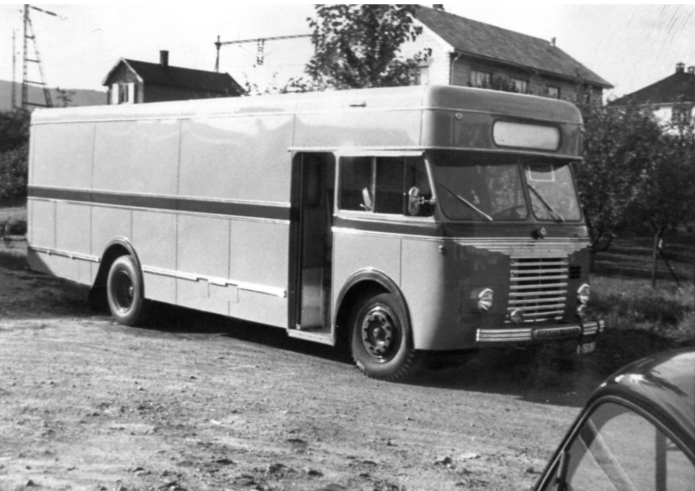 Ting kan tyde på at bussen ikke har tilhørt Filmavisen som en artikkel i GD forteller. Etter opplysninger fra et medlem i Iversen-familien er det trolig at den ble bygd til Frogner Transportbyrå i 1956.