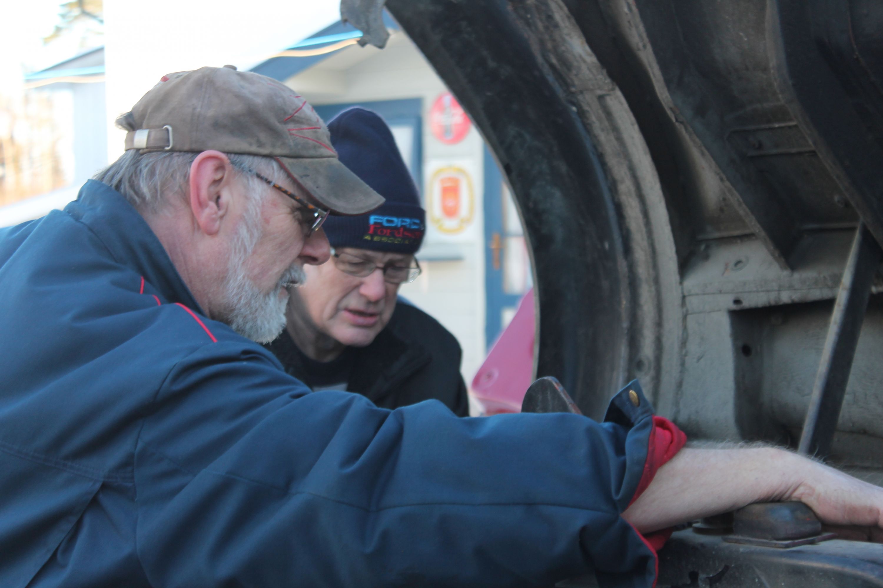 Det er moro å reise på besøk når det er noe spennende at beskue. To utgaver av Lars som studerer konstruksjoner og tilstander mens redaktøren er lydhør læregutt. Hagavold'en kjenner jo disse bilene fra sin tid som lastebilmekaniker på Drammen Motorkompani og Dramco, og det er ingen tvil om at kunnskapen har klort seg godt fast i hjernebarken på fyren. Lars Petter har hatt en slik bil som arbeidsplass, så her er det mange erfaringer å dele. Lars Petter sin bil er egentlig en 11-tonner nedregistrert til 7,5 tonn. Og med det sjeldne utstyret bensinmotor. En sekssylindret amerikansk Ford-motor sitter i denne bilen, og den går utrolig fint.
