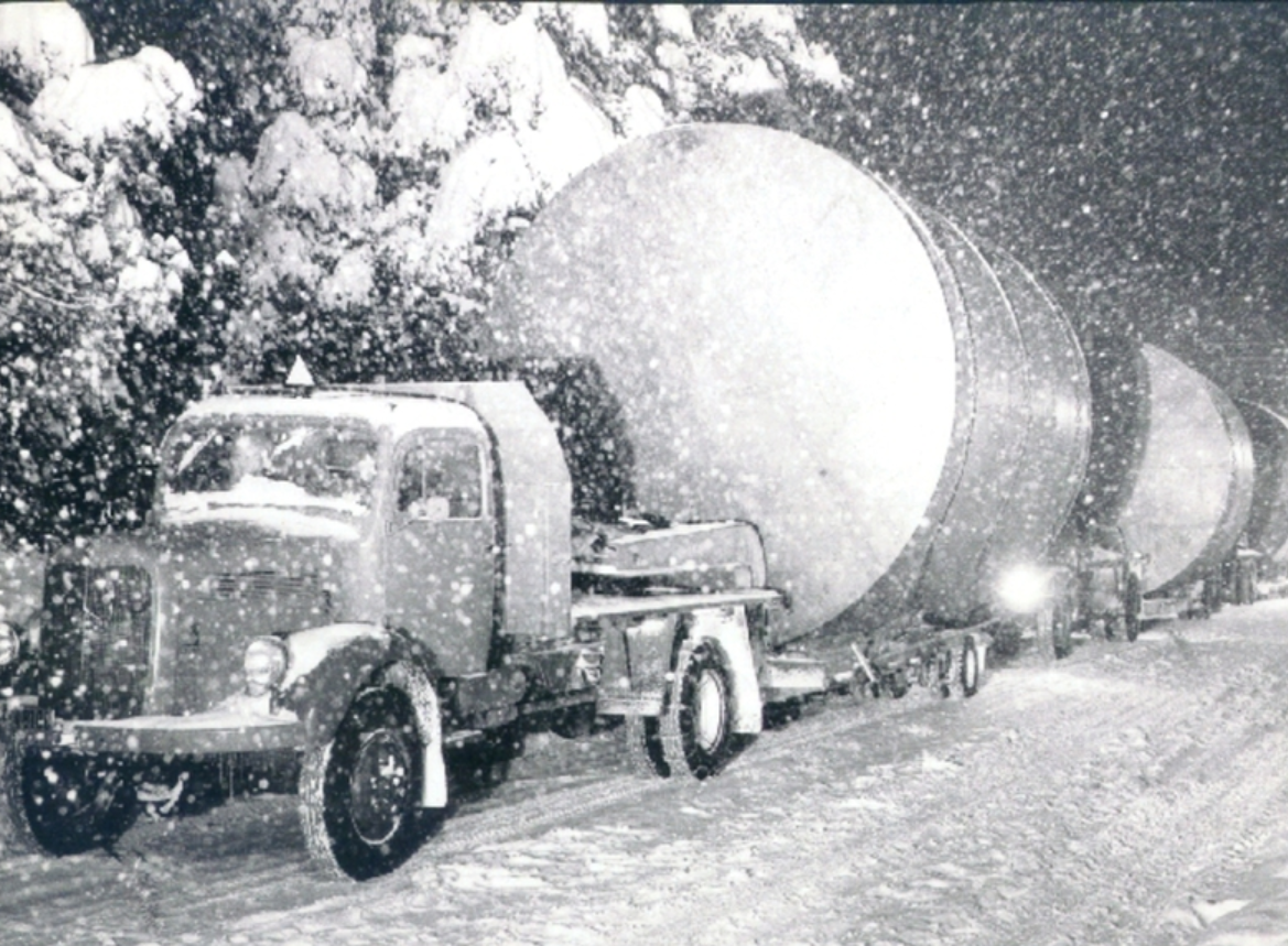 Og hva passer vel bedre enn et bilde fra dengang menn var menn og biler var biler. Fra dengang ekstremvarsel var et ukjent ord, fra dengang vi ikke gjorde noe av fem centimeter snø, eller en meter snø. Fra dengang ungene ikke måtte bruke vernebriller da de brukte ostehøvelsen og onkel polti ikke syntes det var noe rart om du gikk gatelangs med ei øks. Verden går pokkern ikke framover, men denne ruggen av en Mercedes gikk framover. Svært lass i snøføyka.