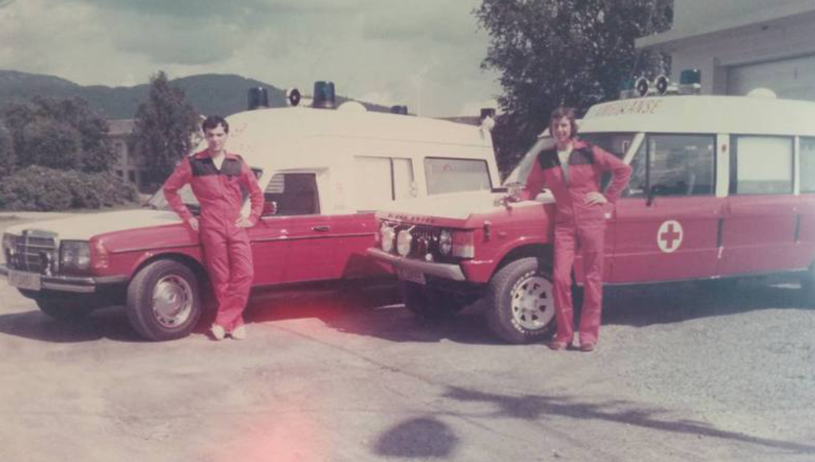 1980 Mercedes Binz-ambulanse og 1976 Range-Rover. Og den kjekke karen til venstre er en hyppig gjest på Burud: Pål Henry Enersen fra Mjøndærn.
