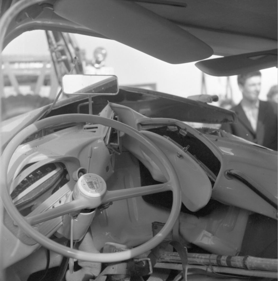 Det skjedde stygge ulykker før i tiden også. De bilene vi gnikker og gnur på har ikke blitt tryggere, men trafikken har blitt tettere og raskere. Budskapet er selvsagt: Kjør forsiktig! Bildet er fra en dødsulykke for mange år siden og bilen er en NSU Prinz.