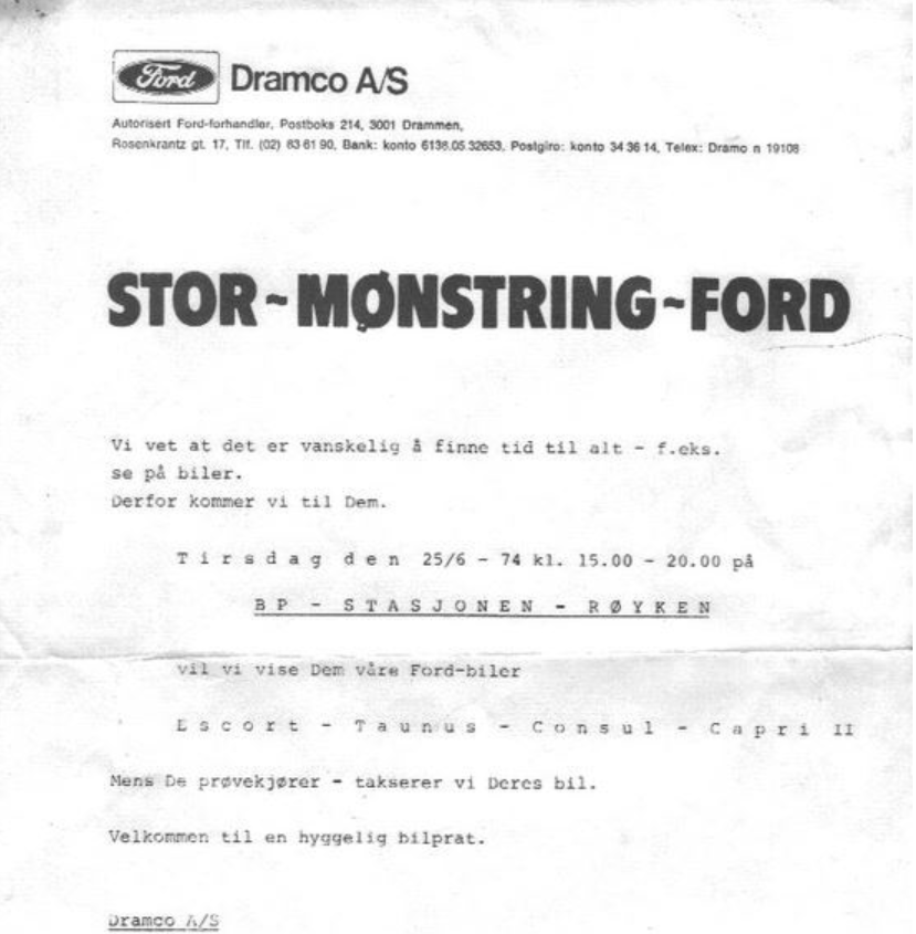 ......men er du på de trakter kan du jo sjekke om det finnes noen BP-stasjon og om det står noen krokete hvithårede bilselgere der. Dramco overtok lokalene i Rosenkrantzgata 17 etter at Drammen Motorkompani gikk konkurs i 1971. I 1984 fulgte Dramco samme ruten til skifteretten. Etter det overtok Bilforum - som også endte med bobehandling - deretter Drammen Bil som solgte forretningen til Kverneland Bil fra bedehusstripa på sørvestlandet. Så ga de opp og hestehandlet med Bilia i 2013. Ikke lett!