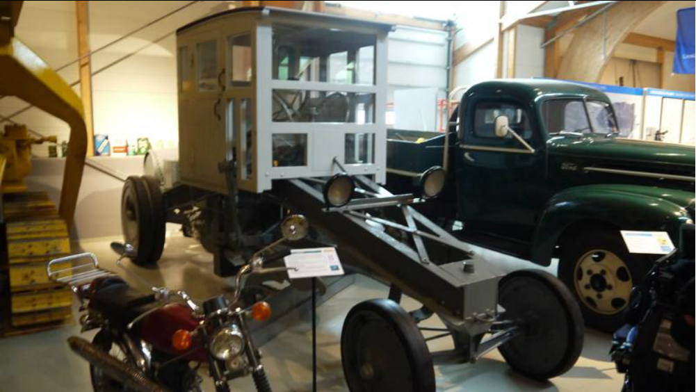 Og viser et bilde av Arthur Moe's verksted. Kan se ut som om også han hadde en liten antydning til hoggeri i bakgården. Arthur Moe var blant de første i distriktet og landet forøvrig som begynte å interessere seg for ivaretagelse av gamle kjøretøyer. Bildet er tatt i 1962 og verkstedet står der fortsatt.
