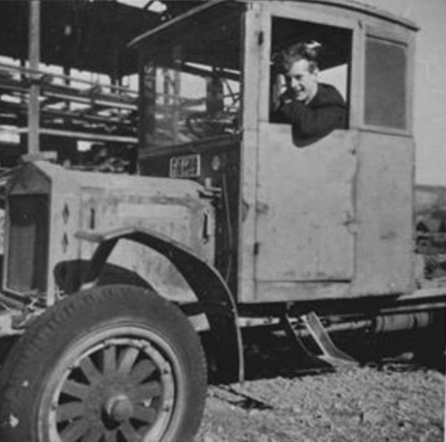 Den hønngamle lastebilen som en ungdommelig Erling Thorbeck er avbildet i, er en av de mange kjøretøyene han vokste opp med på sin fars bedrift Høvik Teglverk.