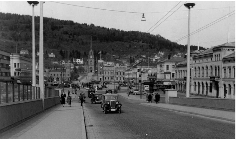 Dette bildet er tatt i Drammen faktisk. Sånn var det en gang. Familien Møller var store bedriftseiere i byen og bodde i borgen på Toppenhaug. Egen sjåfør hadde de også.