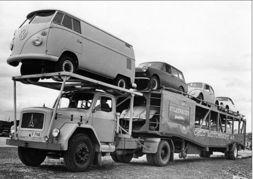Ja var det en tanke skummelt å kjøre på plass en flatnesa blikkboks oppå hytta til trekkvogna? Tror ikke det var jobb for folk med frynsete nerver. Spesielt ikke på vinterstid. Bare øvelsen å komme inn og ut av bilen ser ut til å være ekstremsport på aller høyeste nivå. Men med det spetakkelet som en sånn Magirus Deutz produserte ble vel hjernen til sjåføren etter hvert litt risikovillig må man tro. Ikke ser det ut til å være overdreven lastsikring heller. Dette var definitivt før HMS var oppfunnet. F-7146 Magirus Deutz, 1965, Ole H. Busland, Solbergsgt 12 B, Drammen