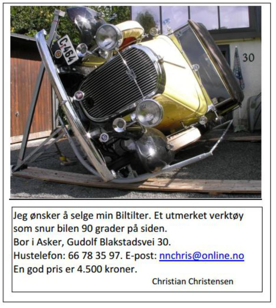 Som før kunngjort venter redaktøren på snø. I skrivende stund sitter han i hvite nydelige fjellheimen, men håper på et par meter i Drammen også. Da kan jeg kanskje vurdere å skaffe meg en A-Ford for ubrøyta vei.