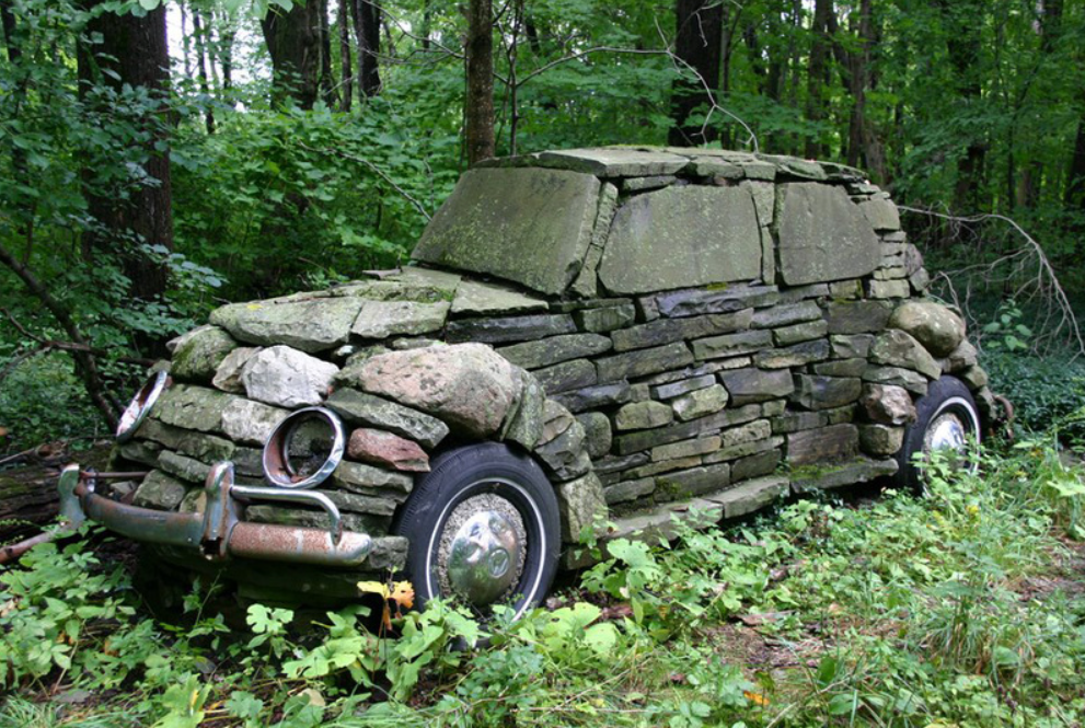 Her er det helt gratis ideer til deg som er religiøs murer. Mye god symbolikk her og jobb til deg. En slik steinbil burde vi absolutt hatt på Burud. Et flott monument. I skråninga ved siden av bensinstasjonen passer ypperlig. Og til opplysing for dere hedninger der ute så er fisken altså et symbol for Jesus. Kjerke antar redaktøren de fleste vet hva er.