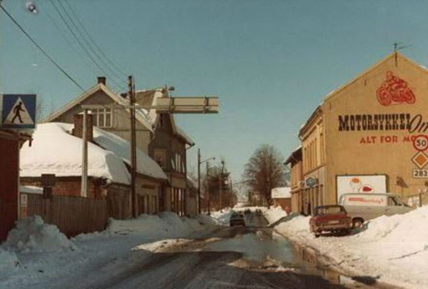Er nok ikke så få sparebøsser som har havnet her etter en innbringende konfirmasjon. Et velkjent sted for guttunger i alle aldre. Her fikk du kjøpt nye og gamle, mopeder og motorsykler, deler og utstyr. Ford 20M'en som står i veikanten eksisterer fortsatt, den bodde på Geithus for et par år siden - kanskje er den der fortsatt.. Buruds egen husrørlegger og altmuligmann Atle Opdal er oppvokst i nabogården og begynte som mekanikerlærling hos Motorsykkelomsetning i en alder av ca to og et halvt år. I butikklokalet får du nå kjøpt meitemark og fiskestenger, men bak i verkstedet kan du fortsatt få fiksa på den gamle tohjulingen din.