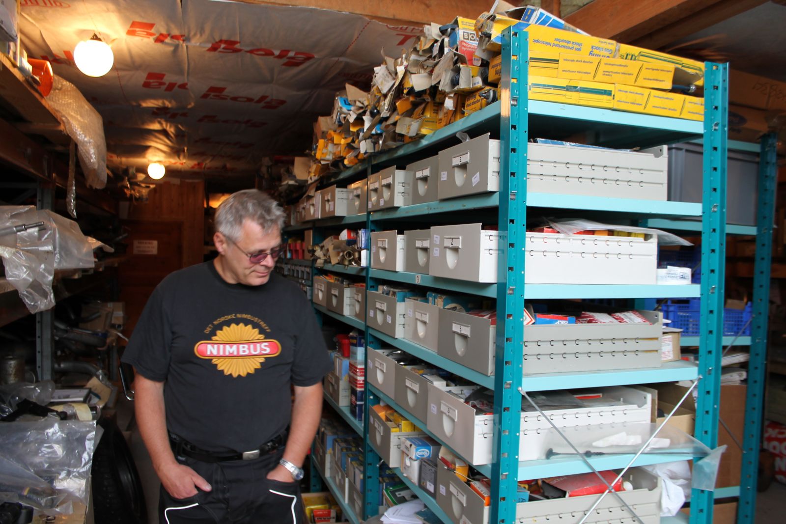 Det er hyggelig å være vitne til hvordan anlegget på Burud brukes av medlemmer og tilfeldig besøkende. Denne onsdagen var besøket enormt bra. Pølsebua gikk tom for pølser og det minket stygt i beholdning av brus og is. Luksusproblem kalles vel det. Det kommer stadig nye mennesker innom. Noen med gamle kjøretøyer vi ikke har sett før, andre med moderne kjøresaker. Fire ting utpekte seg som spesielt hyggelig denne kvelden. Vi ble kontaktet av en ung gutt som gjerne vil delta i ungdomsgruppa med å pusse opp Rekord og Transit. Vi tar ham imot med åpne armer og håper flere vil være med. Videre var det veldig mange motorsykler denne kvelden. Motorsykkel er også et viktig element i samferdselshistorien, og kanskje en type kjøretøy vi bør vie mer oppmerksomhet. På to hjul dukket det også opp en gjeng gutter på 16-17 år. To på Tempo moped og en med Gilera bl.a. Veldig hyggelig at vi fatter interesse også blant denne gruppen. Delelageret var pip åpent for første gang. Det var nok ikke alle som oppfattet det, men noen var inne og kikket i hyllene. Og det var ikke antydning til at noen rotet... Summa summarum; enda en super-kveld på Norsk Motorhistorisk Senter.