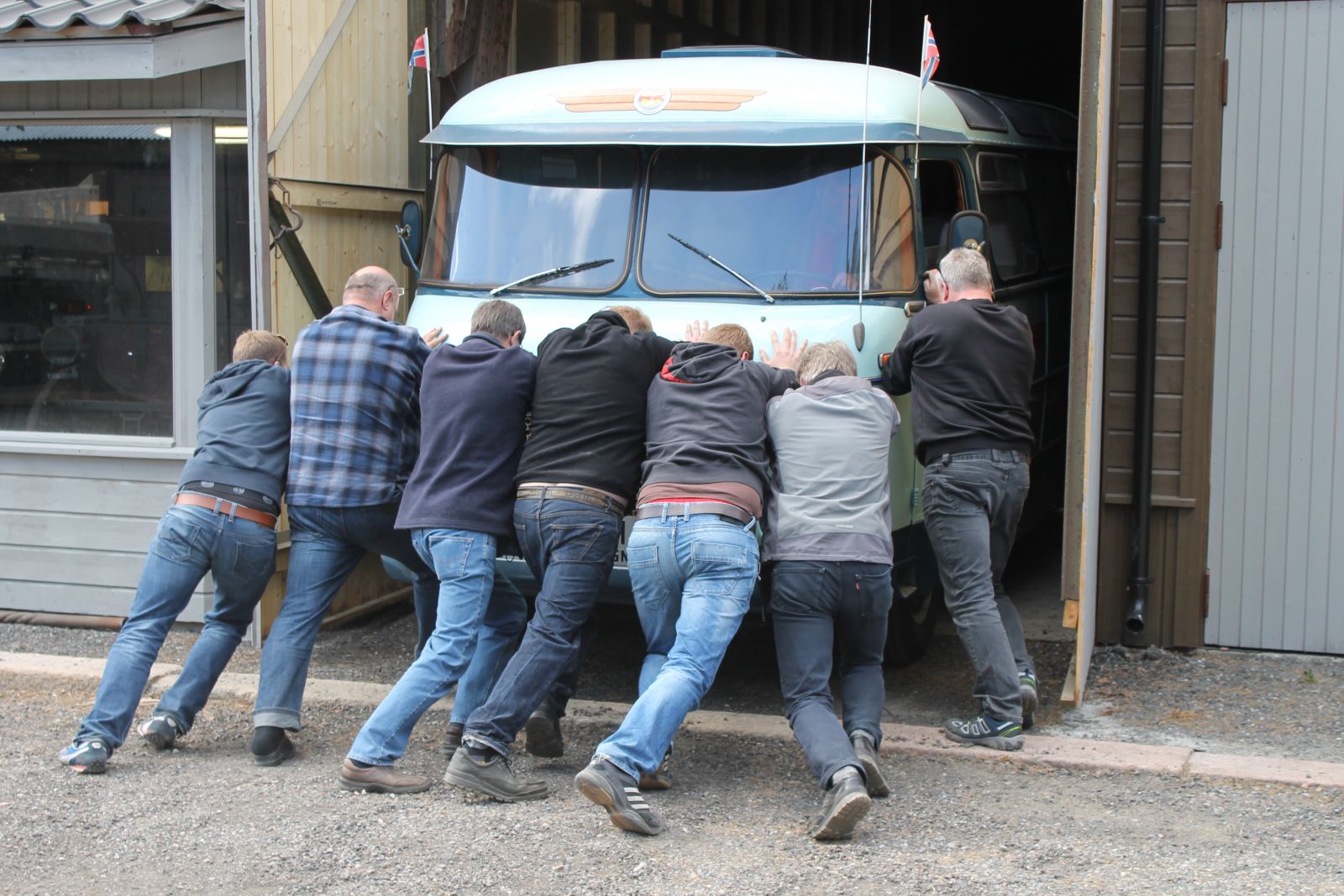 Det står jammen respekt av disse gutta og doningene deres. Det krever pågangsmot, plass og kunnskap for å kunne ivareta disse store kjøretøyene. Og heldigvis så er det noen som har muligheten til å bevare denne viktige delen av år historie. De fleste av bilene som besøkte oss 1. mai var kanskje ikke gamle nok til at vi kan påstå at de var med på å gjenoppbygge landet, men noen av dem har nok den ærefulle historien i ryggsekken. 1. mai ble en strålende dag selv om det var bikkjesurt på mårrakvisten. Ca 30 gamle transportveteraner kom innom, og omtrent like mange veteraner av mindre kaliber. Masse folk, pølsebua hadde kontinuerlig kø og haller og museum var godt besøkt. Av de mer kuriøse hendelser skal nevnes at tre MHK- medlemmer hadde medbrakt gitar og sang oppbyggende religiøse viser. En underlig forestilling.