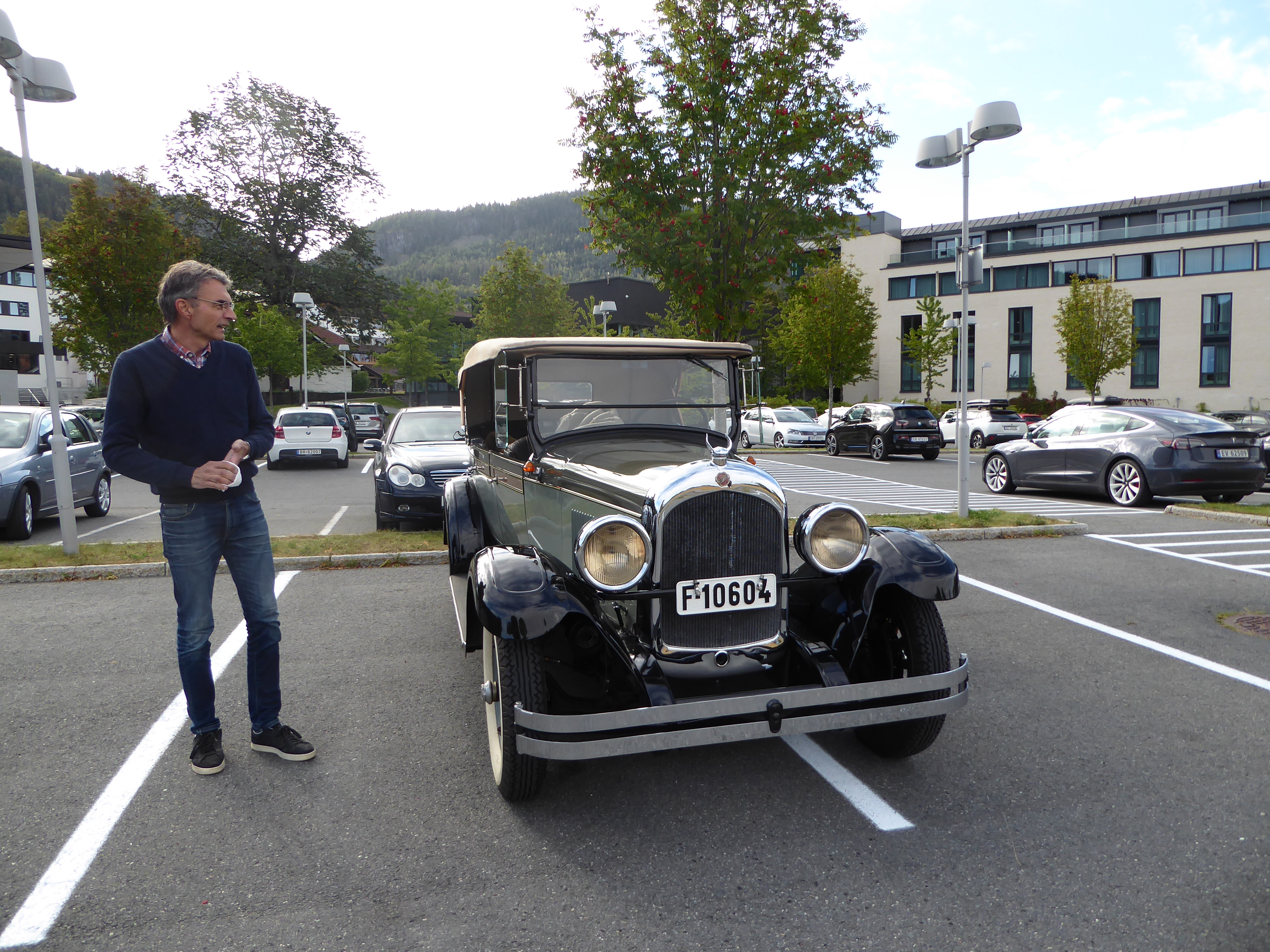 Her traff vi to andre ekvipasjer fra Drammensklubben, nemlig Frode Holm & Jan Paulsen i Frodes Dodge 1916 og Erling & Judith Berg-Pettersen i sin Ford Consul Capri 1963.