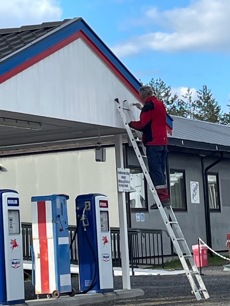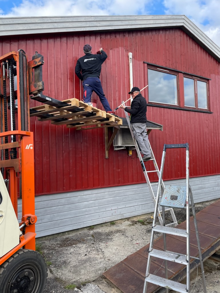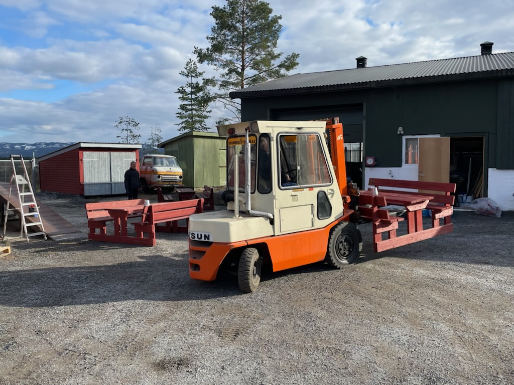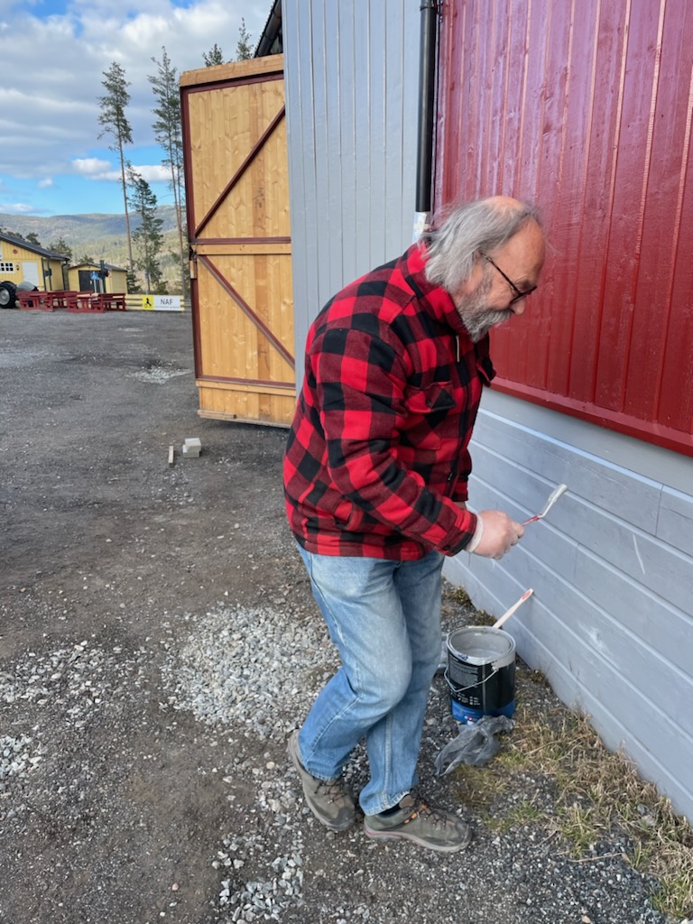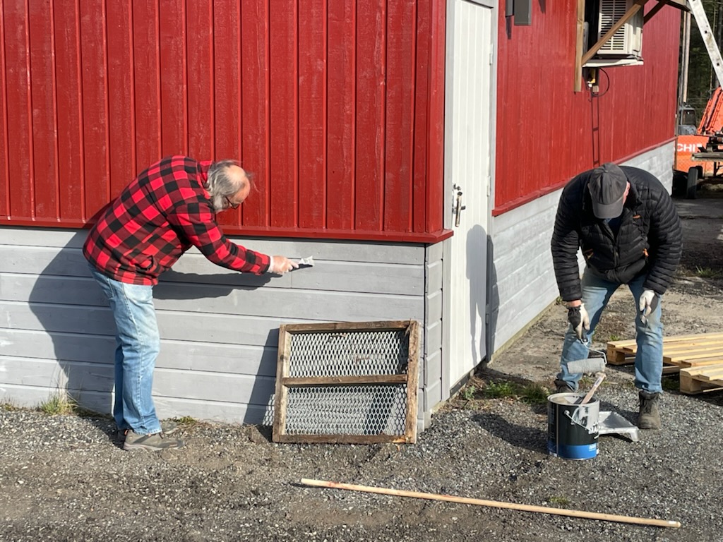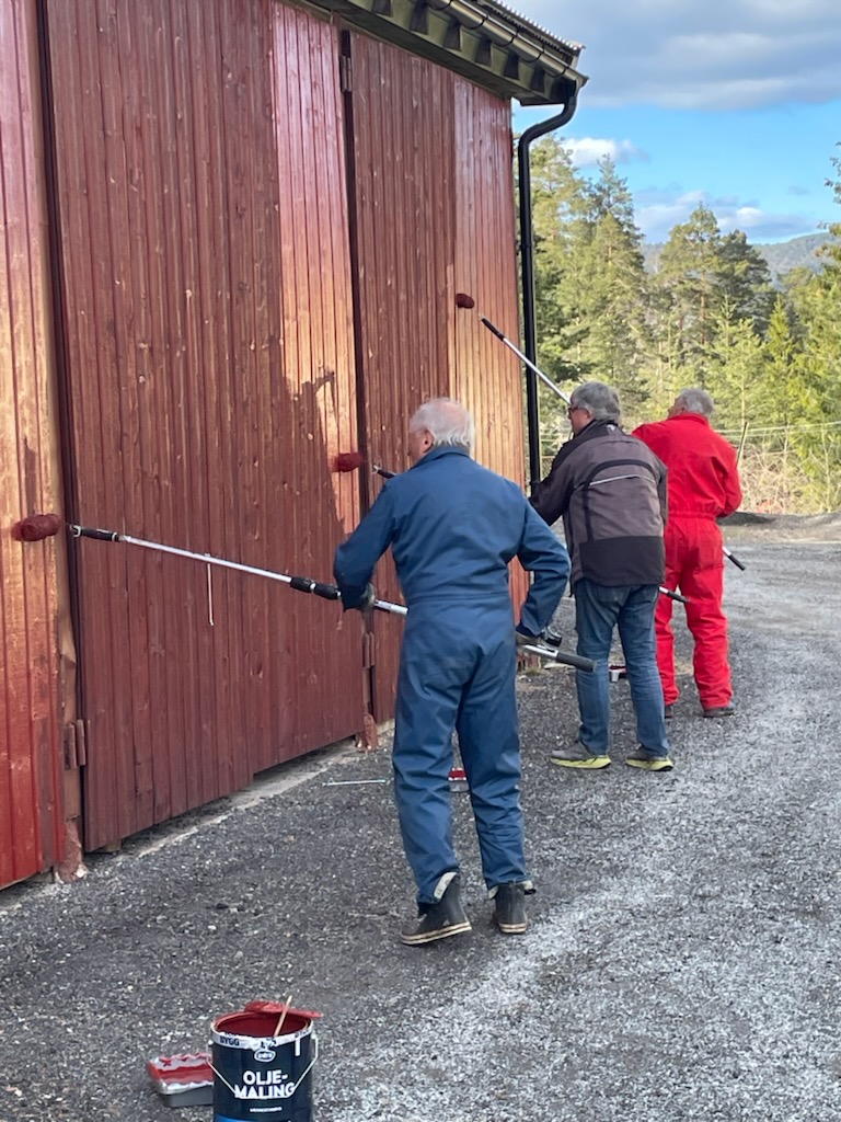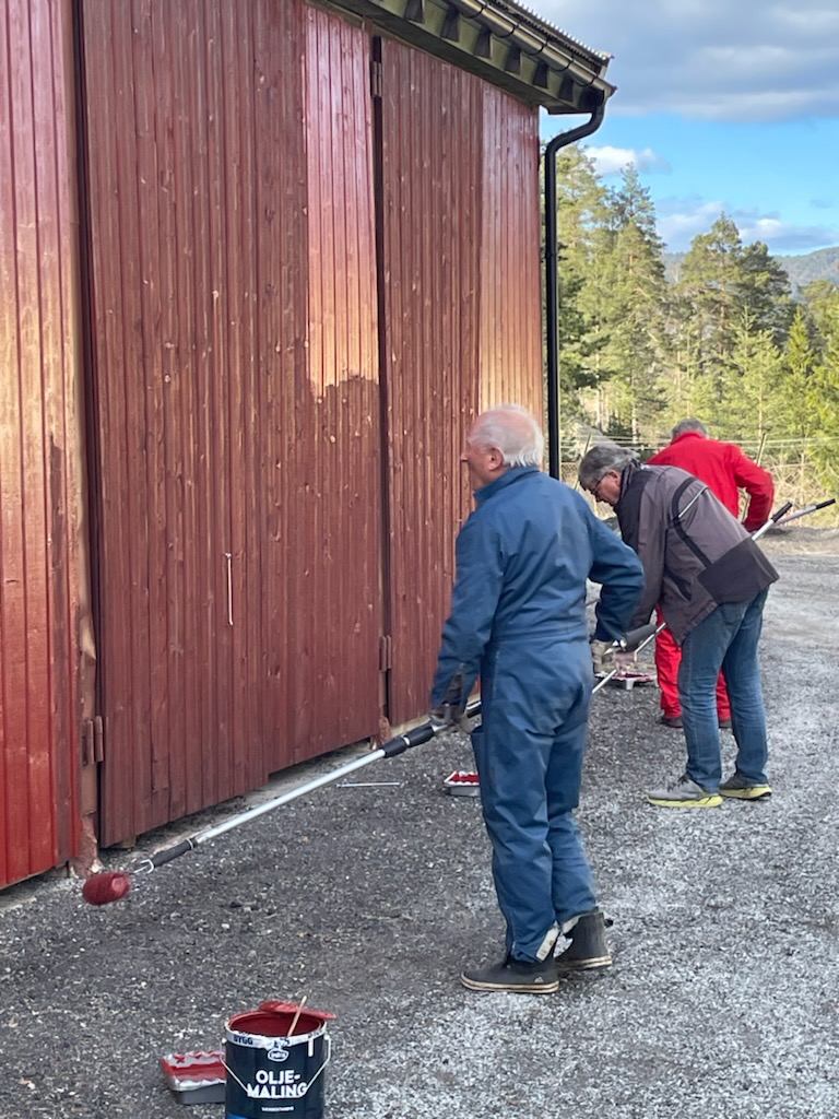 Vi fikk malt ferdig det meste av det som skulle males (Noen vindskier står igjen å male....), montert snøfangere, fikset noen løse takstein, og montert nedløp. I tillegg har Roger Burud planert ommrådet bak den nye parkeringen slik at dette kan såes til og siden bli et område hvor vi kan sette opp noen benker.