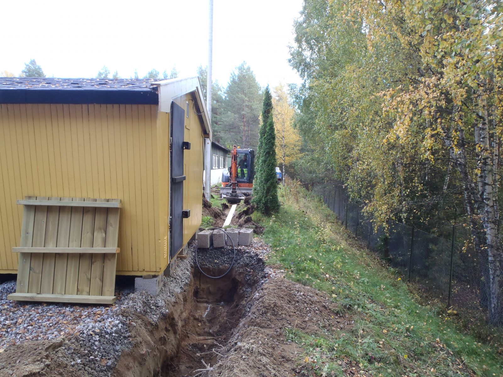 Fredag og lørdag og søndag i uke 39 har vi drivi og gravd i bakken. Det er drenert foran hall nummer 3. Satser på at det skal ta unna vannet som har trengt inn i bygget, men det er nok fortsatt viktig å brøyte slik at snøen ikke blir liggende oppetter veggen. Videre er det gravd grøfter og gjort klart for å legge inn vann og strøm i pølsebua. Vi hadde to gravemaskiner og en lastebil i drift. Stor takk til gravemaskinførerne Geir Andreassen og Sølve Kristoffer Wang som jobba som guder. Hr Holm og Hr Wang sr har fungert som prosjektledere - dvs gjort ingenting - og sjåfører for fyllesjuke maskinførere. Så nå blir det snart servert pølser trekt i friskt ferkvann. Gled eder allmue. Og send en varm takk til de som har gjort jobben når pølsefettet legger seg rundt hjerterota.