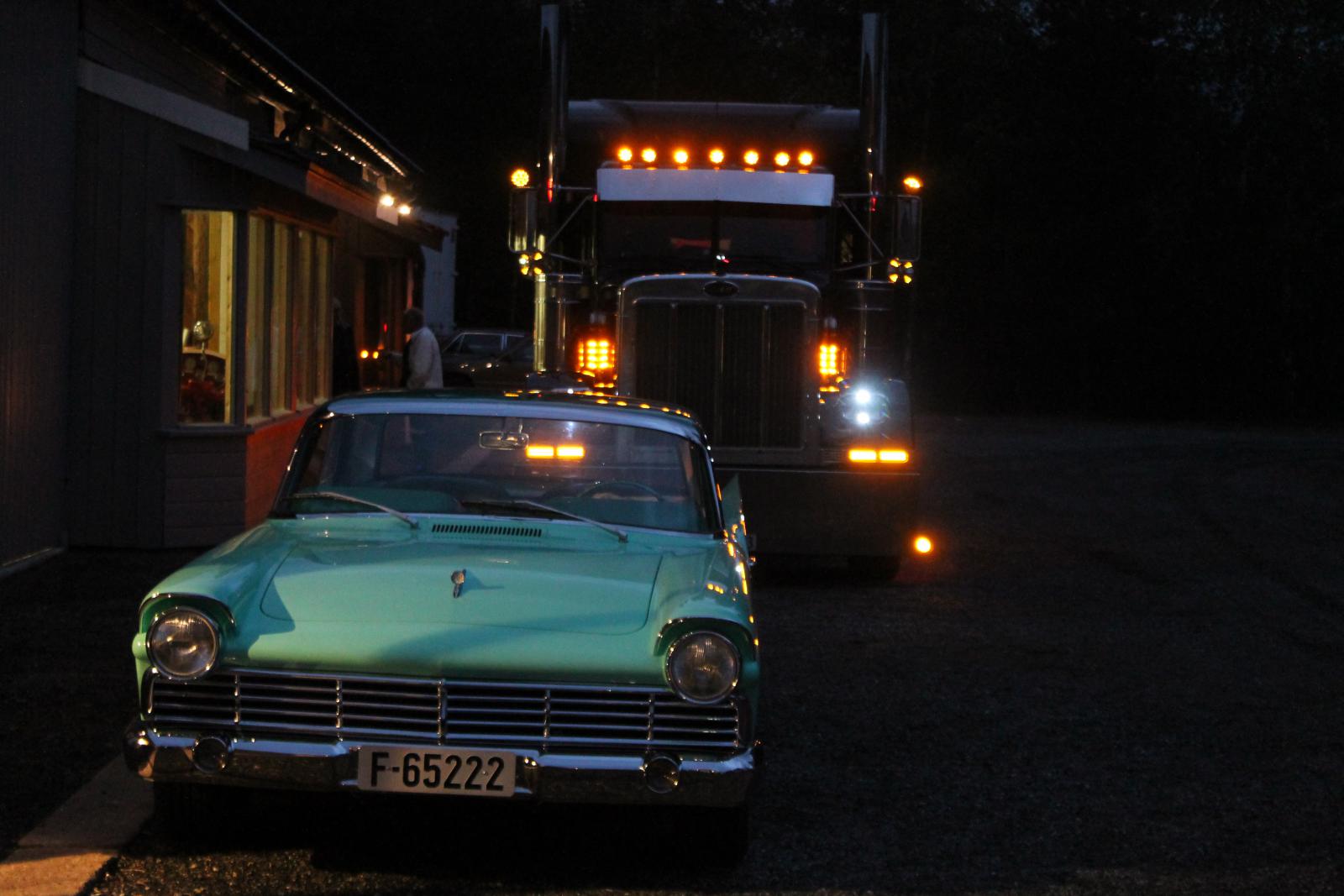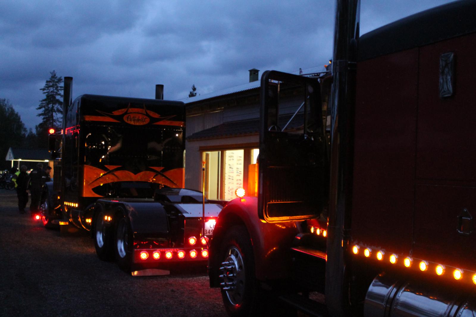 En god del forskjellige biler var også på plass. Små og store. En kortvokst 12mm fyr fra Konnerud stilte sammen med en kompis med de to største. Peterbilt og Kenworth med masse lys og lyd.